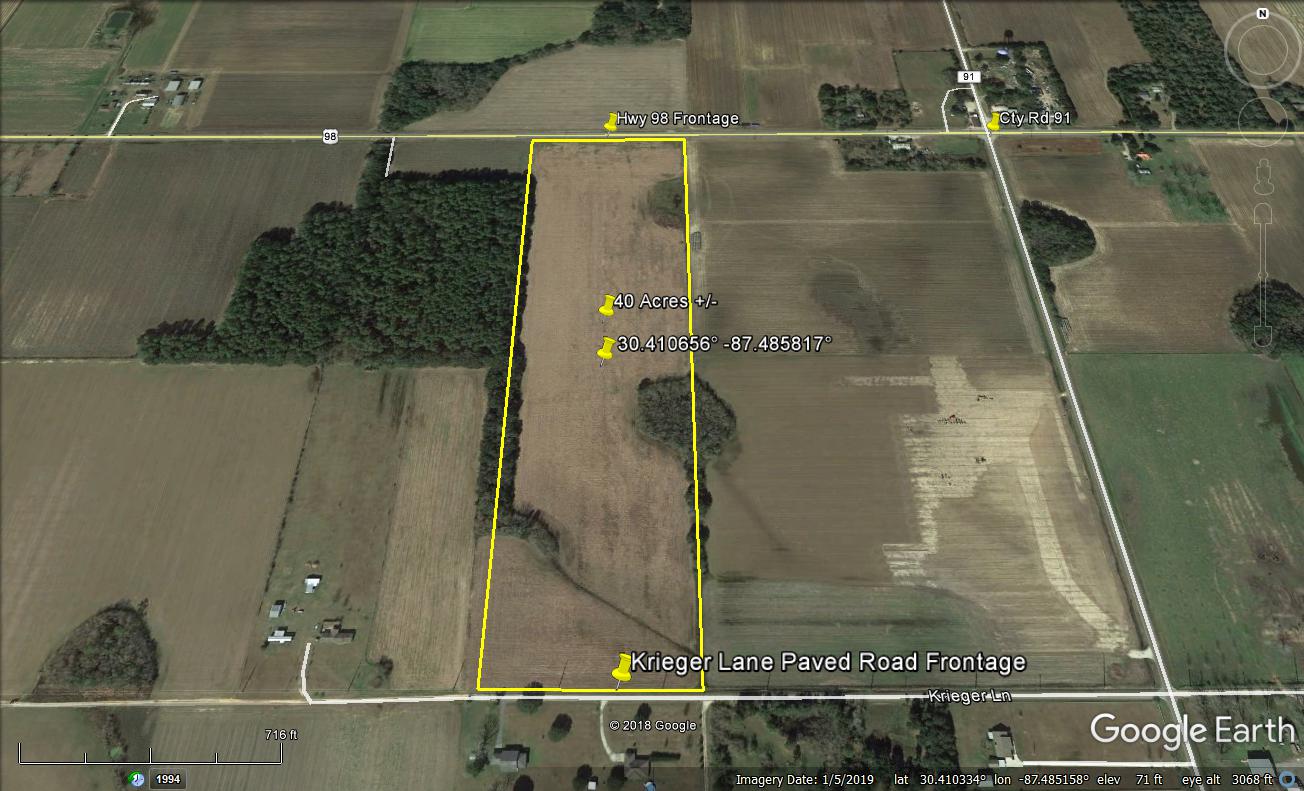 Located in the beautiful Lillian area, is this very nice open acreage. This ground has primarily been used for agricultural purposes over the years. The property has approximately 663 feet fronting highway 98 on its northern border and approximately 665 feet fronting paved Krieger Lane along its southern border. With convenient access to Pensacola, Perdido Key, South Baldwin County and the corridors of The Beach Express and I-10, this property would make for a nice investment property with future agriculture lease income, home site, or possible divide potentials. Call today to learn more details about this property.