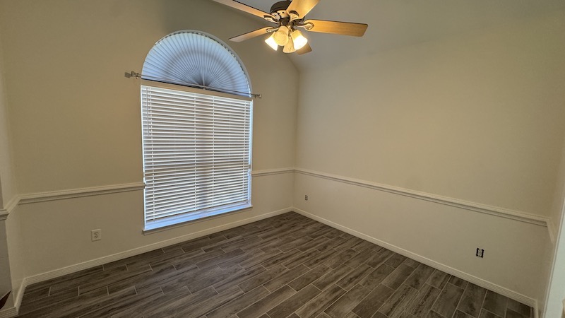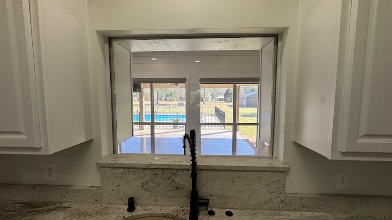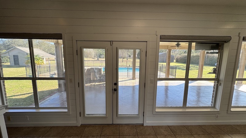 - Sunroom area with custom blinds