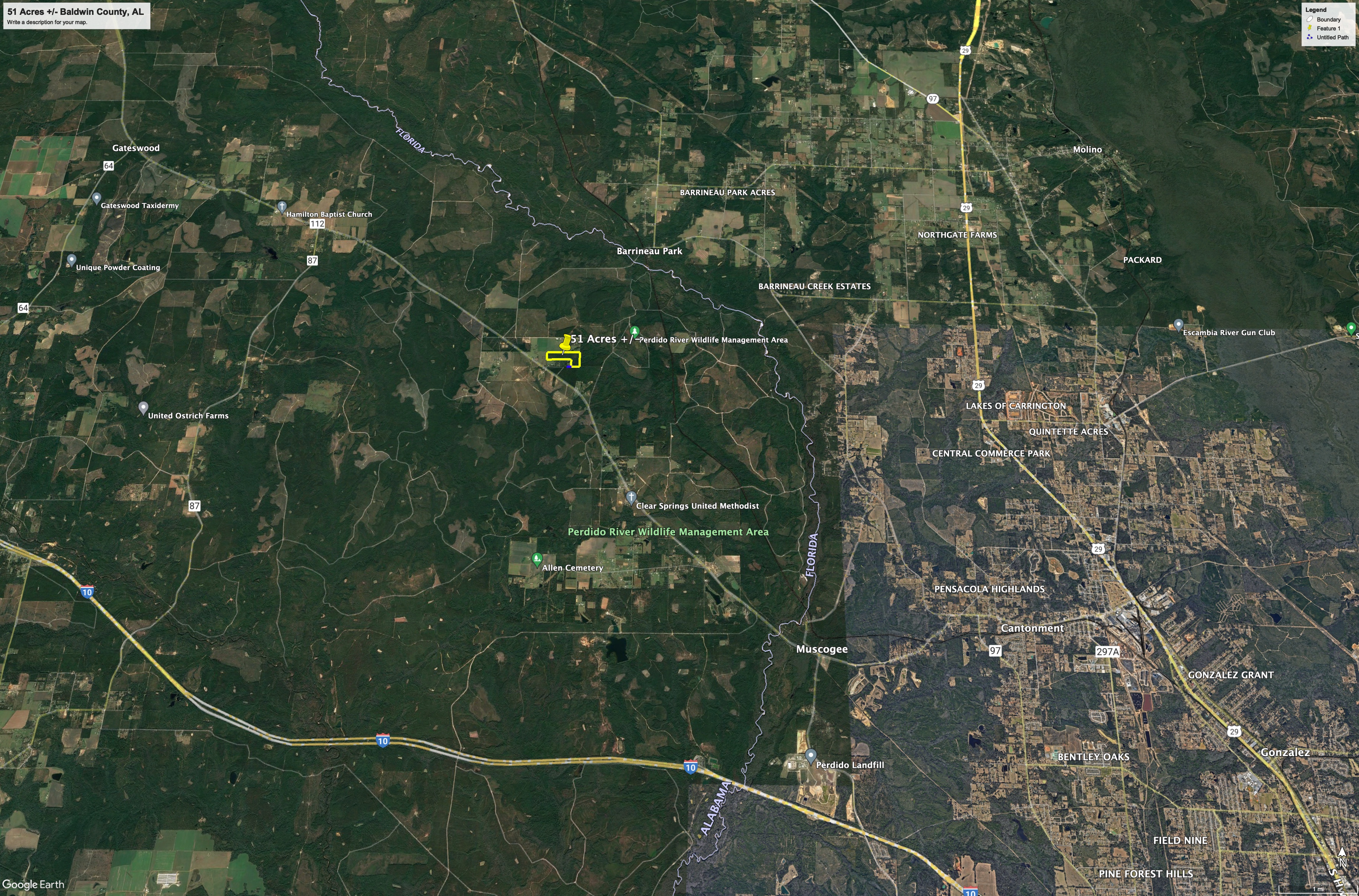 - Partially bordered by the Perdido River Wildlife Management Area