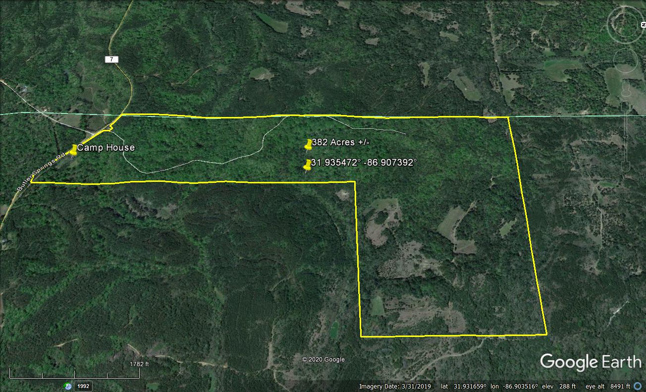 NEWLY PRICED!! A beautiful turn-key hunting and recreational property located in Butler County in Southwest Alabama. This property offers outstanding outdoor opportunities for hunting and recreating. Starting with its mature hardwood seam that runs north from the paved road and provides access to the north and northeast boundaries. The hardwoods are mature and sit within an area of good topography and would make for some very nice turkey and whitetail hunting. The road system throughout the property provides good access throughout the property as well. The northeast part of the property is approximately 160 acres and is made up of a mixture of timber with pines, hardwoods, and cedars and has old pasture areas, along with established food plots. The pasture areas could be opened back up, providing some nice tillable ground opportunities for year-round feeding with planted crops like soybeans, peas, and corn during the late spring and summer months. This property has nice surroundings and is in a quiet rural area of the county. The camp house was built in 1992 and offers three bedrooms and two bathrooms. It has a wonderful front and back porch area that looks over the rural country setting and provides that perfect opportunity to watch your game and listen to the turkeys sing in the early mornings while you enjoy your coffee. Also, don’t forget about the wood-burning fireplace within the camp house that provides good heating during those cool crisp months and gives you that special time as a family to gather and tell some great camp stories. There is a two-car garage that provides nice space for your camp tools and recreational vehicles needed for riding, touring, and hunting your own private land. The camp house has good space and room for gathering the family or friends while up at the camp and farm for some getaway time. Call today to schedule your private showing of this special property!