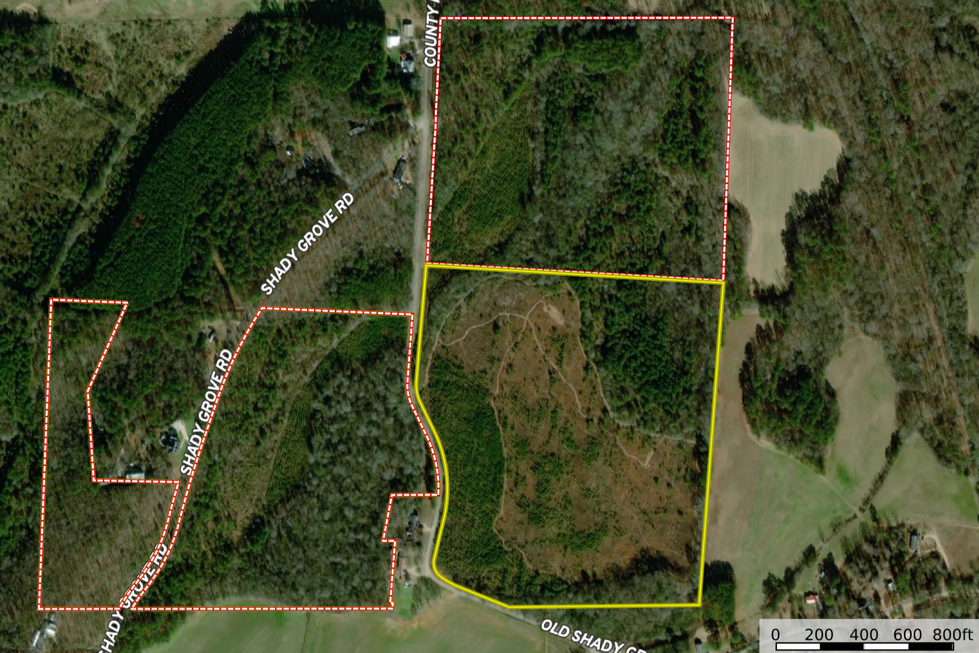This tract has good homestead potential and lays just between Piedmont and Spring Garden. There are over 1600' of paved road frontage along Old Shady Grove Rd. (Co Rd 2) that provides good access. The property is currently in pine tree rotation, with about half of it in recently planted loblolly pines that are only a few feet tall and the remainder in mature pines with a scattering of hardwoods. The young pines are at a stage where they would have the potential to be cleared and put some of that area into pasture or open ground as needed. There is a buffer of mature trees around the perimeter of the tract giving you a sense of seclusion once you are back in the open area. Views of the mountains in the distance are prominent, and someone with a good vision could craft this into a beautiful homestead, with some open ground and some timber for variety. This area is known to have a good wildlife population and there are good hunting opportunities here as well. A fire break encompasses the recently planted pines and makes a big loop so that it is easy to preview the property. There are additional tracts available adjacent to this property, please reach out for more details.