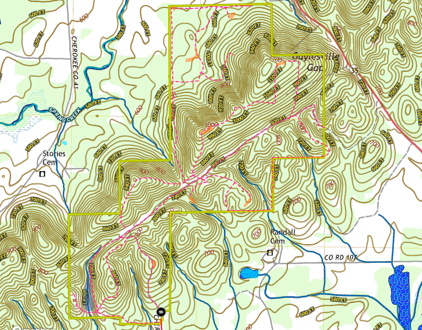 An incredible mountain top retreat is what you will find as you drive your way up on the ridge. The internal road system leads you back to a secluded 3+/- Acre pond stocked with bass and bream. The main road that is truck accessible allows you to travel to the center of the tract. Along the way, many roads and UTV trails split off, leading to strategically placed ridgetop foodplots and areas down in the valleys. The plots are established with clover and the deer and turkey population are thriving in this area. The hunters say it is not uncommon to hear 10 different gobblers on a good morning. As you scroll through the trail camera pictures, you can see what quality of deer are in the area. This is an outstanding hunting property. The timber stands are from early maturity to fully mature. An excellent mix of pine and hardwoods and patches of thickets create a diverse habitat for wildlife. There would be an opportunity to thin some of the pine stands immediately. The ridgetop views are incredible, with views of Weiss Lake in the distance. The potential is for future development of homesite/cabin sites with panoramic views that overlook the countryside, with over a mile stretch of ridgetop. The topography is steep in some areas, but plenty of gently rolling finger ridges off the main ridge and some flat areas down in the valleys. Mountain streams flow and cascade down each valley and the natural beauty here is remarkable. Utilities are located near the entrance and a storage container, making it convenient to store equipment. There are numerous locations to build a cabin; near the pond is one of my favorites. Don't hesitate to contact me, and we will schedule a private showing. This is one that you will look forward to going to and so many memories made here and leaving it as a legacy to the next generation.