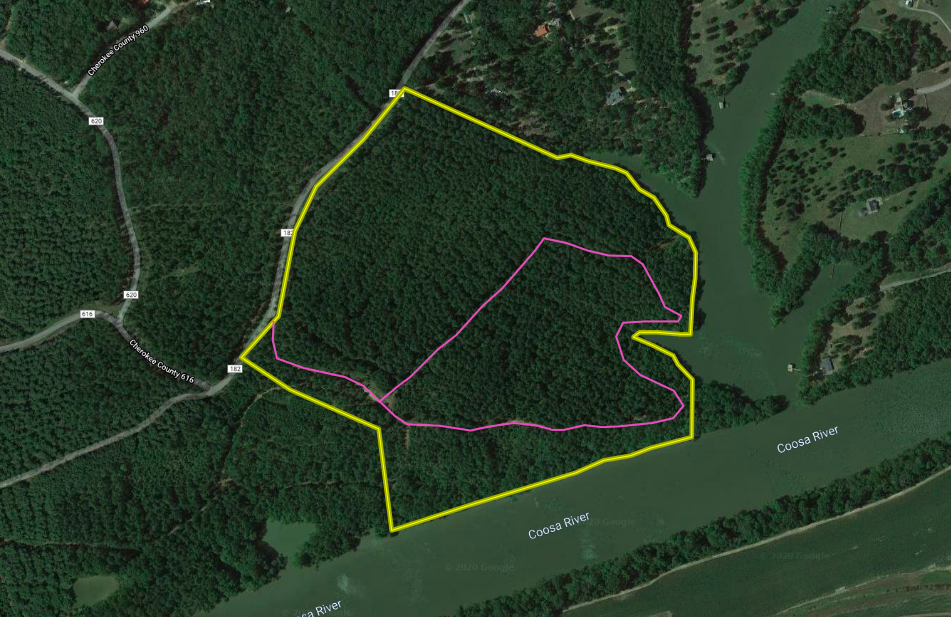 Water frontage, water frontage, and more water frontage, that is what comes to mind on this property. Tucked back on a dead-end road, this tract is situated on the bank of the Coosa River just inside the Alabama state line. There are over 2400 feet of frontage on the river and back in the big cove coming off the river. It’s a very rare occasion when this much water frontage would become available. The timber consists of primarily mature pines but big hardwoods tower along the river bank and in the drains, leading to the cove. This property would be outstanding for a family place with many homesites to choose from. The topography is such, that it comes up out of the floodplain of the river quickly and you are looking down on the water, just gentle enough you could put a cart path or walking trail down around the edge. Another possibility would be a developer could come in and lot it for lake homes, or river cabins, the opportunities are limited only by your imagination. Interior trails gain you access throughout and the area is full of wildlife. There would also be the possibility to construct a dock in the cove, with Alabama Power Weiss Lake Authority approval. This would be a great location to dock your boat or personal watercraft and idle out of the cove, gaining you access to the 30,000 +/- AC of Weiss Lake. There are additional lots available, check Cherokee 5+/-, 10+/- and 14+/- with off water lots available as well. Please look at the map for location and check for availability. If you have dreamed of that perfect lot on the water to relax, enjoy the weekends or retire where outstanding fishing is right out the back door, you could craft this place into something you would be proud to call your own.