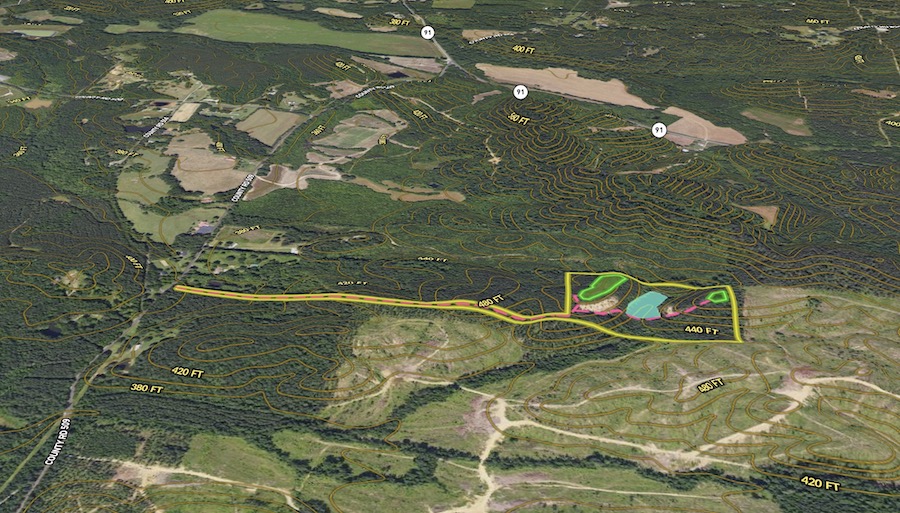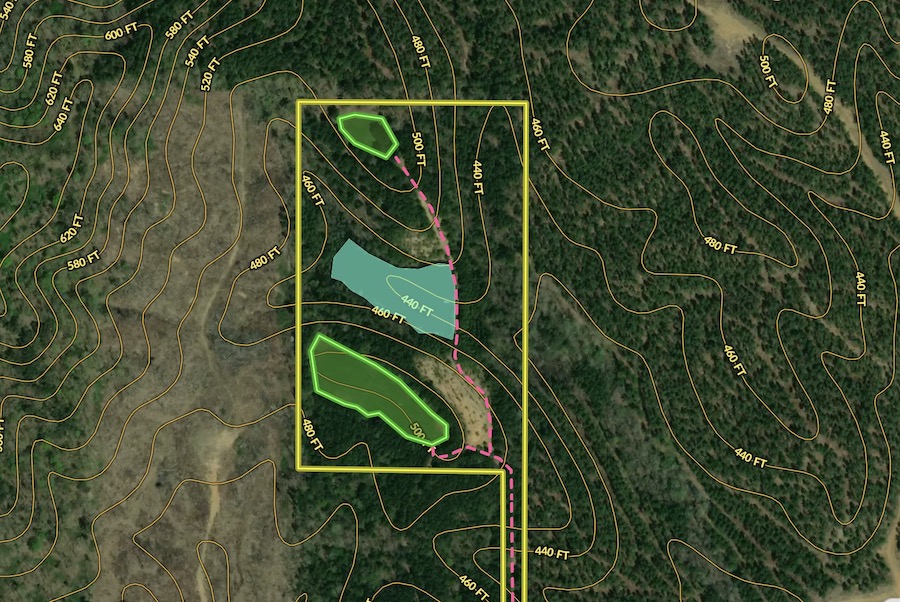 Food plot, Trail network, Tree stand/Blinds, Internal Road Network, Gated entrance