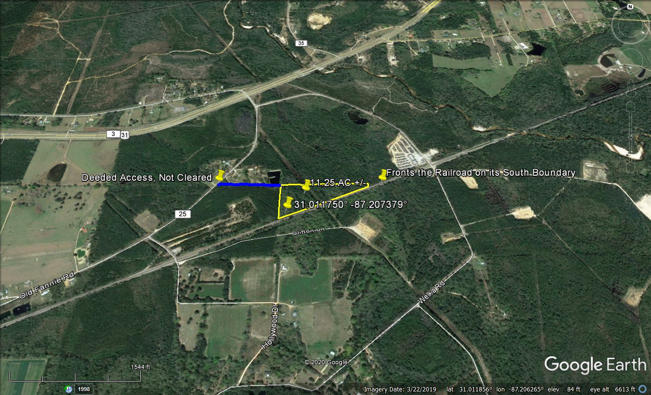 Wooded acreage located between Flomaton and Brewton, less than a half a mile from highway 29/31 south on Old Fannie Road. This property does have a deeded access that would need to be cleared for proper entry into the property. The lot is wooded with its south border fronting the railroad. There are approximately 1400 +/- feet of rail frontage on the properties south border. There is a pipeline running through the middle of the property from north to south that the sellers are told is not used anymore. This easement may be able to be removed. If you are looking for a commercial location, needing rail frontage with deeded access, this property has some nice potential. If you like the country style living on an interior lot, this property could be cleared and offer a nice residential home-site location. This property is not seller restricted and the mineral rights do not transfer. Give me a call to further discuss.