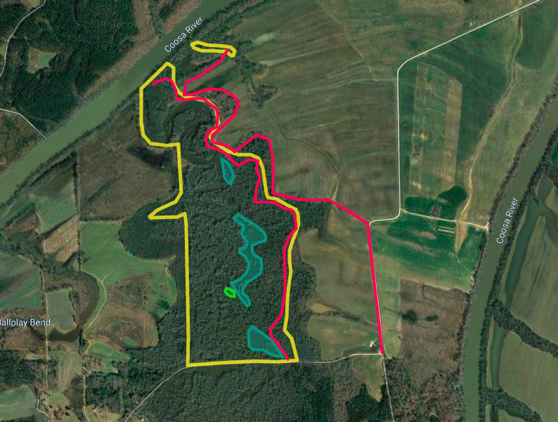 A waterfowl hunter’s paradise! Two flyways intersect on this property, The Coosa River flows from out of Georgia and into Weiss Lake and on south through Alabama. Ballplay Creek flows through the property for over 1.5 miles as it winds, bends and turns through the bottom, coming out of a huge swamp and wetland network that consists of over 3200 acres. The mouth of the creek is located on this tract, where it flows into the Coosa River, making it a major intersection for migrating waterfowl. This natural wetland is home to tremendous wildlife diversity. Ducks have natural aquatic vegetation that they rely on that grows plentiful in the wetland as well as acorns from all the water oaks that fill the timber. The cover is good here as well with wetland grasses and buttonbush. The standing timber holes are beautiful covering many acres and to experience cupped up mallards gliding down around those big snag trees on a foggy morning, there is nothing better! The whistling of wood ducks echos throughout the bottom, I was able to sneak in while shooting photos of this swamp network and saw over 80 wood ducks in late October. As November rolls around this area picks up a lot of mallards, gadwall and many other species roll in as they migrate from the north. There would also be potential to create additional impoundments to plant more food for ducks. The deer hunting is excellent in the area, being adjacent to large row crop fields, this tract is the bedding cover and with several small food plots tucked back in the timber its set up to hold a lot of deer and big deer call this swamp home. The property is private, located on a dead-end road with a good access road leading to the river. The fishing is excellent in the river and creek, its loaded with bass, catfish, bream and big striped bass. I could not imagine a more naturally beautiful wetland. The hardwood forest, has a raw and wild feel to it, a lot of unique areas that are just unique to a wetland. There is a hump out in the center that is a major hub of activity for deer in the area and numerous other locations that are just so cool! This area is also steeped in history as native Americans thrived along the banks of the Coosa River and Ballplay Creek. This tract could have excellent conservation easement potential as well with all the water frontage. Please let me know if you have any questions and want to schedule a private showing of this awesome place!