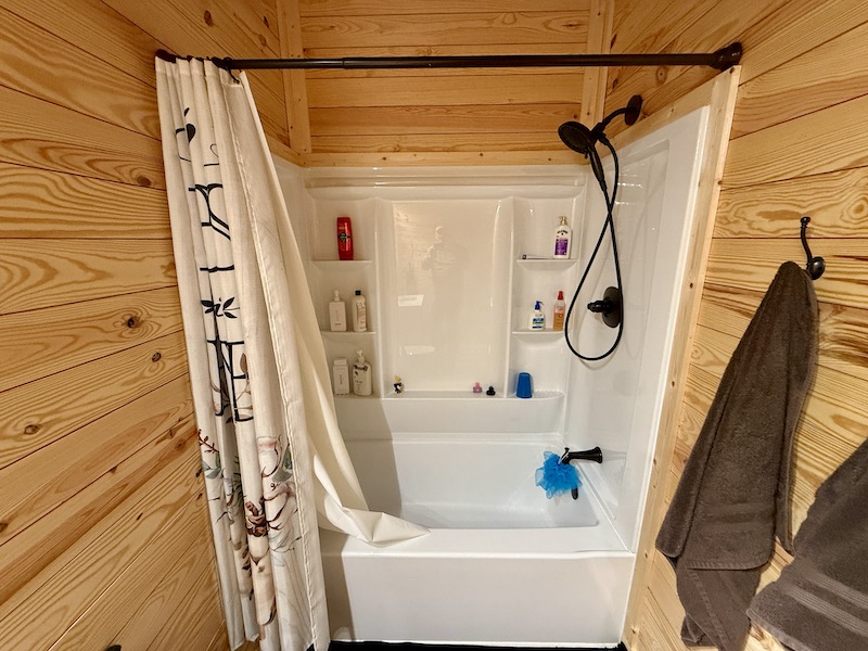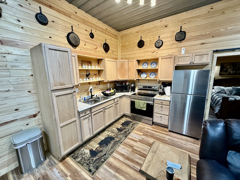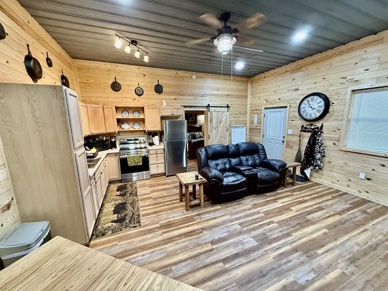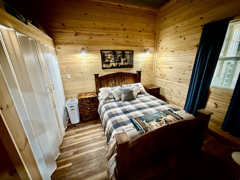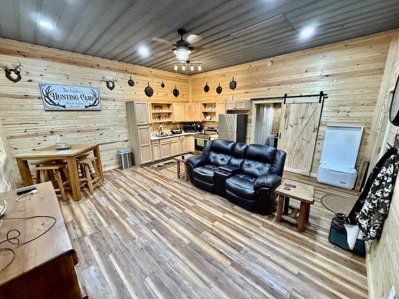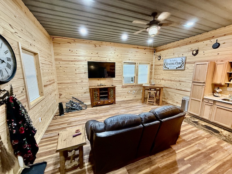 - Cabin - approximately 600 sq ft living area, bedroom, bathroom, and outdoor kitchen