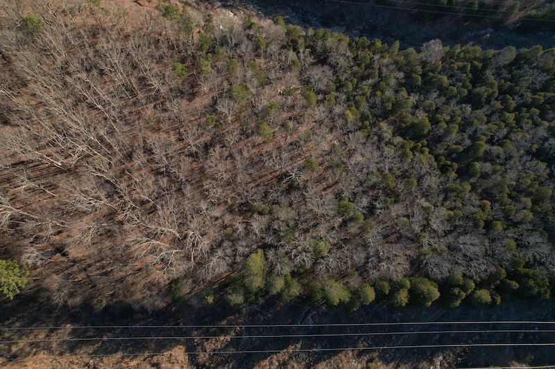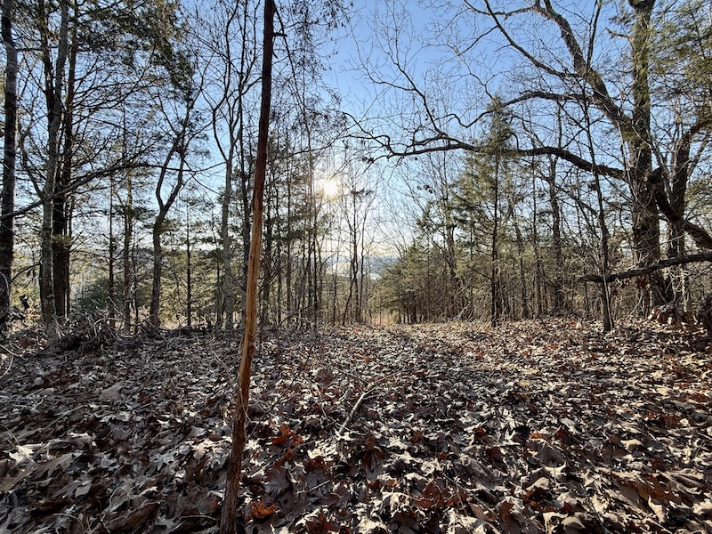 Timber is primarily mature hardwoods with scattered pockets of thick cover and cedar. White oak and red oak are very prominent across the entire tract. Several draws and natural travel funnel corridors are throughout the tract, making for numerous great stand sights and strut zones for gobblers. Mountain streams flow through the valleys and drain toward the Tennessee River. Rock outcroppings are present along portions of the ridge, adding to the natural landscape and providing scenic viewpoints.