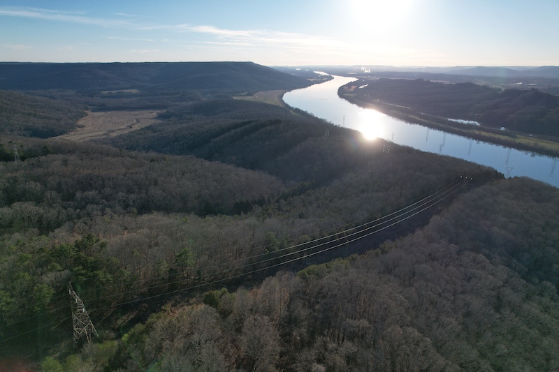 - Ridge-top terrain with views of Hogjaw Valley, Tennessee River, and Lake Guntersville