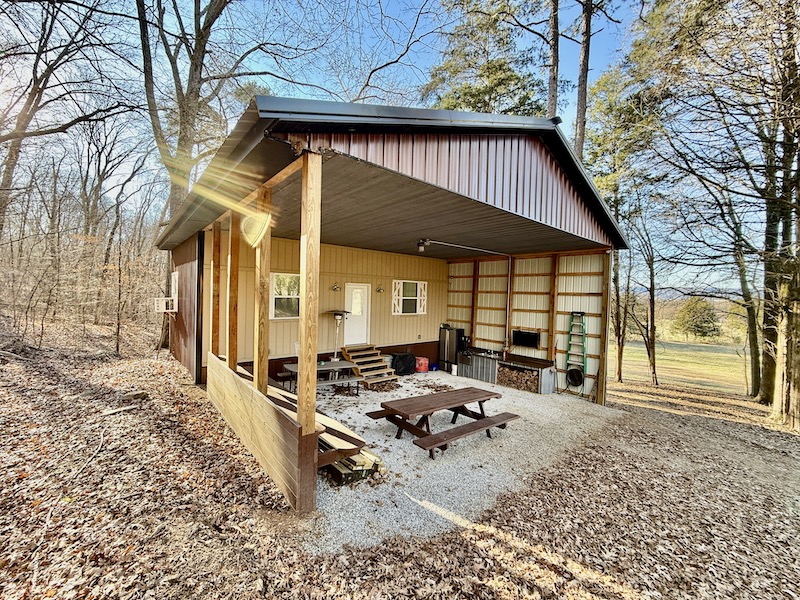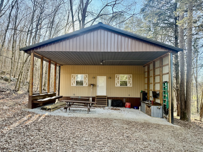 Access is provided via a paved county road, with a cleared area near the front entrance currently used as a staging and camp area. A recently constructed cabin is located near the entrance and provides approximately 600 square feet of living space, including a combined living and kitchen area, one bedroom, and one bathroom. An outdoor kitchen area is also a great place for cooking and entertaining guests.