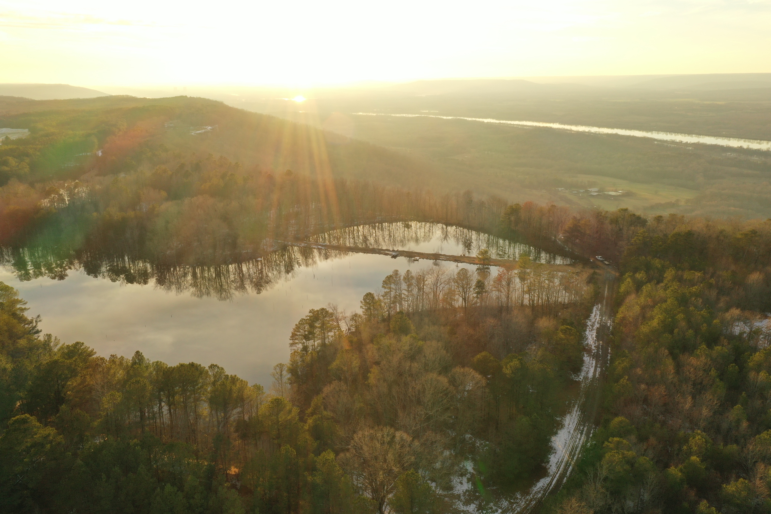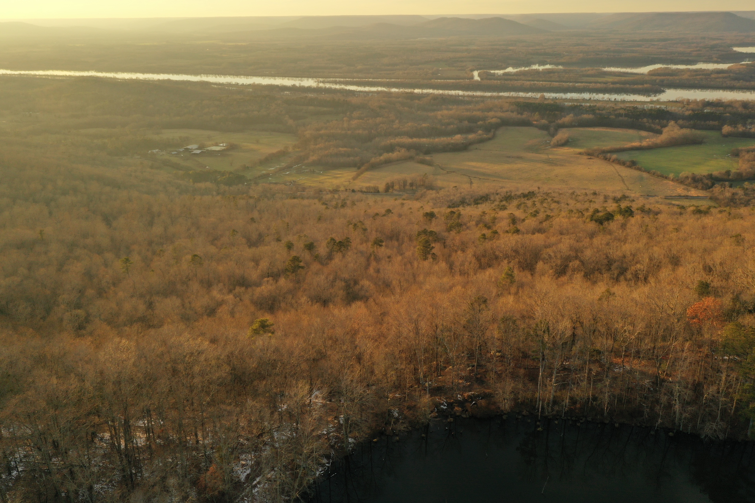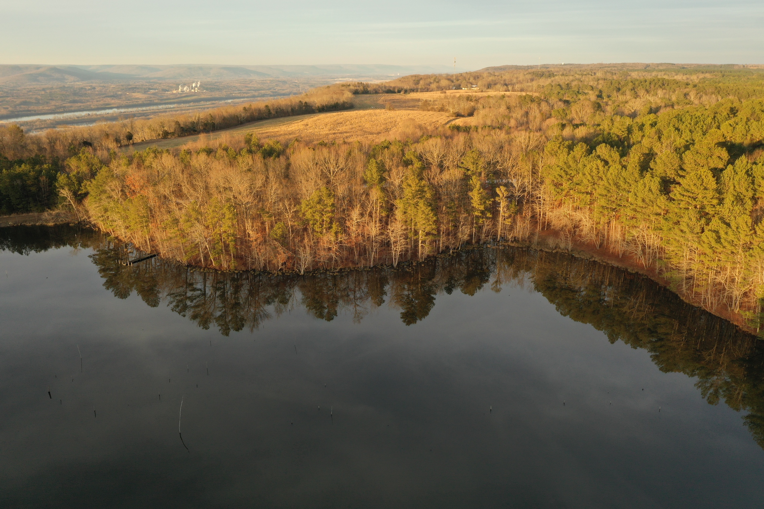 Panoramic, long-range, awe-inspiring views are what you will see when you step up to the brow. This tract has about 1300’ of frontage on the brow overlooking the Tennessee River. The centerpiece of the property is a 10+/- AC lake that is stocked with bass and bream and has a natural structure making it conducive to having a trophy bass lake. The timber is mature, with several UTV trails throughout. The front portion of the property has been used to mine large landscaping stones and still has plenty available. Below the brow is walk-in-only access but has beautiful hardwoods, and excellent deer and turkey hunting have been enjoyed for years here. A waterfall flows out of the lake and cascades over the rim, which is a soothing sound. The entrance is gated, and the gravel drive comes in off of a paved county road. The driveway is wide and well established and very flat. It would be ideal for driving all the way to the brow with even a two-wheel-drive vehicle. I have never had a property listed until now that has the most ideal cabin/homesite! You could build a cabin with a back deck that overlooks the Tennessee River, and the front overlooks a 10 +/- AC lake, absolutely stunning beauty. If you have an investment in mind, this would also be ideal for multiple cabins around the lake or the potential for campers all along the bluff. This is such a rare find to have the water, views, and easy access all in one property. I have seen enough properties to know; once this hits the website, it will get major attention, so if you see this, please do not delay and reach out. This is an incredible place! Please give listing agent Ben Richardson a call to set up a private showing.