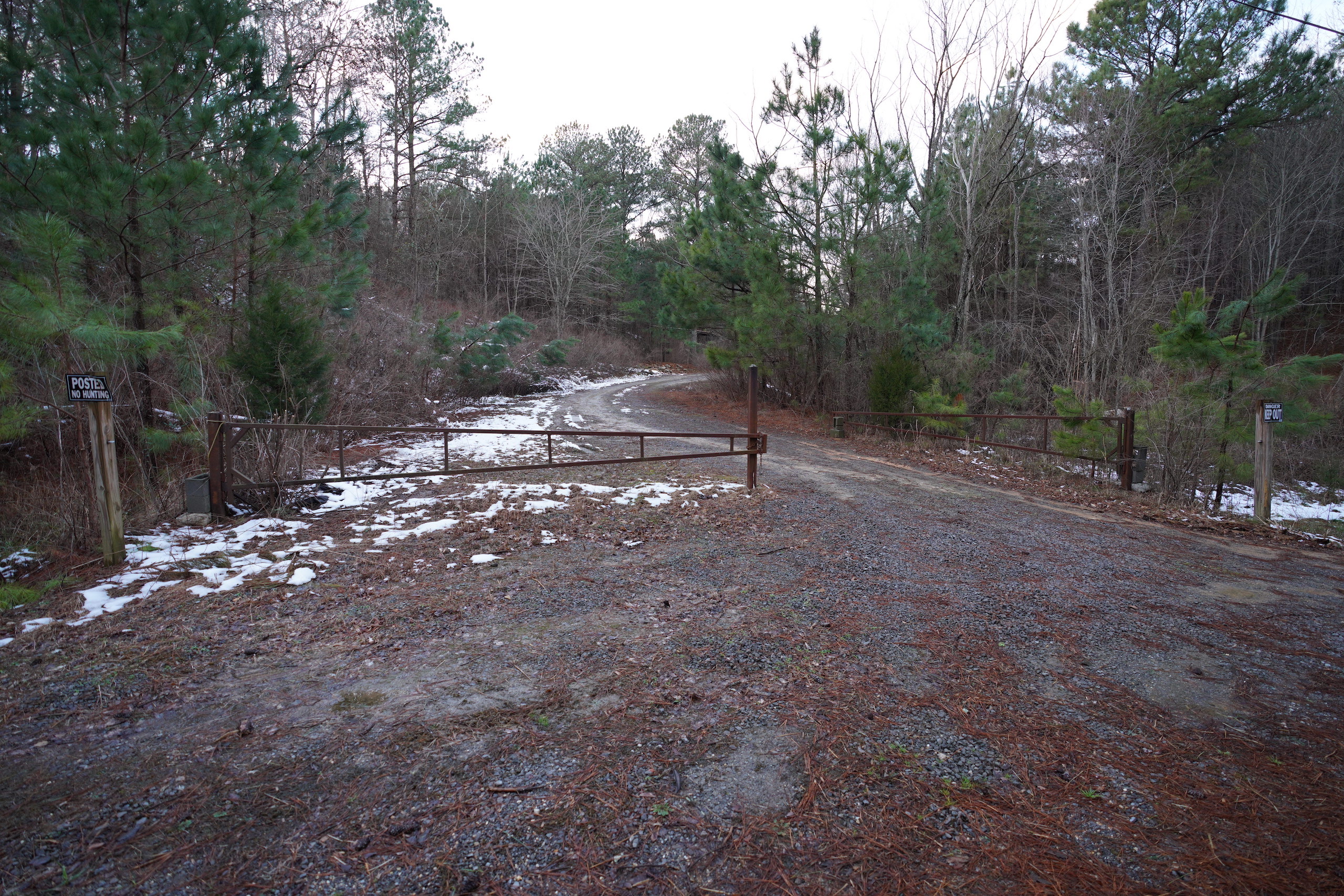 - Gated entrance with flat gravel driveway to brow
