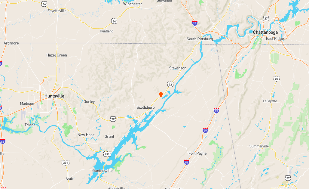 - Near Hollywood, between Scottsboro and Stevenson on HWY 72