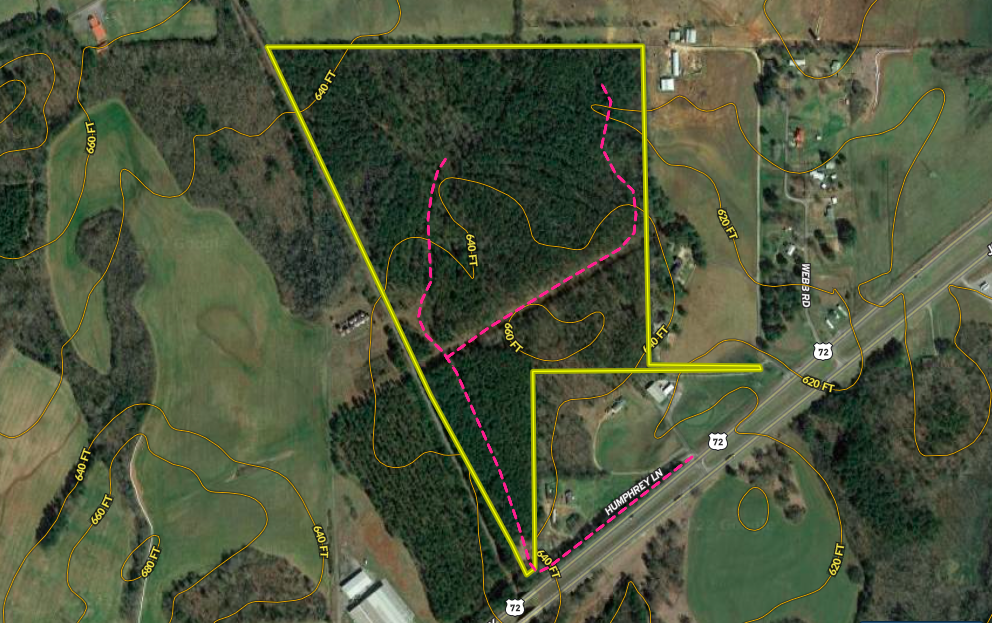 Located between Scottsboro and Steveson on Hwy 72 in the community of Hollywood, this timber tract would make an excellent hunting property. This property has been recently thinned, and the remaining pines are mature and thinned well for the remaining trees to thrive. A good road/trail system allows you to traverse to the back where you will find a couple of food plots, including a powerline that makes for a good shooting lane. There is also a wetland area with mature hardwoods, that could have good duck hunting potential. The access is right off HWY 72 and just a mile from Lake Guntersville. Please reach out for more details and to discuss this property.