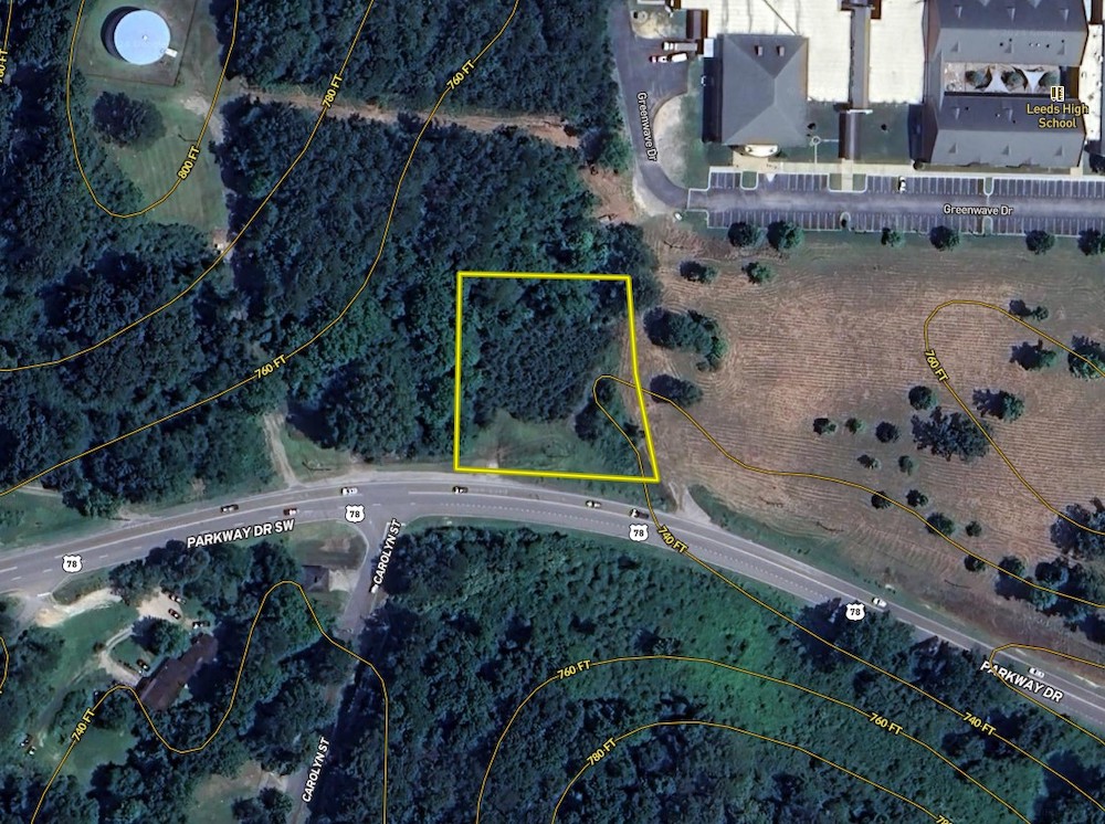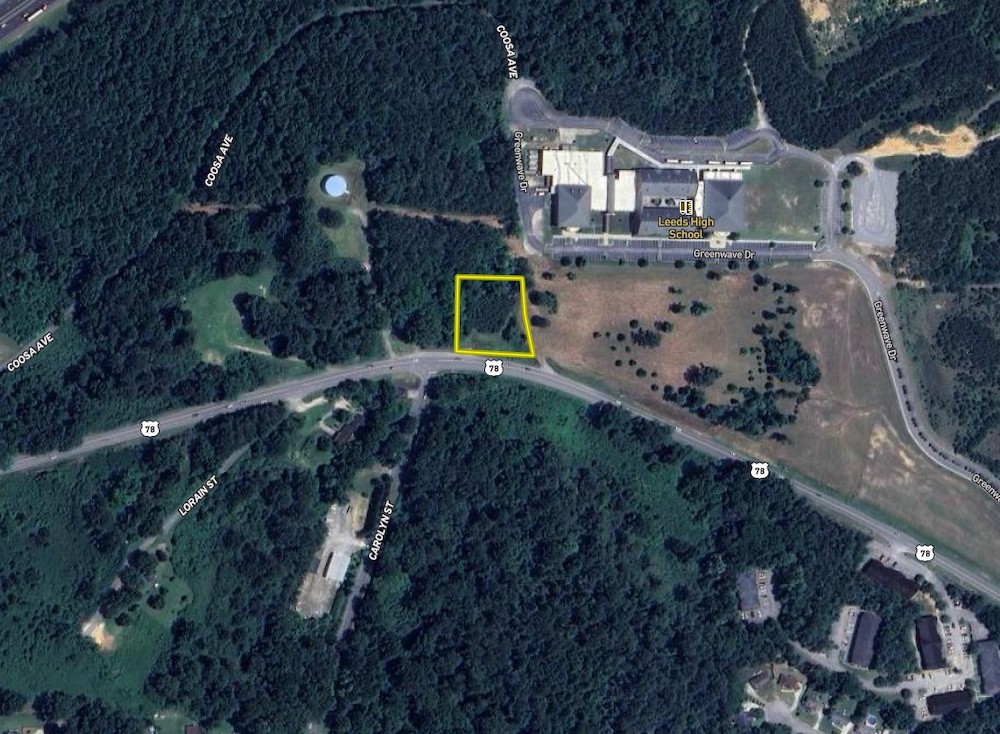 This property is prime for an investor or developer, located about 1 mile from I-20 exit 140 in Leeds. This is a busy exit due to the Buc-ee's, Bass Pro Shops, and the Shops of Grand River. The land also sits right below Leeds High School, which has a student population 615. The city of Leeds has the current zoning as B-2, a general business district suitable for a wide range of retail and service areas along major streets. Birmingham is 16 miles to the west, and Pell City is 21 miles to the east. Daily traffic is around 12,000 vehicles per day at the property, and 19,600 in front of Buc-ee's. There is around 230' of road frontage, and power, water, and sewer are available at the property.