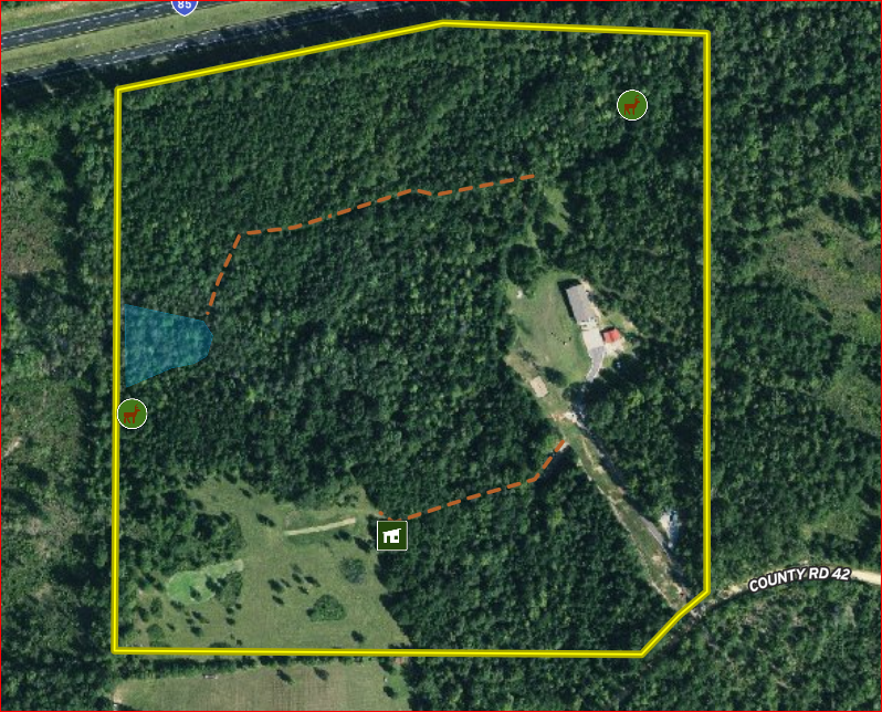 Food plot, Trail network, Tree stand/Blinds