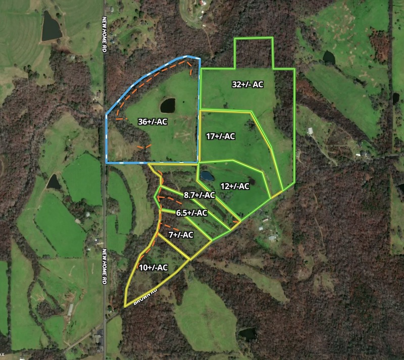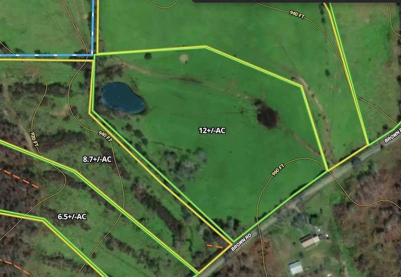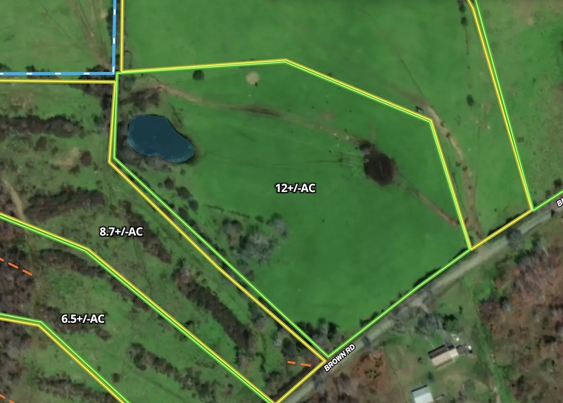 This pasture tract includes approximately 12 acres along Brown Road, a paved county road in Marshall County, Alabama. The property features more than 450 feet of road frontage, providing access options. Both electrical and water services are available along the road. Topography is flat, with open pasture dominating most of the tract. A scattered group of young and mature trees accents the landscape. In the back, there is a pond approximately 3/10th of an acre, which would be great for a watering hole for livestock or horses, or a catfish pond. The tract offers sufficient space for a house, barn, and garden. Positioned between Albertville, Boaz and Douglas in rural Marshall County, the property offers a private feel while remaining accessible to nearby communities. Marshall County lies atop Sand Mountain, a sandstone plateau in northeastern Alabama. The elevation is generally higher than the surrounding regions, and the soil is a well-drained loamy type typical of the plateau. The combination of flat terrain, open pasture, pond, trees, and nearby utilities provides flexibility for various uses, including hobby farming or your ideal farmstead with a homesite. The tract’s location balances peaceful rural character and proximity to local services and retail. A licensed real estate agent owns these tracts. Additional tracts are available - some restrictions apply. Please review the provided map and reach out for further information.