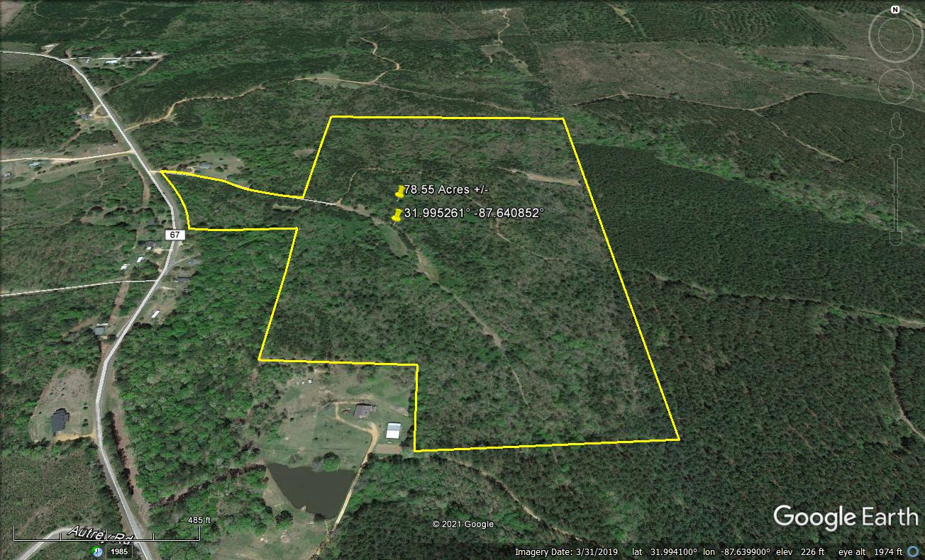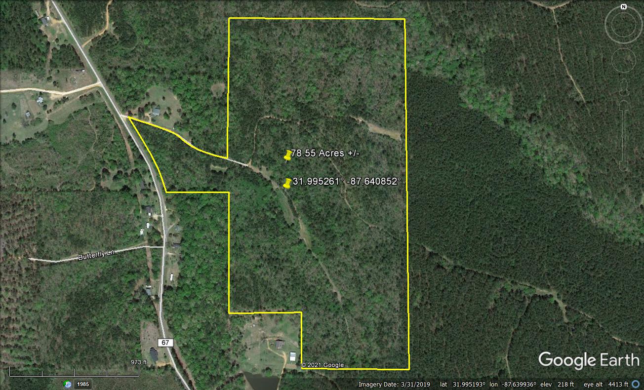 Nice hunting and recreational property located in the popular Black Belt hunting area of the state. This property is wooded with a mixed stand of hardwoods, softwoods and pines. There is a trail system within the property, along with two game plots. The property does have a wet weather branch that runs through a portion of the property and a small watering hole. The access is shared with the neighbor as you enter and the property also does have county road 67 frontage. You could make your own private access if you so desired. There is county water and power that runs along county road 67. If you’ve been looking for a nice weekend getaway for hunting and recreating, there is a couple of nice areas that would make for good campsites as you enter the property. PLEASE NOTE: THIS PROPERTY IS AGENT OWNED. Call today for more information.