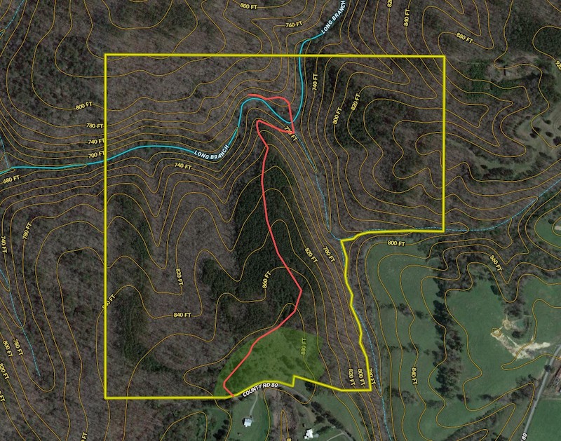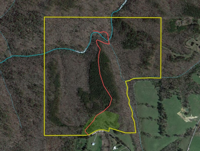 Want to get away? Here is a rare opportunity to own land bordering the Bankhead National Forest with your very own waterfall and swimming hole. This property is conveniently located Between Huntsville and Birmingham, only 30 minutes from downtown Cullman. It has a paved road frontage with public water and electricity available. There is a 6-acre field at the entrance to the property that was recently cleared, and it would make a perfect spot for building a home or cabin, grazing animals, or planting a garden. There is also an excellent spot to build a deep pond on the edge of this field. A new road system will carry you directly to the primary highlight of the property, Long Branch Falls. Here you will find a cleared area overlooking the falls, creek and swimming hole. This is a perfect spot to set up a cooler and grill and spend the day listening to nature and enjoying your private oasis. The falls tumble over a rock wall and pour into the clear pool below. The water here is several feet deep, and off to the side you can actually swim underneath the bluff. Long Branch runs all year long and is fed by a mountain stream and multiple small springs. All along the main creek are massive rock formations that create cave-like overhangs and bluffs, providing outstanding views. Underneath the largest cave is a spot to sift for arrowheads and pottery shards, evidence of the Native Americans that once used this spot for shelter. Mature oaks, hickories, and poplars tower over the creek, and big leaf magnolias, hemlocks, beech, and pines are mixed in. The topography is steep over the northern part of the property, and there are several old trails that could be opened back up for hiking or riding ATVs. The southern part of the property, nearest County Road 80, is flat to gently rolling. There is a 20-acre stand of loblolly pine here that is ready for its first thinning; it would be a perfect spot to create a pine savannah. To top it all off, this property is surrounded by Bankhead National Forest to the north, west and south, providing 1,000s of acres of additional land for privacy and enjoyment. If you like to hunt, there is ample evidence of deer, turkey, and other wildlife. The combination of accessibility, water features, timber, topography, and open areas make this property extremely unique. Please contact listing agent Spenser Bradley for more information and a private tour!