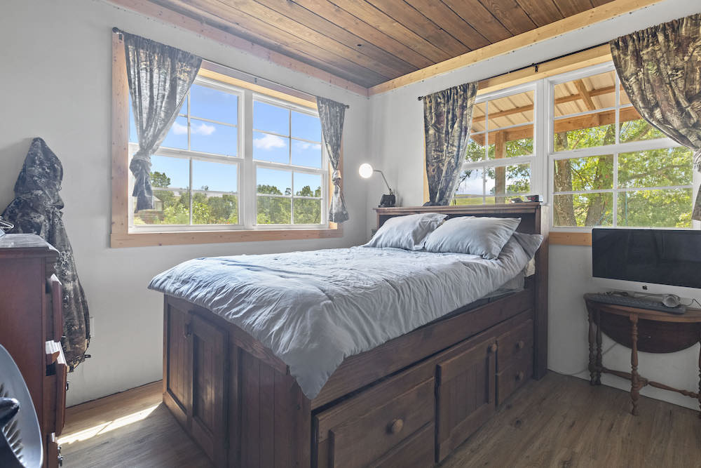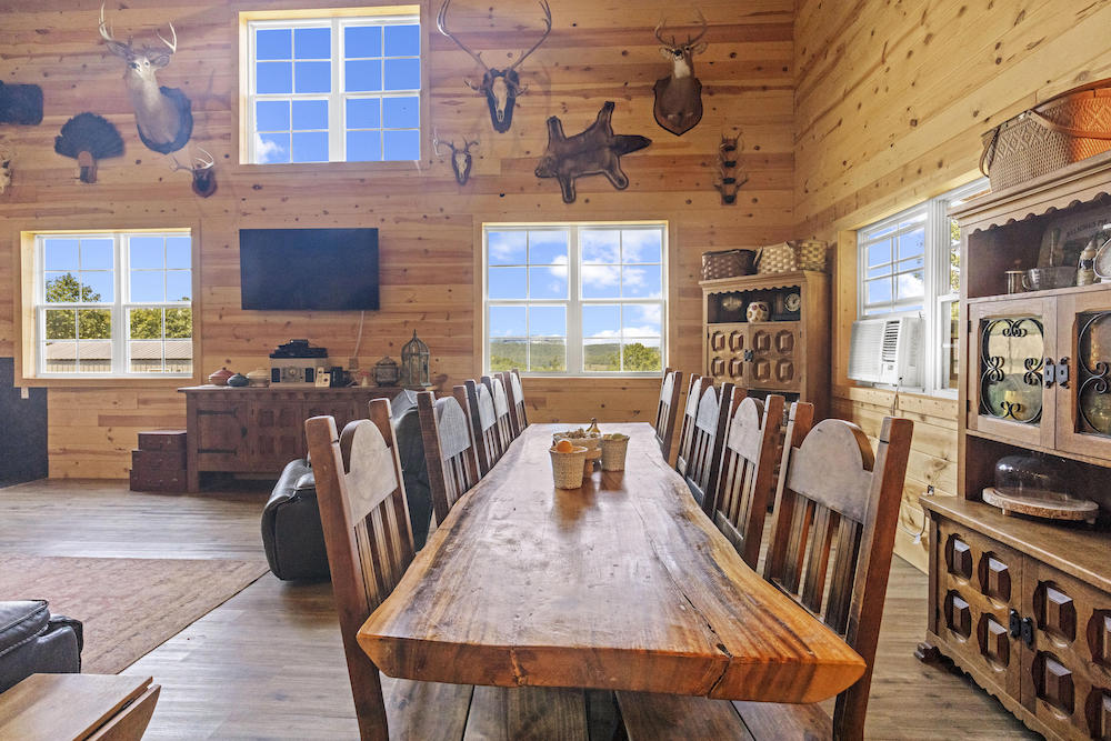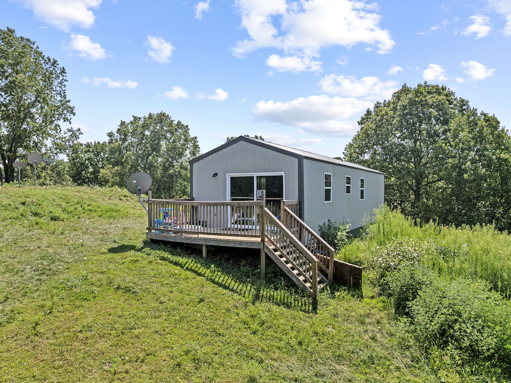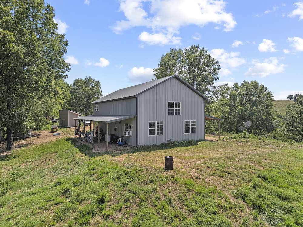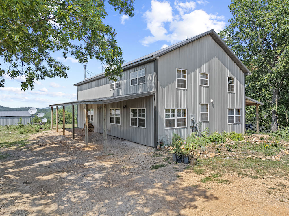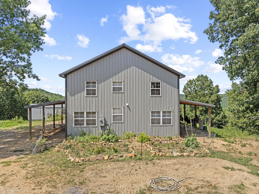 What an incredibly diverse and rare homestead in the heart of the Ozark Mountains. This special tract has been developed with the word “Family” at its core. The effort, infrastructure, and thoughtfulness have lined out such a spectacular property; you just need to come put your touch on this excellent farm. Located between Harrison, AR, and Branson, MO, near Bull Shoals Lake, nothing is to be desired for amenities as you are just minutes to groceries, shopping, entertainment, world-class fishing, recreational opportunities, and more. This property is set in a very private and secluded section of larger properties and farms surrounding it. The land is comprised mainly of a large ridge overlooking stunning scenic views to the North of the lush valleys and mountains. Being designed primarily as an integrated family “self-sustaining” property, the property is sure to impress anyone. The 2,400 sq ft main house is a stunning barndominium with 16’ sidewalls, a large, covered porch area, and a wonderful open floor plan complete with a large loft. This 5 bedroom, 2 bath home has room for all your family and friends with extra wide hallways, massive living room/dining/kitchen space, and ample windows. Vinyl plank flooring, 8” thick insulated walls, pine wood finishings, and wood ceilings all come together in a symphony for the ideal duo of efficiency and beauty. All of this, along with the breathtaking views on the north end of the home through the vast number of windows, really draws you in. Nearby, but not too close, are 2 additional homes. Each of these 780 sq ft quaint houses are metal-sided, 2-bedroom, 1 bathroom, ample deck space, and are moveable if desired. Continuing on with the goal of maintaining a self-sufficient lifestyle, you have 2 large chicken coops with pens, a 12X32 greenhouse, a large solar shed with 13 solar panels, and ample garden space. The solar shed also boasts 3 – 10,000 kw batteries, is portable, and has 2 Sol-AR 12,000 kw inverters. Another amazing attribute is the large 40x30 barn with 3 stalls and a 12 ft overhang. Currently, several small pastures have been fenced off, and some cross-fencing is in place. The cattle, horses, and other livestock will do very well with this excellent setup. The ridge and rolling topography not only provide space, privacy, and beauty but also give you a constant breeze on warm summer days. The wildlife also calls this place home, and from the windows, you can watch deer, turkey, black bear, and an abundance of other wild fame. A small spring runs most of the year in one of the ravines for additional attraction. Areas of lush pasture, dense native cover, and some pockets of nice timber add to the high-quality hunting. Recreating the infrastructure, tranquility, setting, location, and serene qualities of this spectacular property will be nearly impossible. What a special, diverse, and exceptional property to plant your roots and call home. Call today for your private showing.