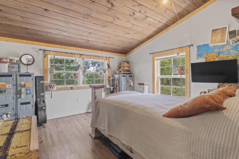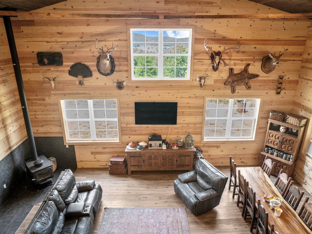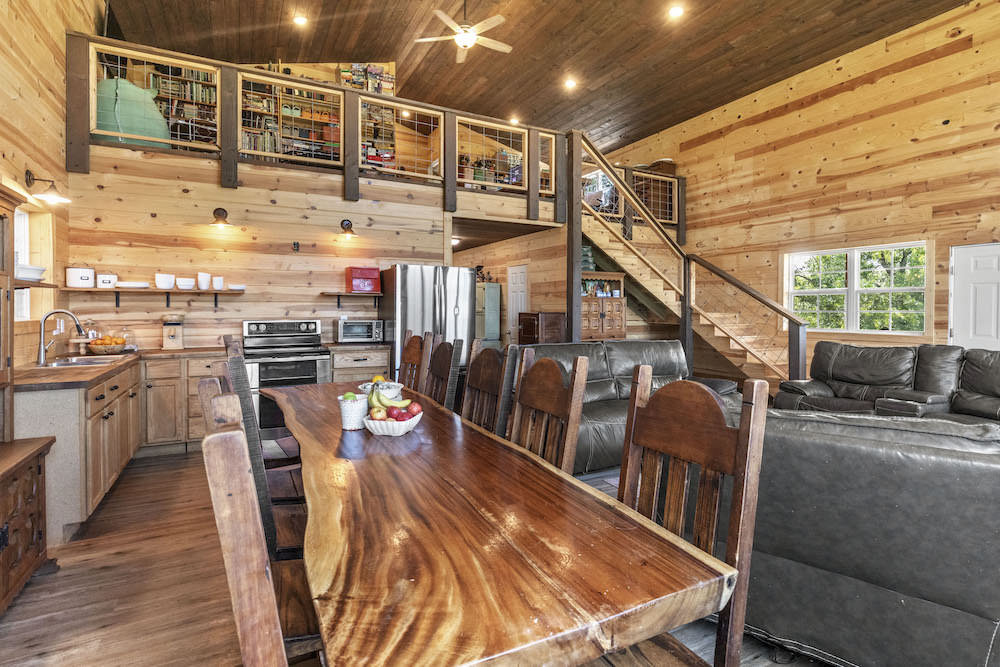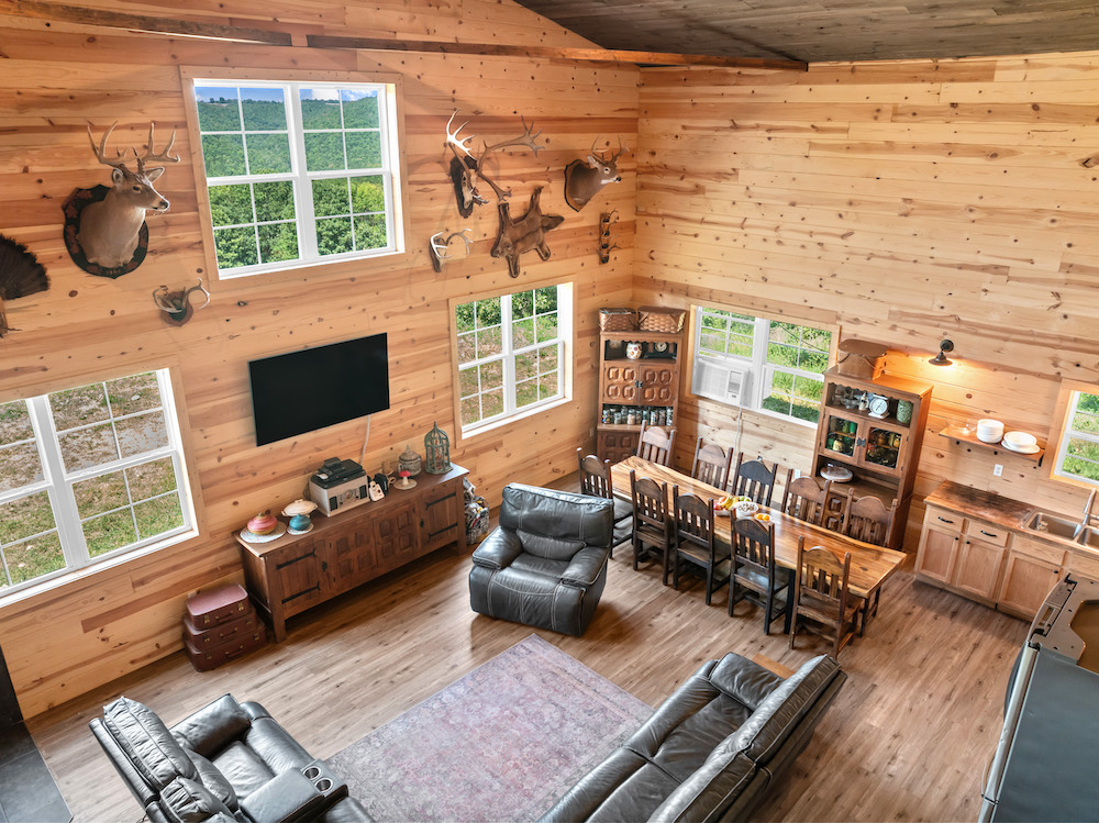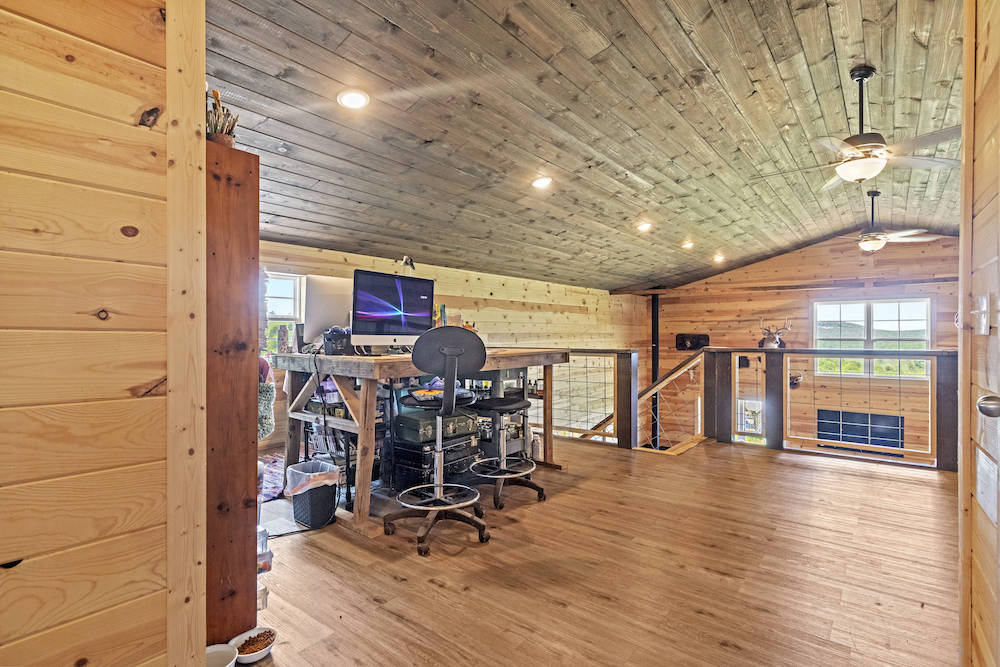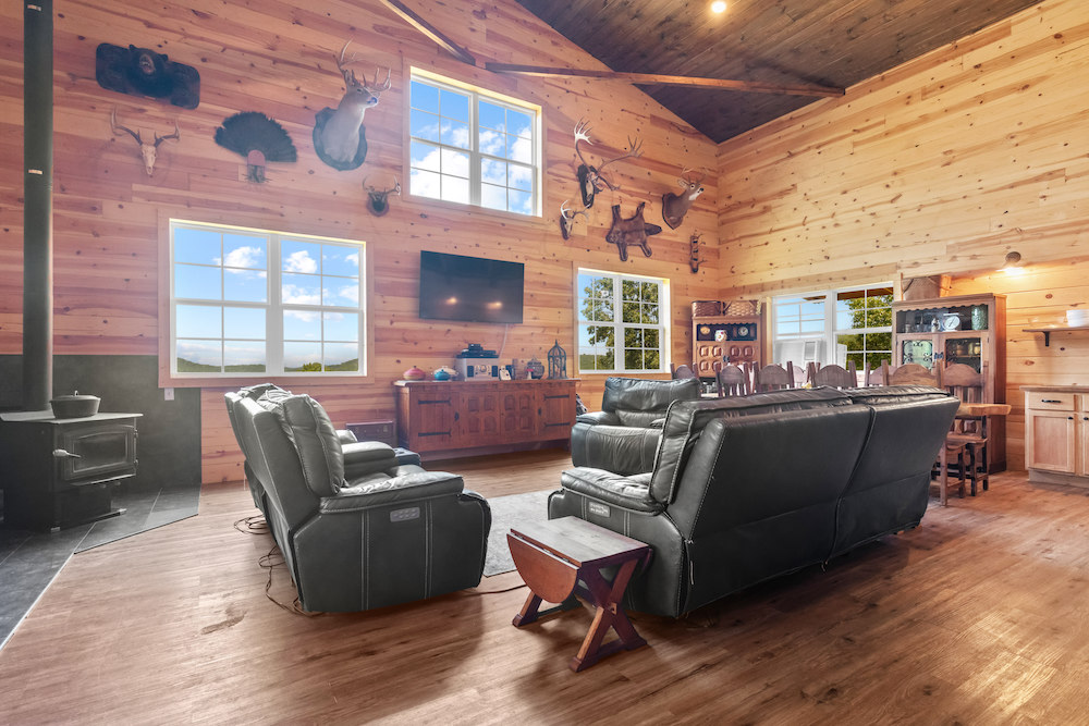 What an incredibly diverse and rare homestead in the heart of the Ozark Mountains. This special tract has been developed with the word “Family” at its core. The effort, infrastructure, and thoughtfulness have lined out such a spectacular property; you just need to come put your touch on this excellent farm. Located between Harrison, AR, and Branson, MO, near Bull Shoals Lake, nothing is to be desired for amenities as you are just minutes to groceries, shopping, entertainment, world-class fishing, recreational opportunities, and more. This property is set in a very private and secluded section of larger properties and farms surrounding it. The land is comprised mainly of a large ridge overlooking stunning scenic views to the North of the lush valleys and mountains. Being designed primarily as an integrated family “self-sustaining” property, the property is sure to impress anyone. The 2,400 sq ft main house is a stunning barndominium with 16’ sidewalls, a large, covered porch area, and a wonderful open floor plan complete with a large loft. This 5 bedroom, 2 bath home has room for all your family and friends with extra wide hallways, massive living room/dining/kitchen space, and ample windows. Vinyl plank flooring, 8” thick insulated walls, pine wood finishings, and wood ceilings all come together in a symphony for the ideal duo of efficiency and beauty. All of this, along with the breathtaking views on the north end of the home through the vast number of windows, really draws you in. Nearby, but not too close, are 2 additional homes. Each of these 780 sq ft quaint houses are metal-sided, 2-bedroom, 1 bathroom, ample deck space, and are moveable if desired. Continuing on with the goal of maintaining a self-sufficient lifestyle, you have 2 large chicken coops with pens, a 12X32 greenhouse, a large solar shed with 13 solar panels, and ample garden space. The solar shed also boasts 3 – 10,000 kw batteries, is portable, and has 2 Sol-AR 12,000 kw inverters. Another amazing attribute is the large 40x30 barn with 3 stalls and a 12 ft overhang. Currently, several small pastures have been fenced off, and some cross-fencing is in place. The cattle, horses, and other livestock will do very well with this excellent setup. The ridge and rolling topography not only provide space, privacy, and beauty but also give you a constant breeze on warm summer days. The wildlife also calls this place home, and from the windows, you can watch deer, turkey, black bear, and an abundance of other wild fame. A small spring runs most of the year in one of the ravines for additional attraction. Areas of lush pasture, dense native cover, and some pockets of nice timber add to the high-quality hunting. Recreating the infrastructure, tranquility, setting, location, and serene qualities of this spectacular property will be nearly impossible. What a special, diverse, and exceptional property to plant your roots and call home. Call today for your private showing.