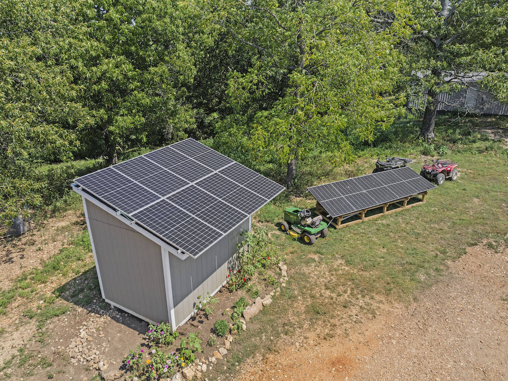 - Portable solar shed with 13 panels, Sol-AR inverters and 3 batteries