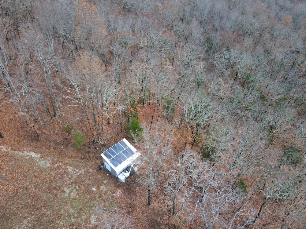 - Small off-grid storage shed with solar