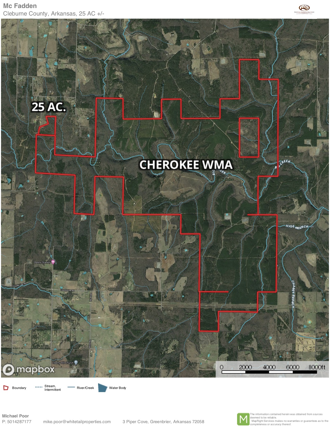 Your own entrance to the Arkansas Game and Fish Cherokee Wildlife Management Area! Put your cabin here and enjoy all the recreational opportunities that exist on the WMA. Approximately 3000 ac. of excellent hunting, trail riding, camping and hiking all bordering this property for ¼ mile. Located at the end of the road with electricity and rural water near. The gently rolling property has its own trail/road system for easy access throughout the property to private deer stand locations and a very nice stream. The mature timber with scattered thickets attracts and holds the deer, turkey and other game. Heber Springs, Greer’s Ferry Lake and world-class trout fishing is only 20 min. away! About an hour from Little Rock.