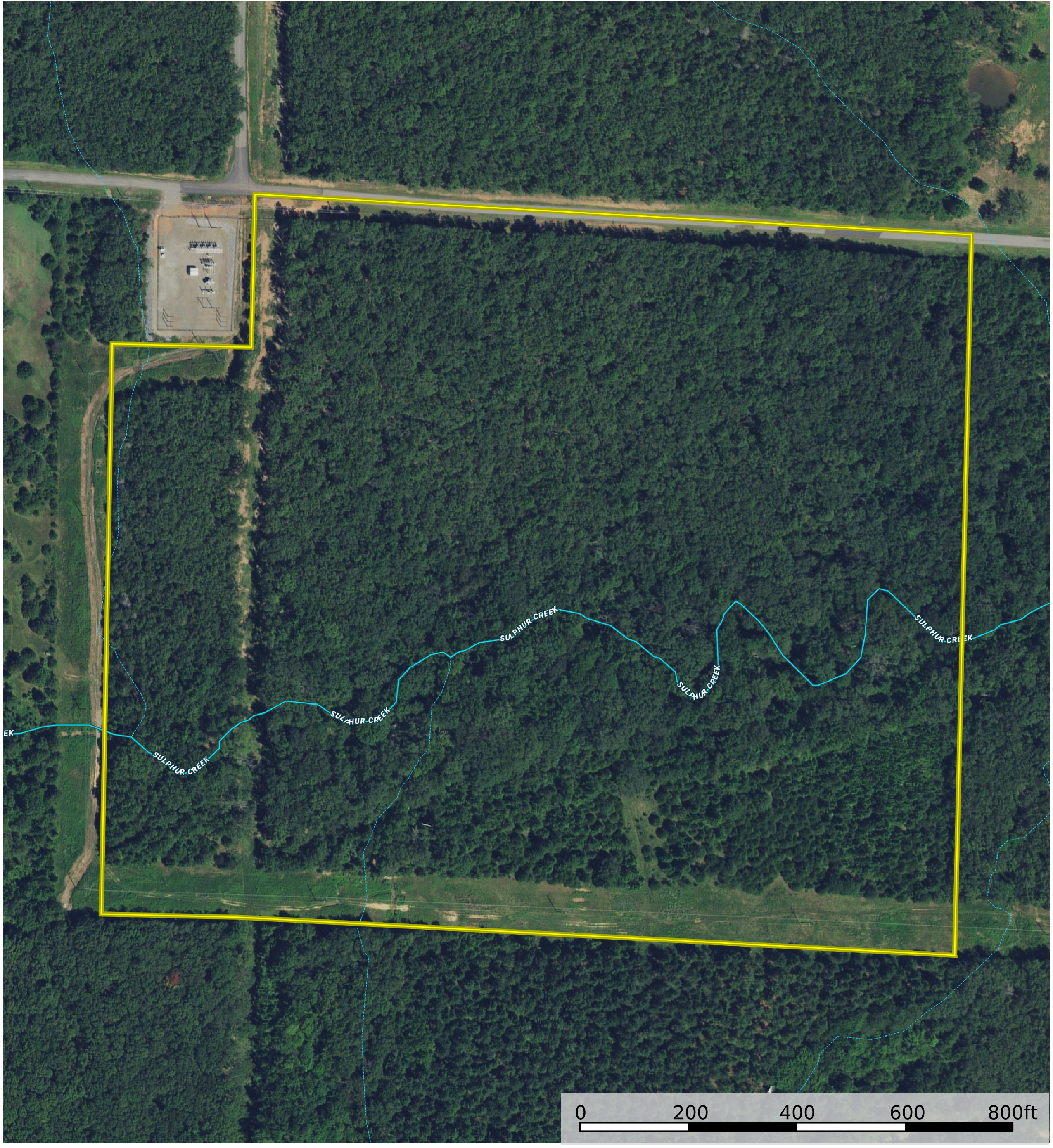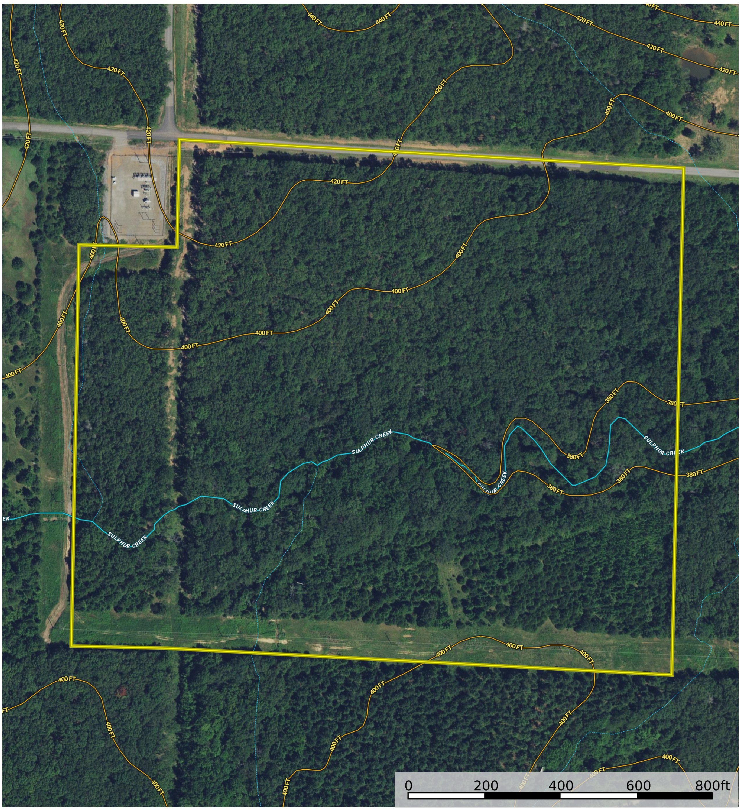 - Sulfur Creek flows across the property