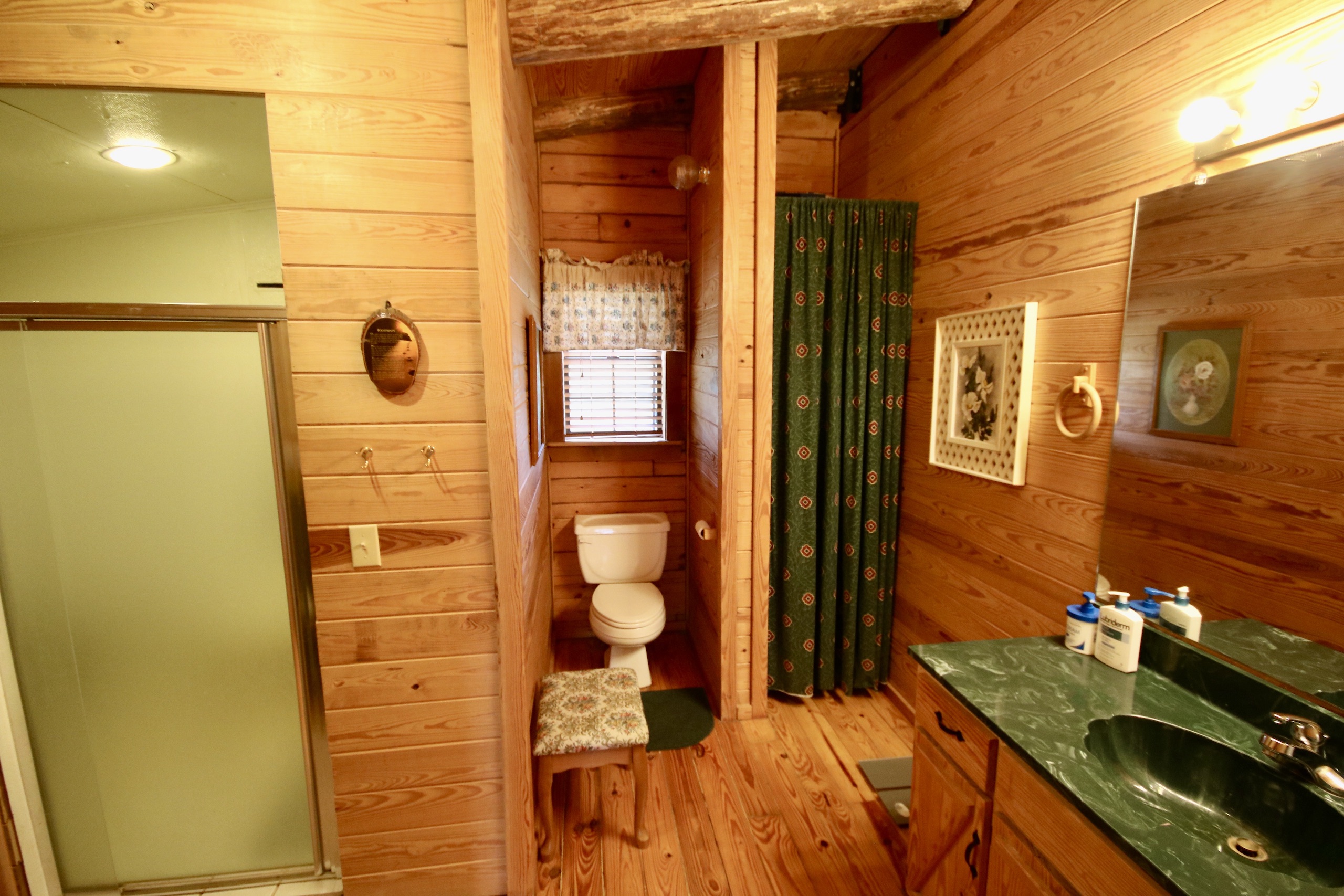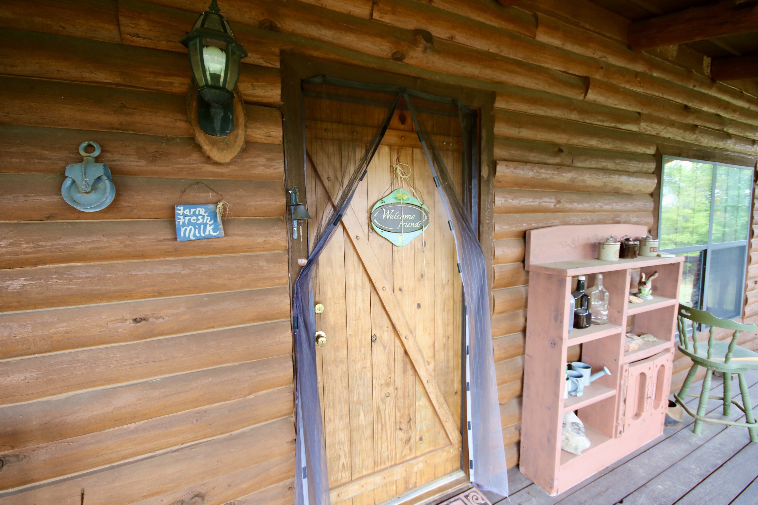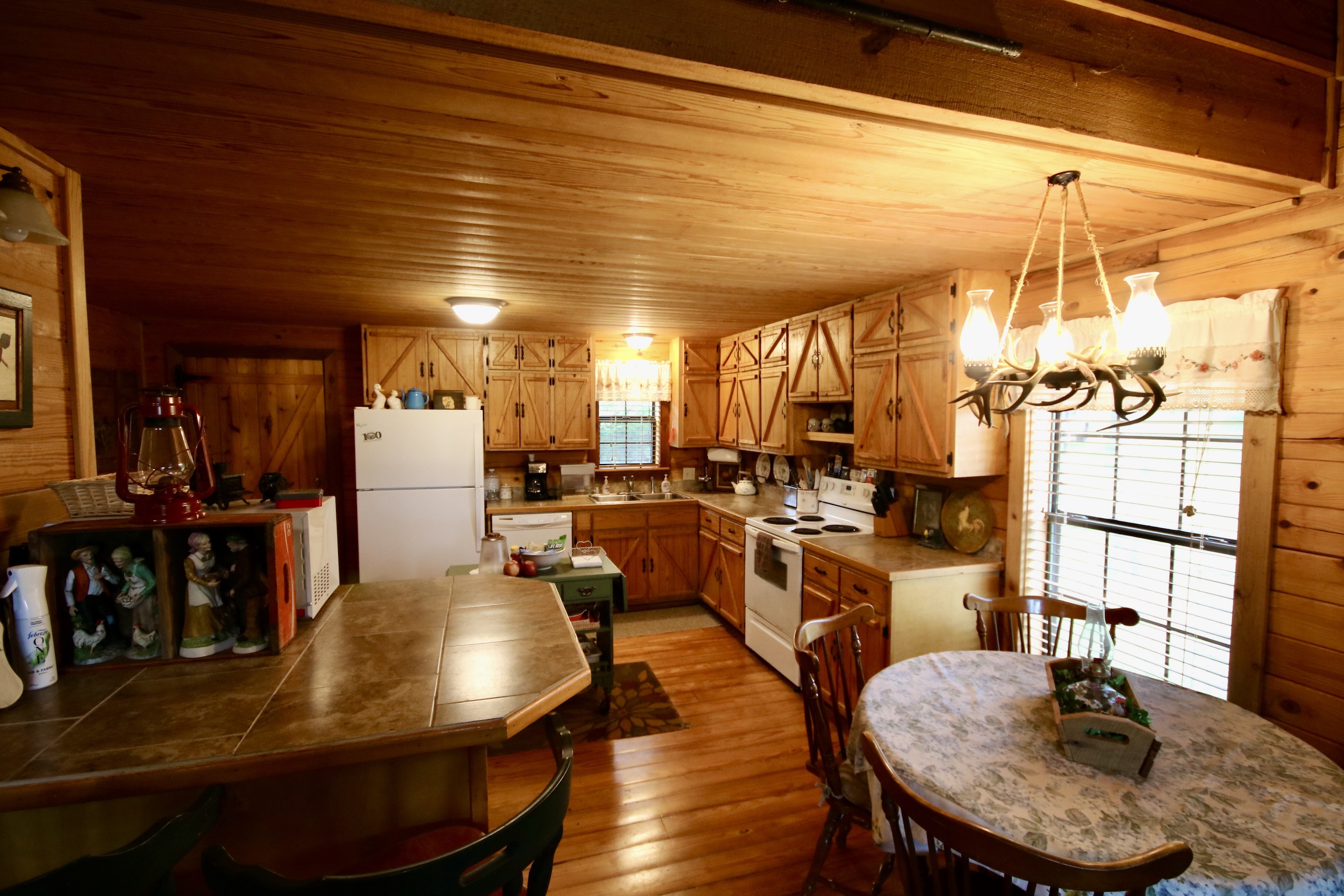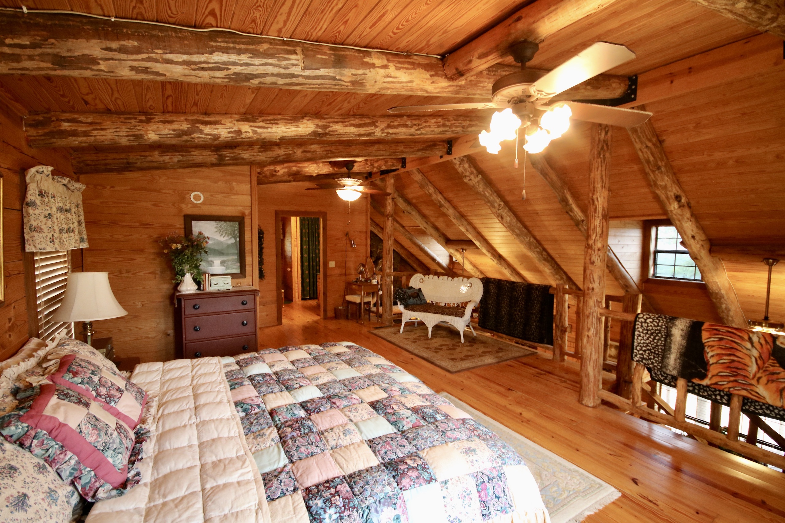 - Cabin offers a large open floor plan, custom-built rock fireplace, amazing woodwork, one bedroom with additional sleeping upstairs and two full baths