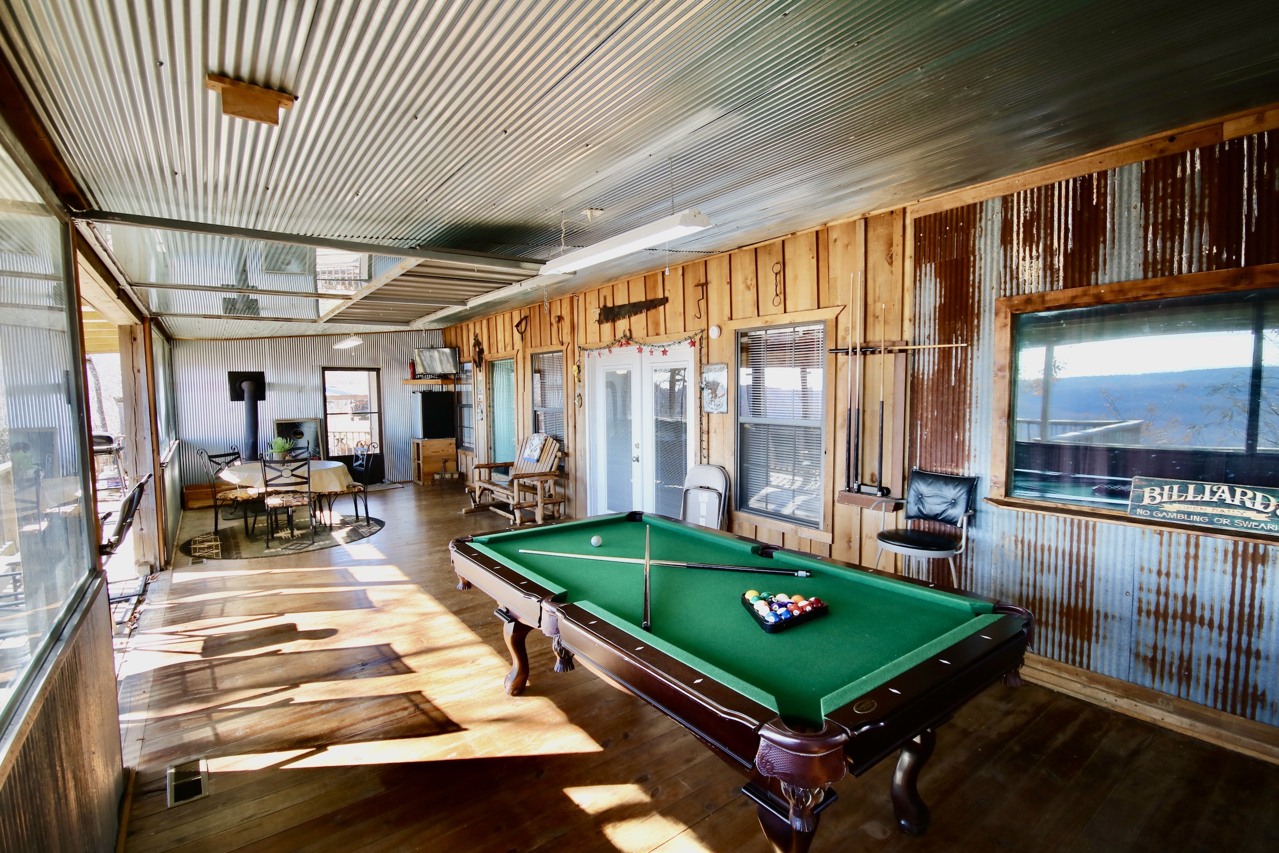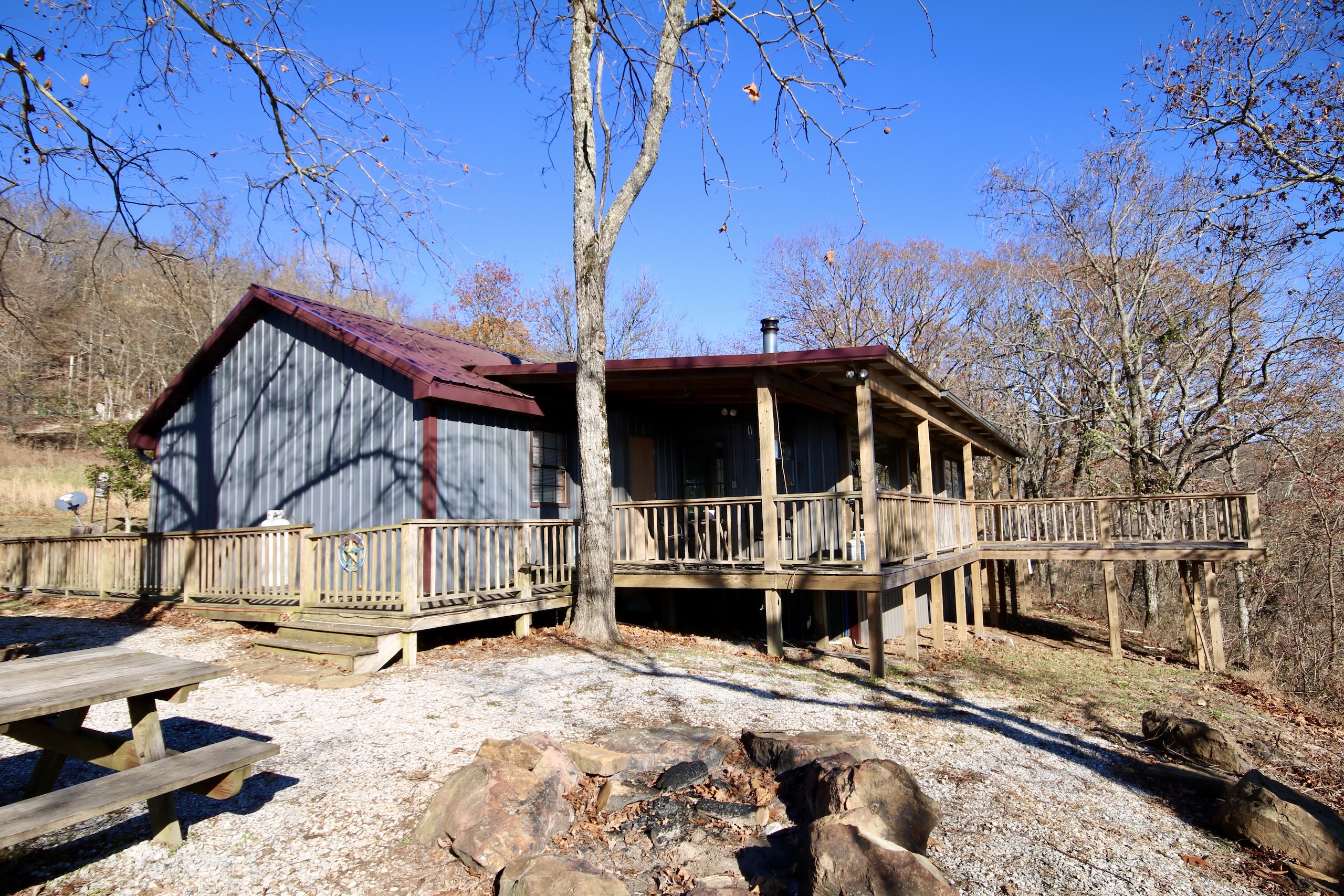 Looking for an incredible investment that you can both enjoy and have some solid returns? This is it. What an amazing and rare opportunity to own a pristine and beautiful cabin in the heart of the Ozarks, virtually surrounded by a National Forest. This place is currently being rented as an Airbnb cabin with over one year of rental history. The cabin boasts three bedrooms, a large open great room with open dining and kitchen, two bathrooms, and room to sleep 12 guests with an average of over 30% occupancy rate. The cabin boasts a unique modern/rustic vibe with custom woodwork throughout. The vaulted ceilings are complimented with exposed wood beams, plenty of windows for natural light, and views of the majestic valleys below from multiple massive windows. A split floor plan ensures privacy for any guest list. The bedrooms are spacious and comfortable, and the living area is open and warm, with ample space for games and family time. As you enter the oversized glassed entertainment room, you are taken aback by your blend of indoor/outdoor space. A massive glass wall is customized to retract into the ceiling via an electric hoist, and the massive deck immediately greets you with a vista view that will stop you in your steps. The game room sports a bar feel with an outdoor wood stove, pool table, television, sink, and mind-blowing views of the National Forest. This unique setup is located amidst some of the most desirable hiking, camping, and ATV/UTV trail systems in the country! A vacation destination for thousands of tourists and outdoor enthusiasts every year. An ideal property for those looking to diversify funds with a personal vacation home that seconds as some rental income or an excellent opportunity to have some healthy ROI. This gem is hard to find and won’t last long. Call today for your private showing!