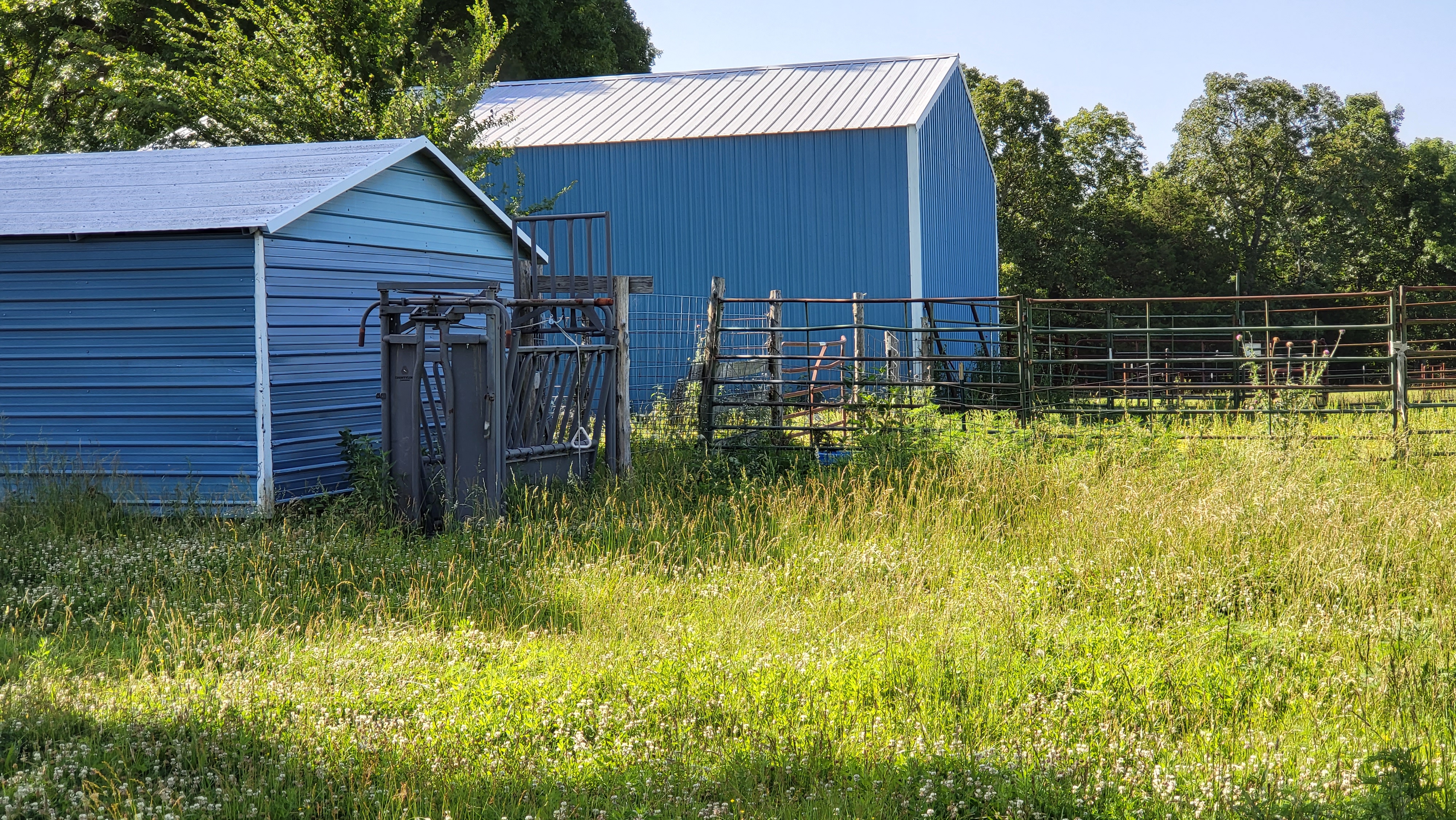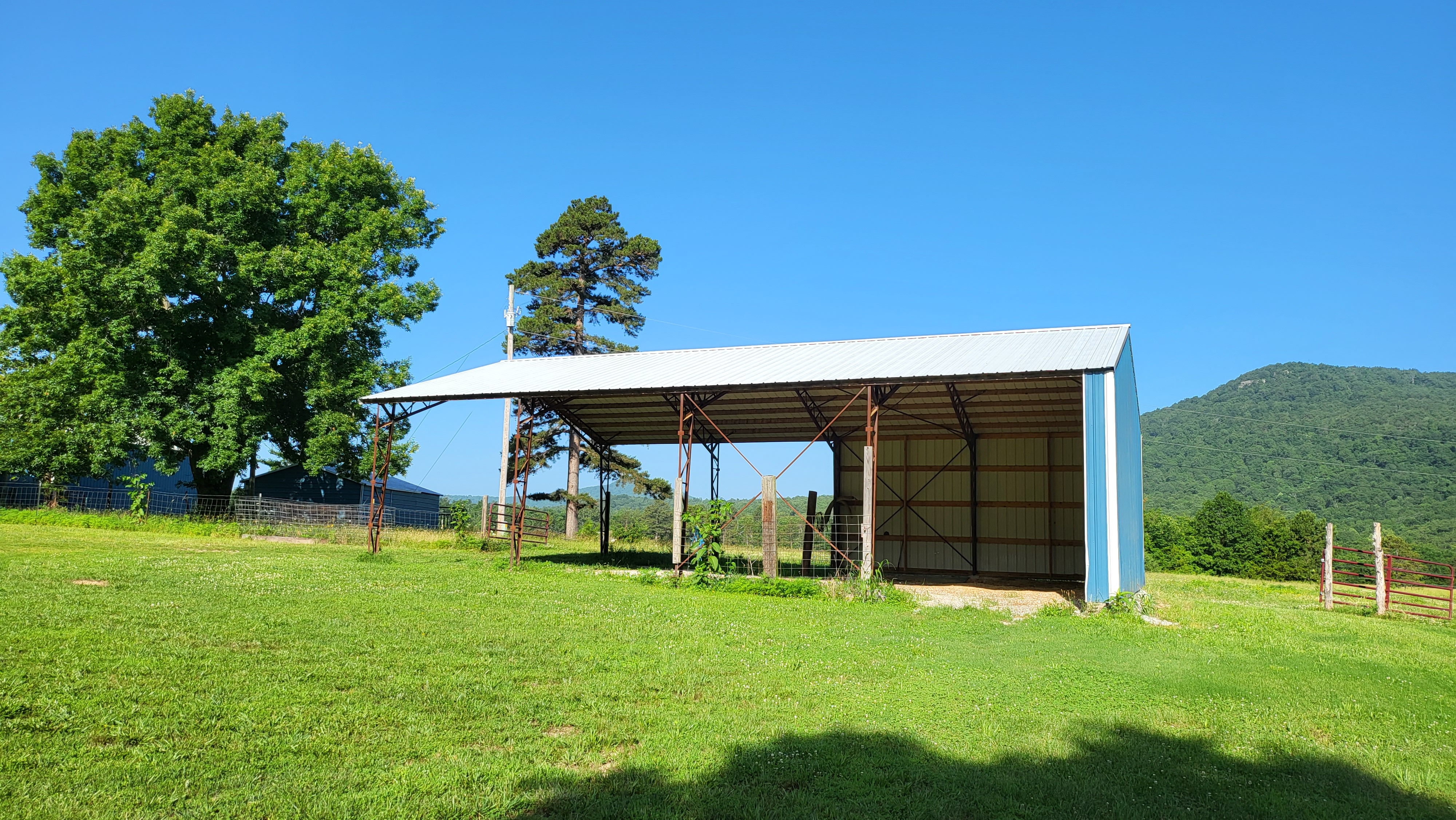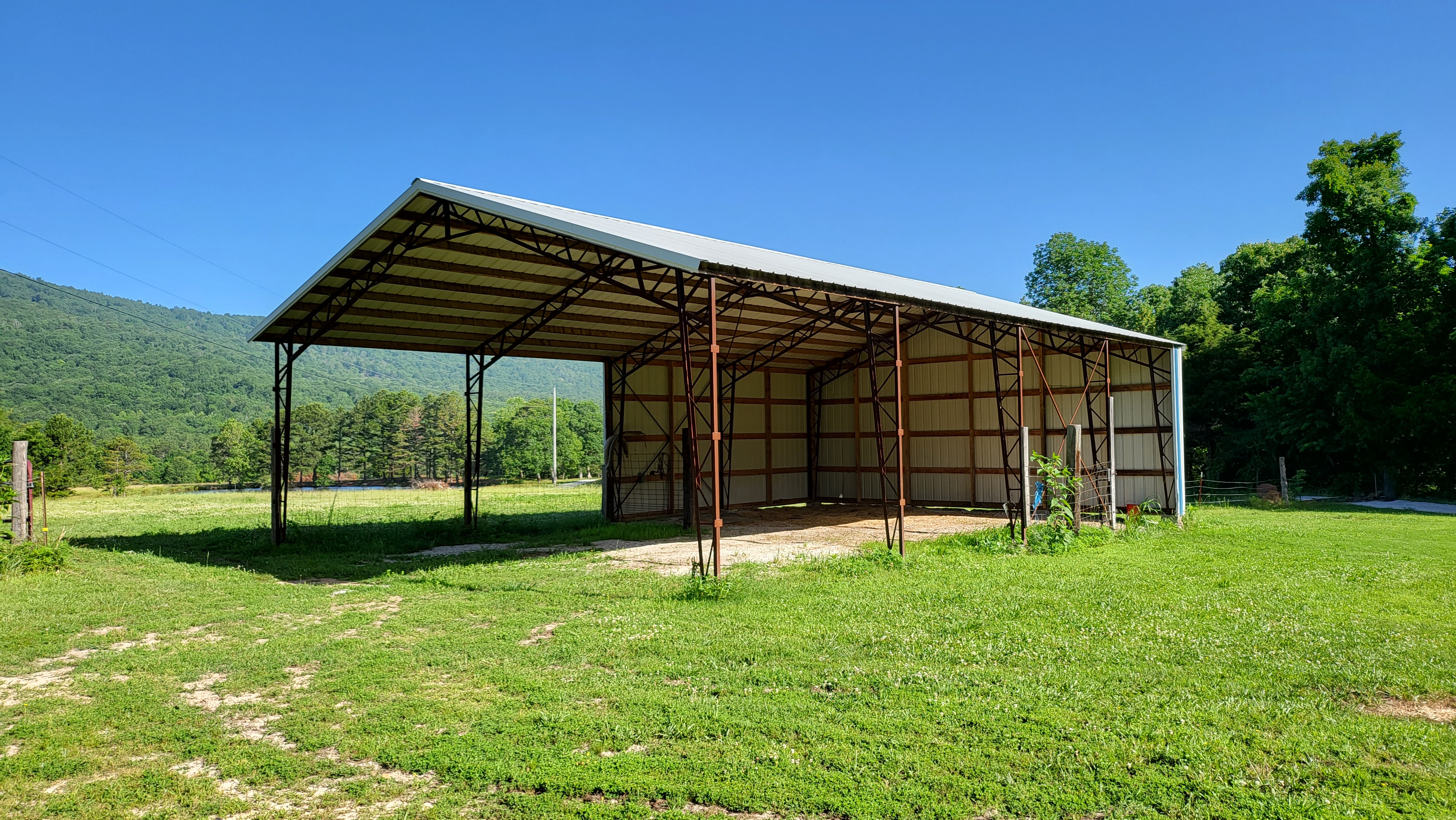 - Large metal hay storage shed