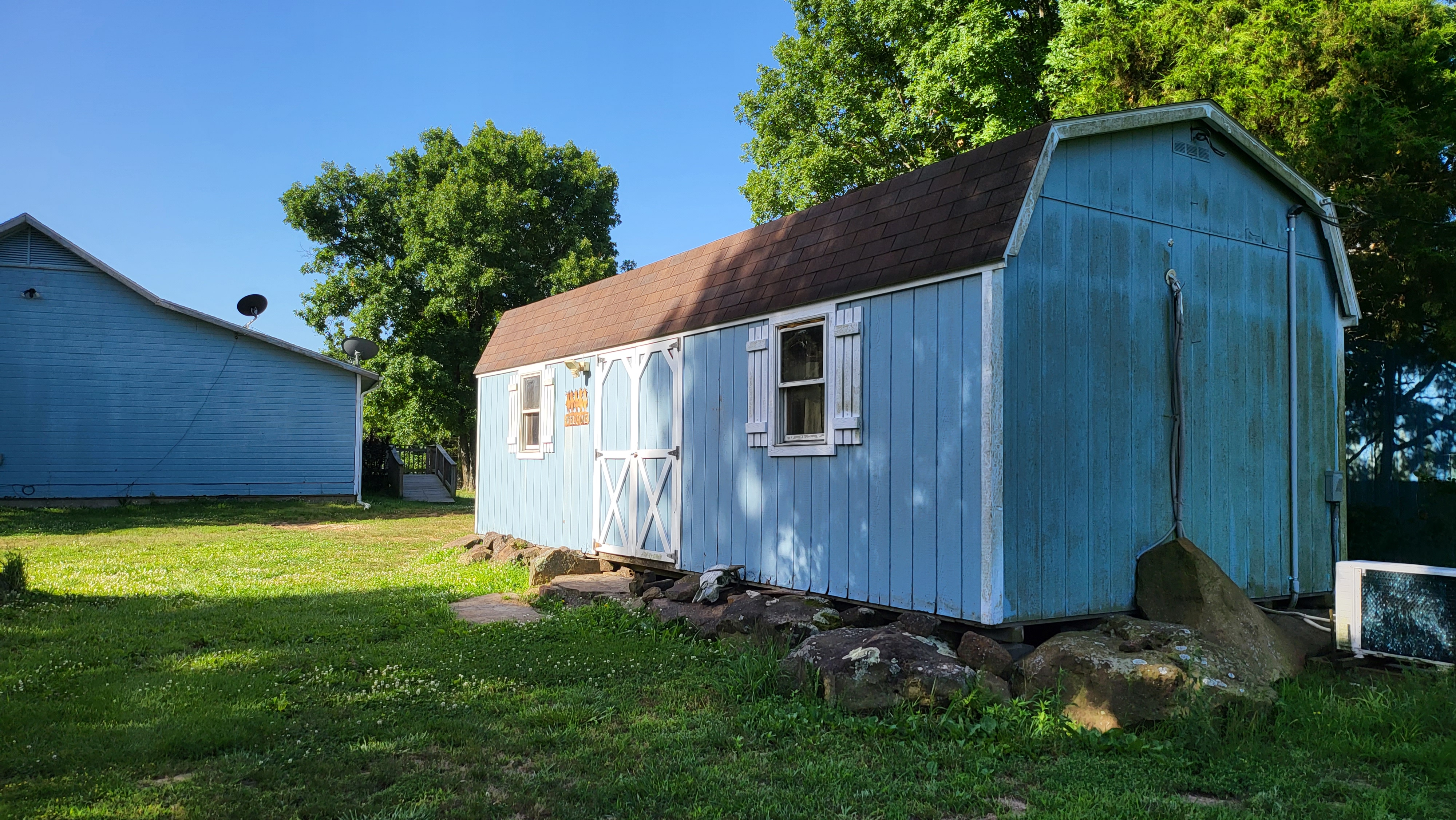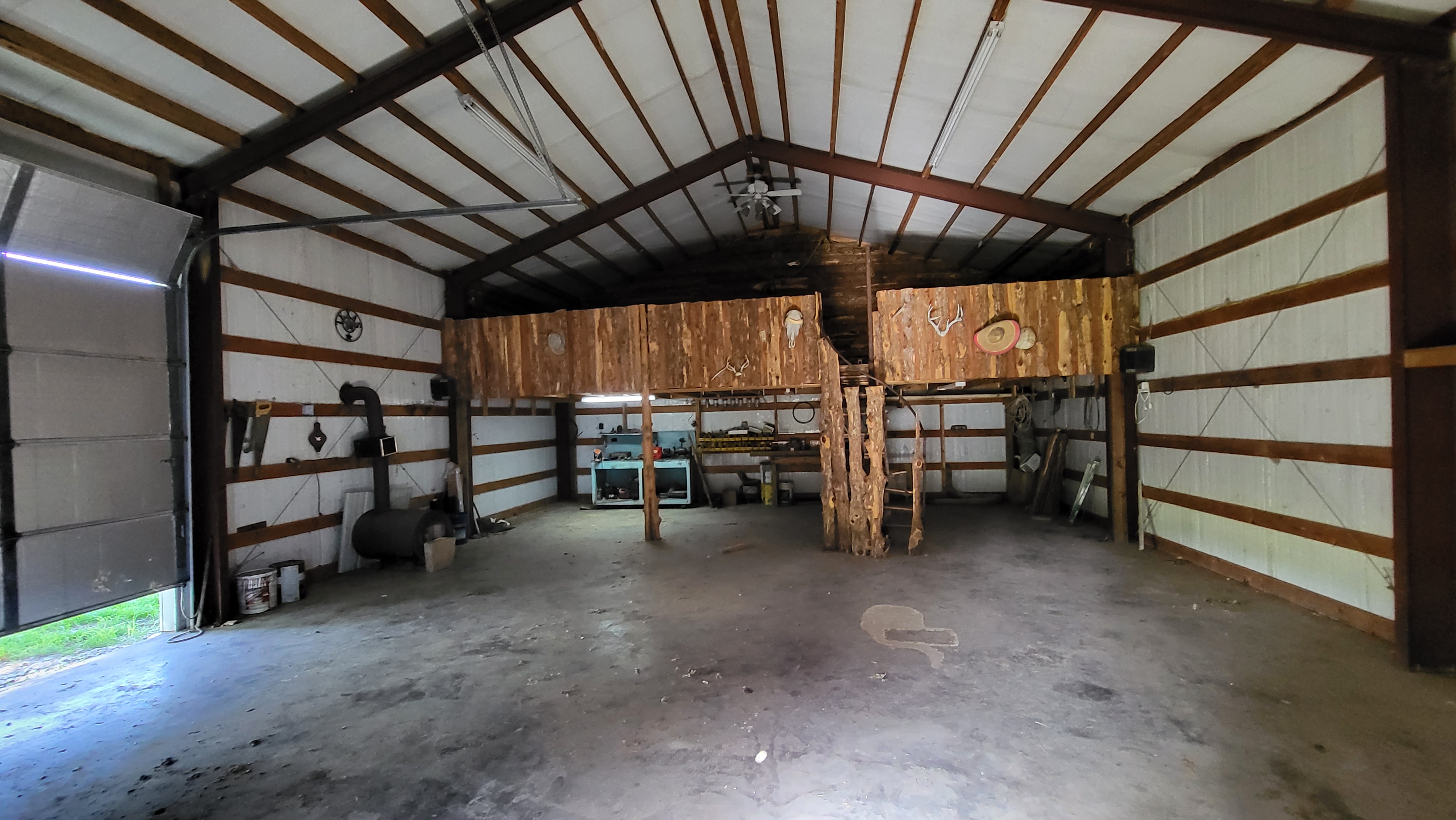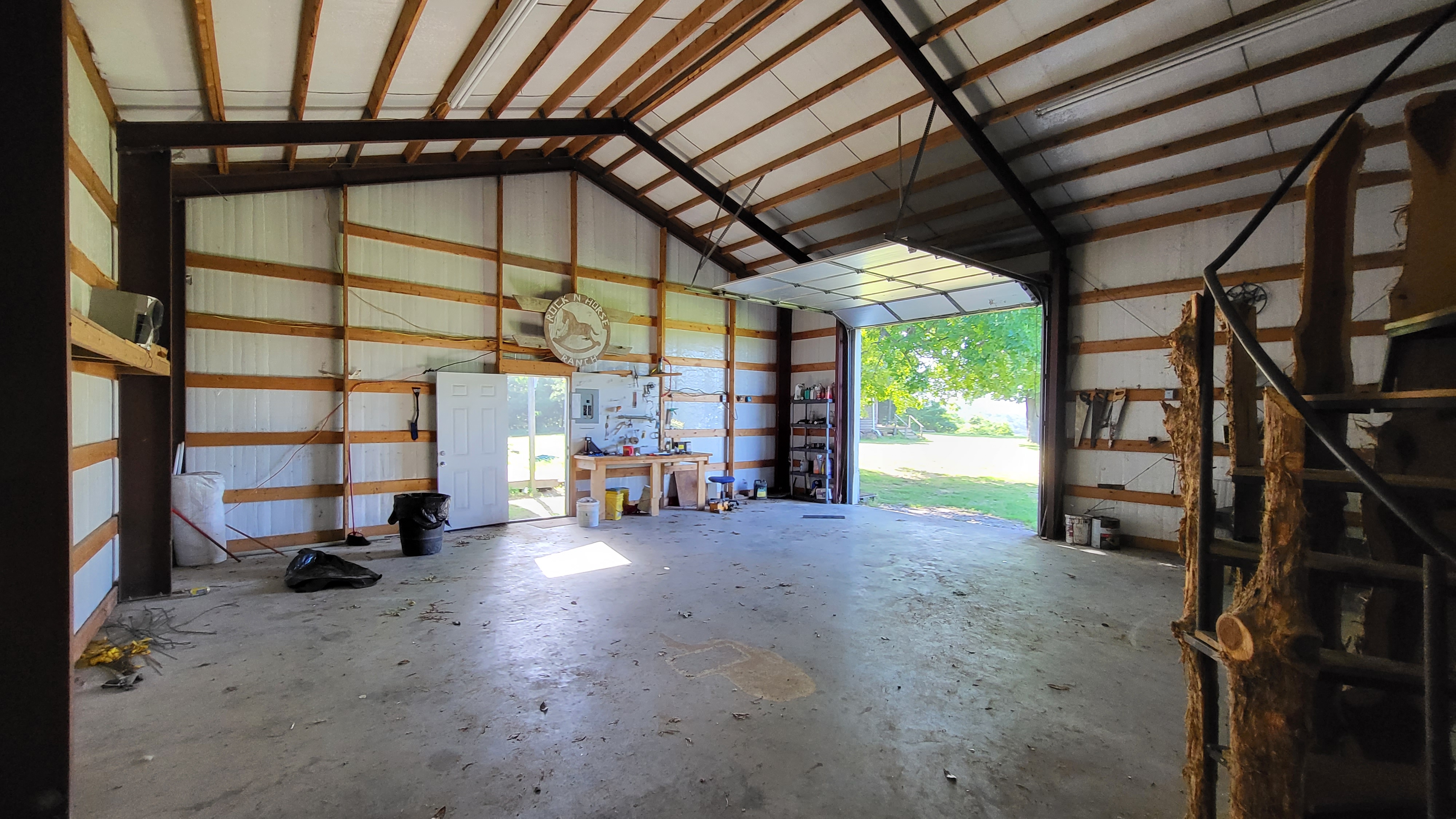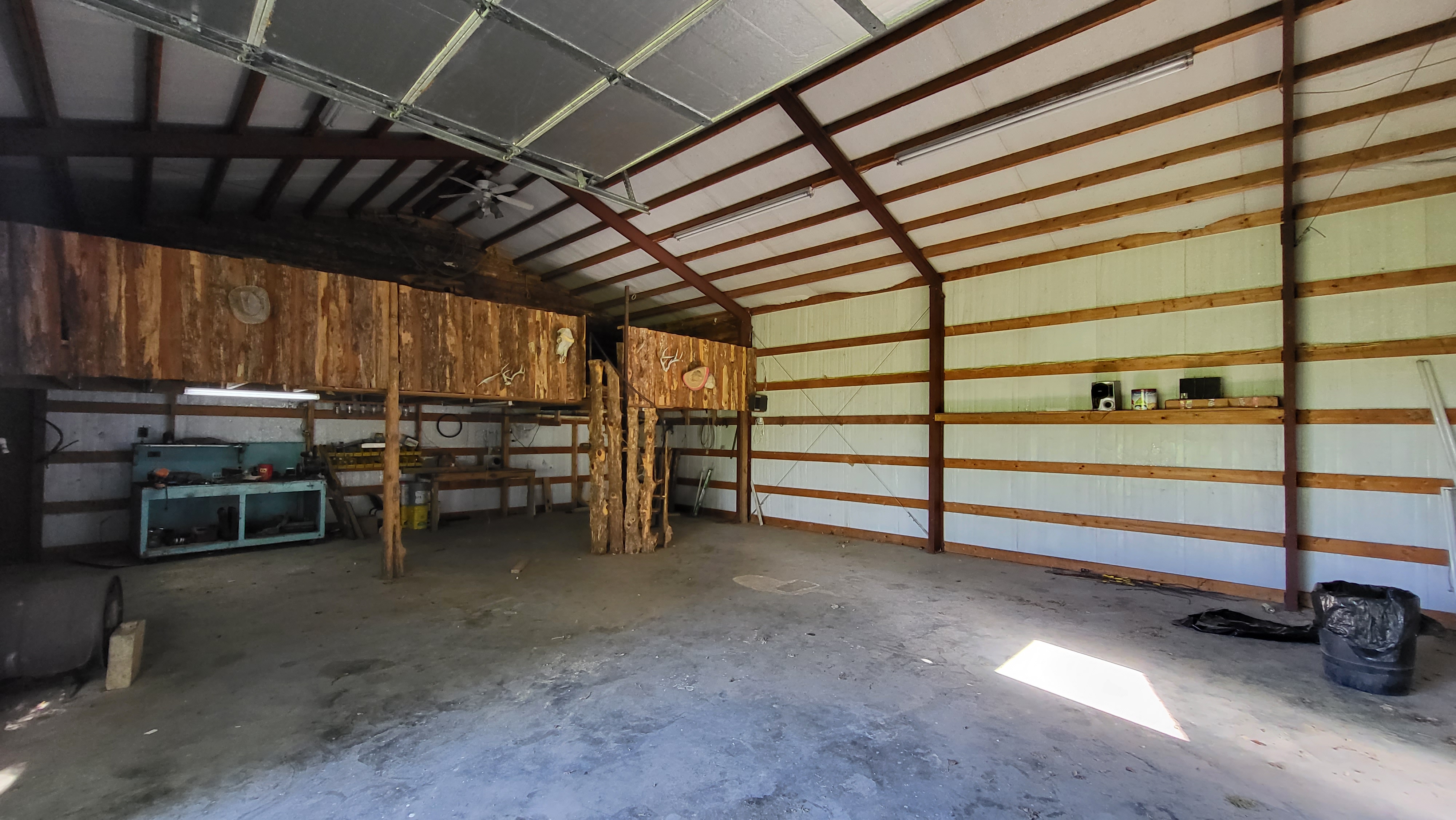 - Large metal hay storage shed