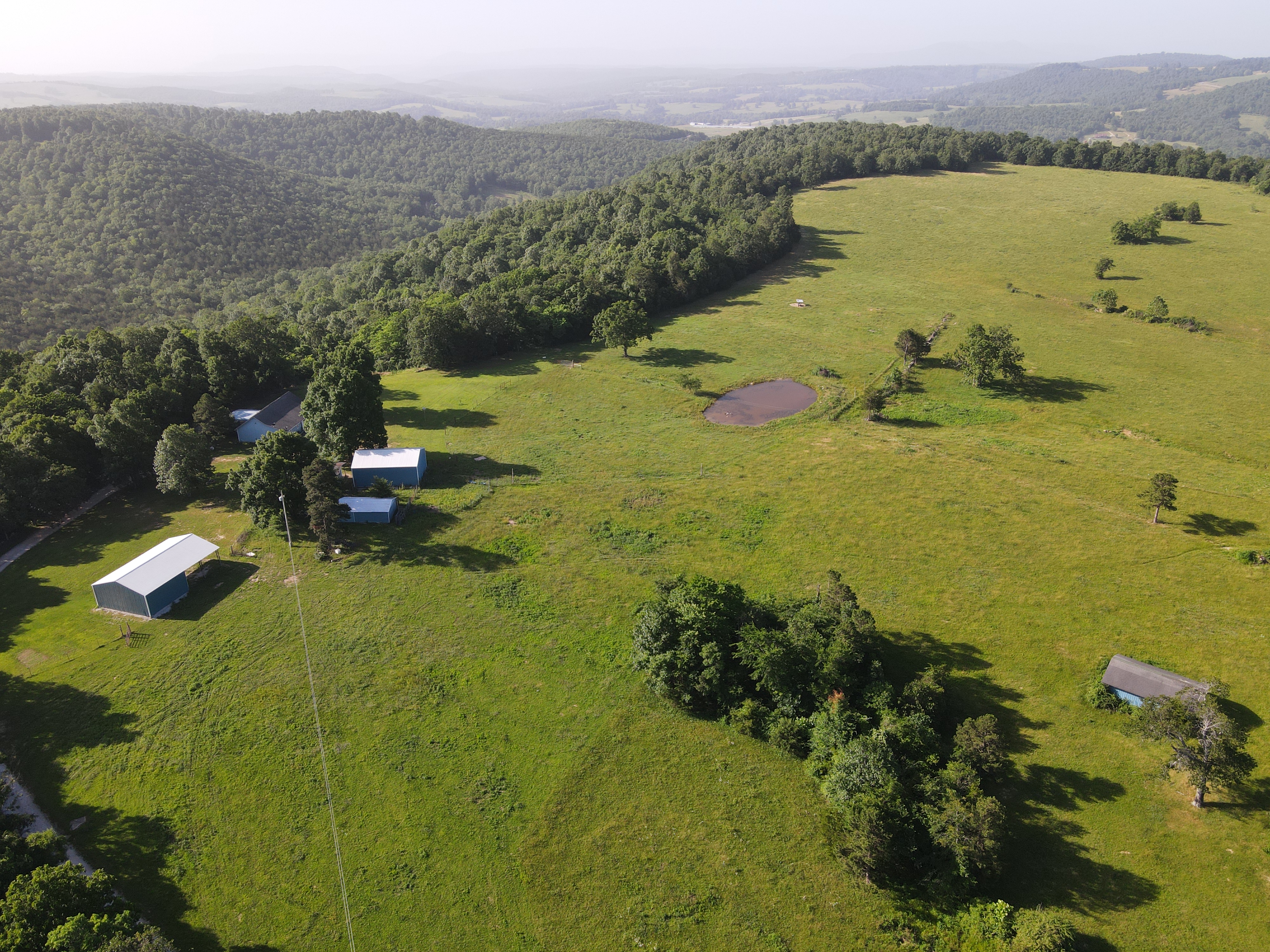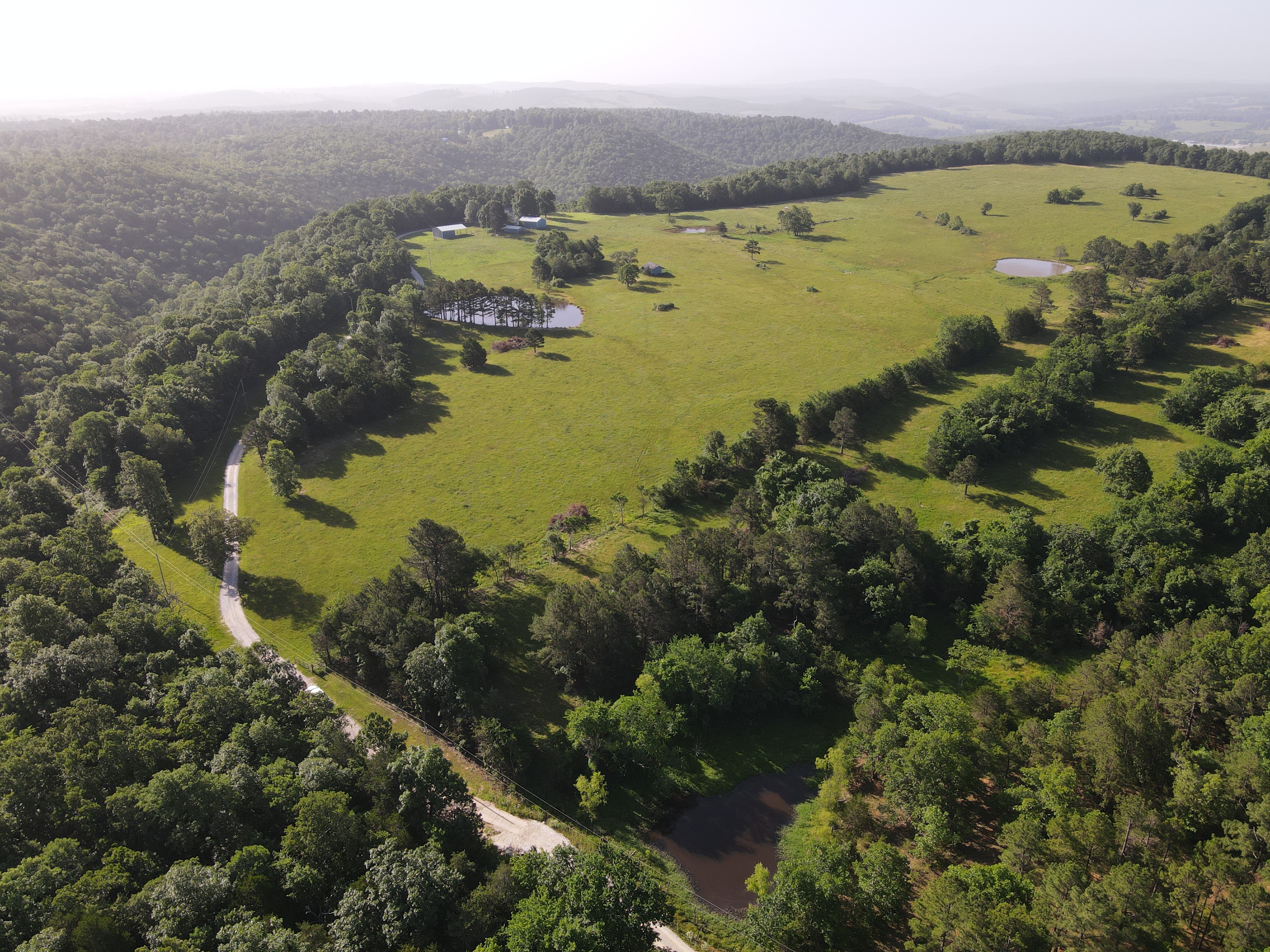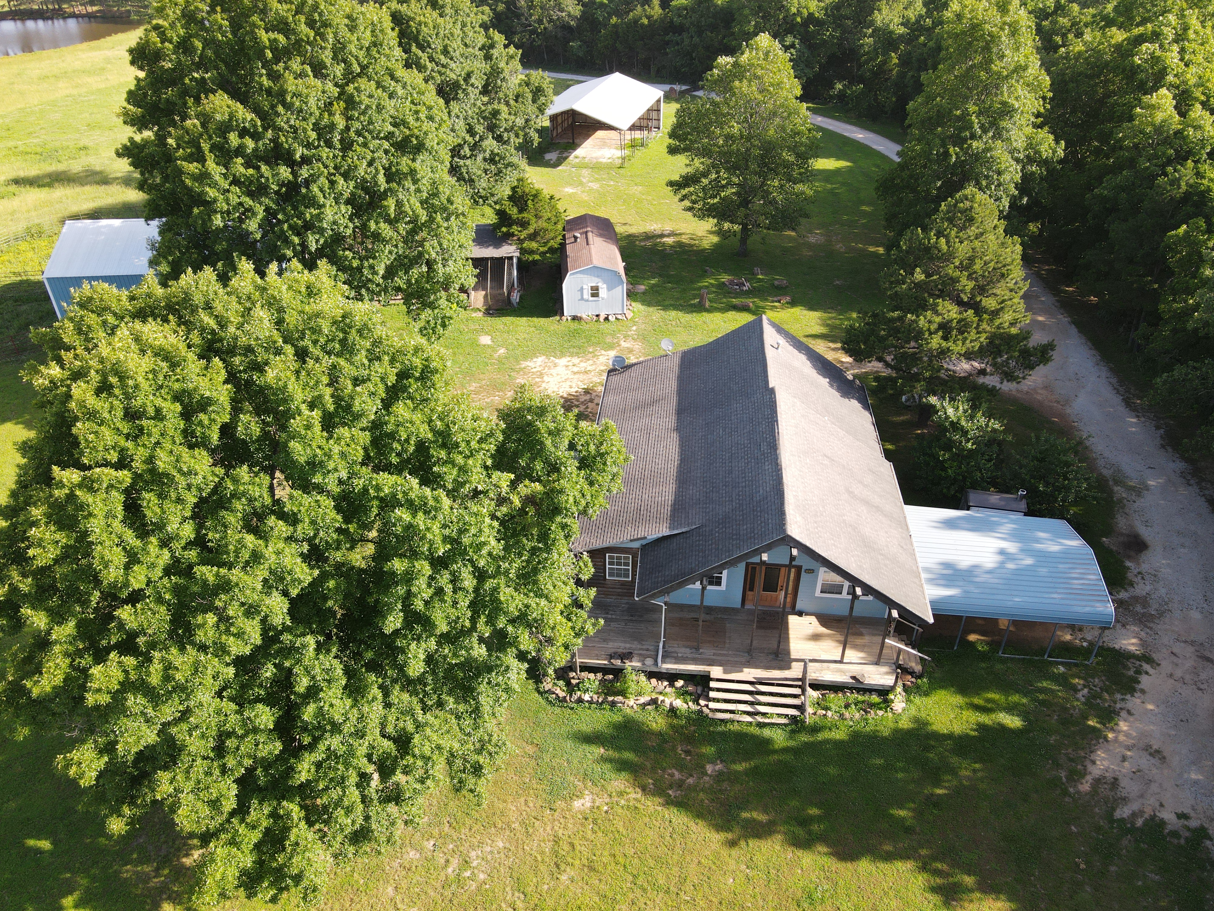 What a gem of a farm! This beautiful tract lays out wonderfully in the midst of the stunning Ozark Mountains. Located just off the beaten path, you have plenty of privacy, yet you are only minutes from the essentials you need for daily life. As you turn in off the gravel county road, you are greeted with a winding and inviting chat drive alongside several ponds and the dancing grasses of the lush pastures surrounding you. The homesite was strategically placed with the warm views of the majestic Boat Mountain to the West and breathtaking sunrises that blanket vista mountain views to the East. The quaint, warm, inviting, and charming country home is complete with a large covered front porch, a large office, solid oak wood flooring, and massive vaulted ceilings. The towering tongue and groove laced ceiling accents the open concept of the spacious living and dining area with the beautiful kitchen with a massive island looking over it all. One bedroom with access to the roomy bathroom sets off the end of the hall, and the extra-large master suite complements the opposite side. The master bedroom sports a walk-in closet, a very roomy bathroom, and a custom tiled shower with glass doors. Accenting this charming home is the farmstead that completes the tract. A small heated and cooled “bunk house,” metal outbuilding with chicken coop and storage, loafing shed with horse stalls, large hay shed, and of course, the massive red iron shop with overhead door and loft. This tract has all the storage you need, no matter your interests. Historically used as a cattle farm, the land has quality pasture with native and fescue grasses, one spring fed pond, one massive pond stocked with fish, and ½ of another pond, all providing ample water for any livestock needs you have. The topography is simply wonderful, with remarkably level ground setting atop a wooded valley below that boasts massive views. The tranquil setting, vista views, privacy, quality access, impressive infrastructure, wonderful pasture, charming country home, and a setting that dreams are made of all culminate to create one thing… HOME. This special place really leaves nothing to be desired. Call today for your private showing.