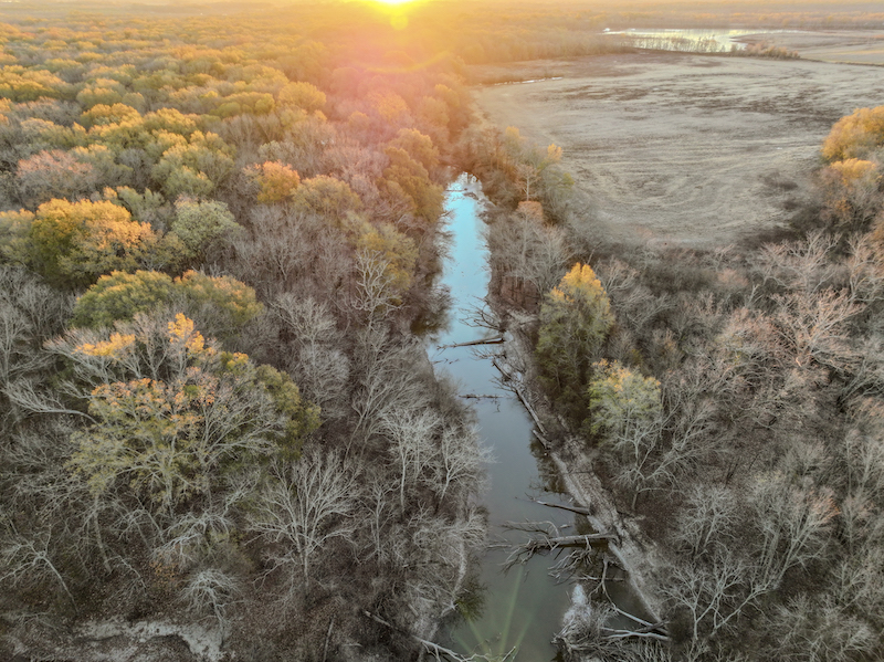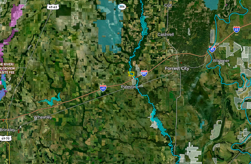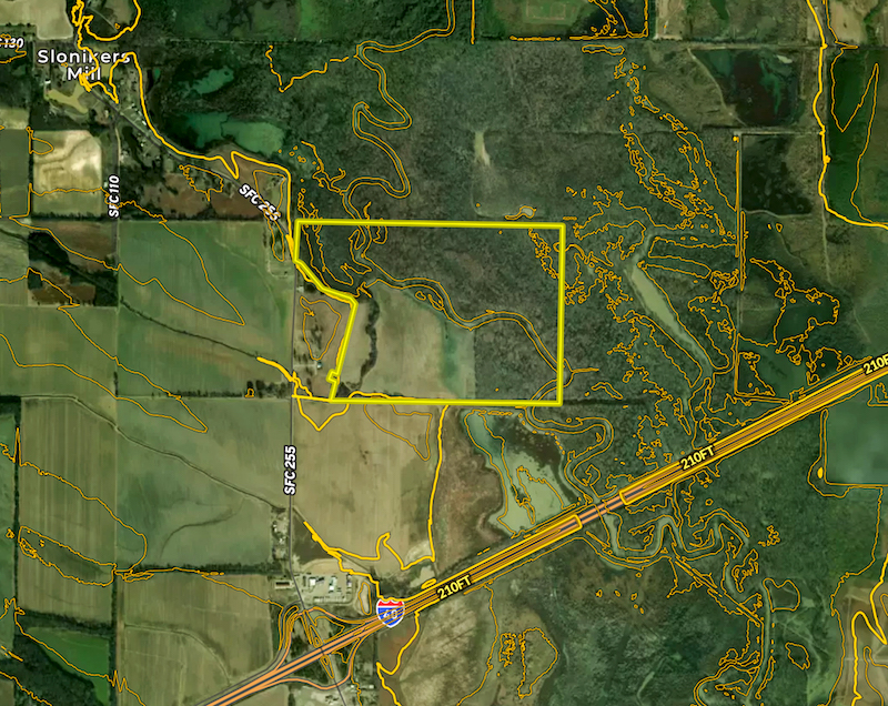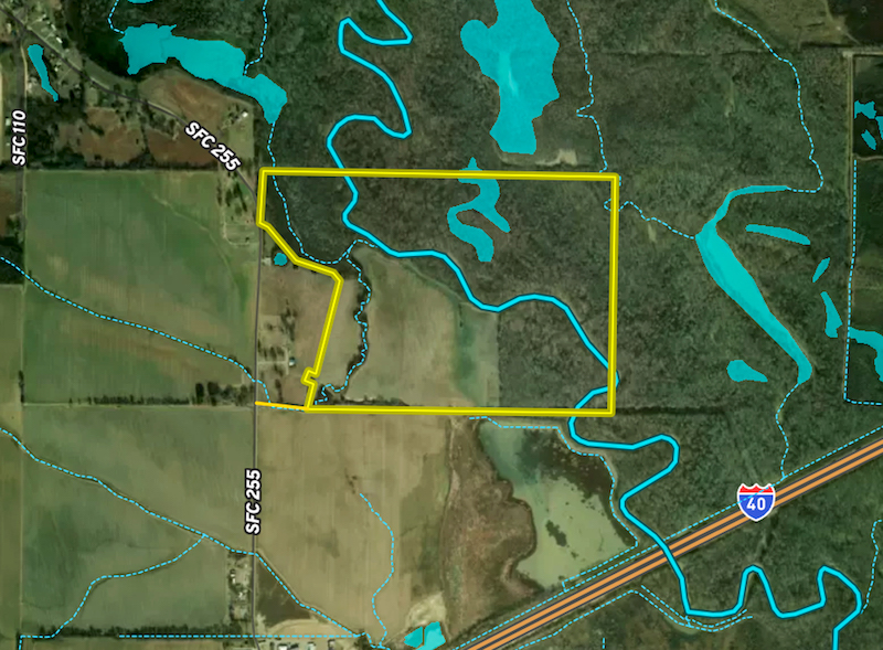 Flooding timber and habitat on the L'Anguille River. In the heart of the Mississippi Flyway, this Arkansas Delta property has approximately 5,000 feet of the L'Anguille River, providing an ideal scenario for attracting waterfowl. With +/-150 acres of mature oaks, other hardwoods and brush, that flood naturally depending on the L'Anguille River levels, this property has the foundation to build your hunting retreat. Flat contours, slow-to-drain soils, and multiple depressions provide the opportunity to incorporate water control structures throughout the property to maintain water in the timber and brush areas in dry years. ±69 AC of fields, formerly used to grow rice, are adjacent to the River and standing timber and could be flooded using the current well. SFC 255 provides access and is paved and in excellent condition. Electricity is found adjacent to the offering, and power lines have a right-of-way along its edge. This amazing habitat can become even better. Properties in conservation easements surround the area and are near public use areas. As such, it is likely a strong candidate for its own conservation easement. Moments from I-40 and Palestine, this property is convenient to Memphis, Little Rock and the rest of the world. Act today, habitats like this are in short supply! Acreage amounts are estimates. All opinions above are subject to regulatory approval. Please consult an expert. The property has direct access to SFC 255 but will also be the beneficiary of an easement over retained land.