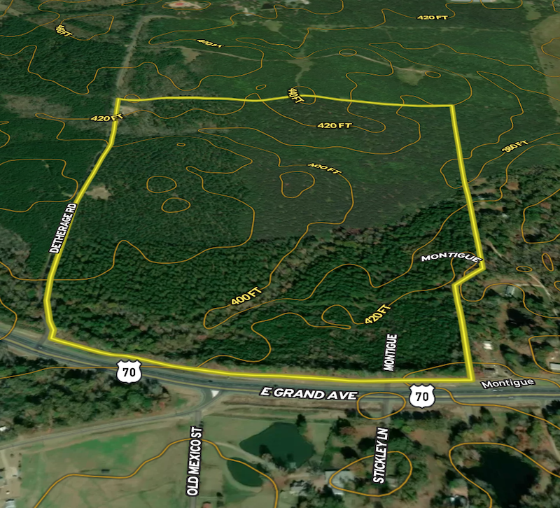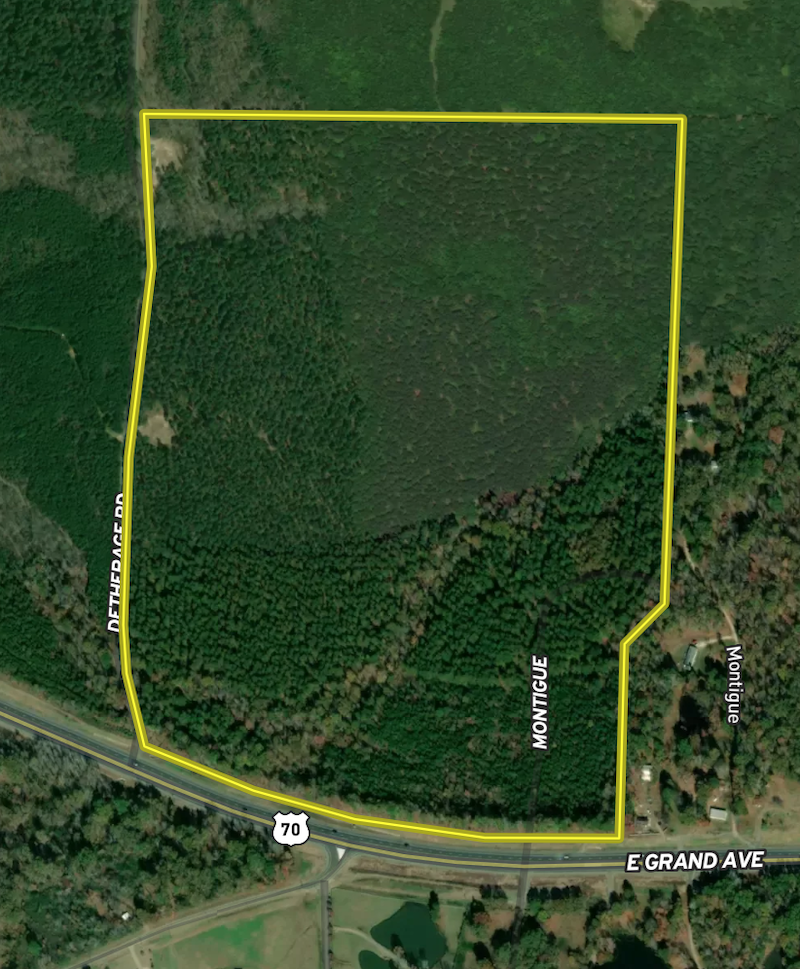 Rolling terrain with a 3-year-old pine plantation and a seasonal creek flowing across the property. There is nearly 1/2 mile of HWY 70 frontage and 1/2 mile of county road frontage the property could easily be divided into smaller tracts. The property is currently used for hunting and recreation with several trails that provide access. Utilities nearby and Minerals Convey. More land is available on the west side of Detherage.