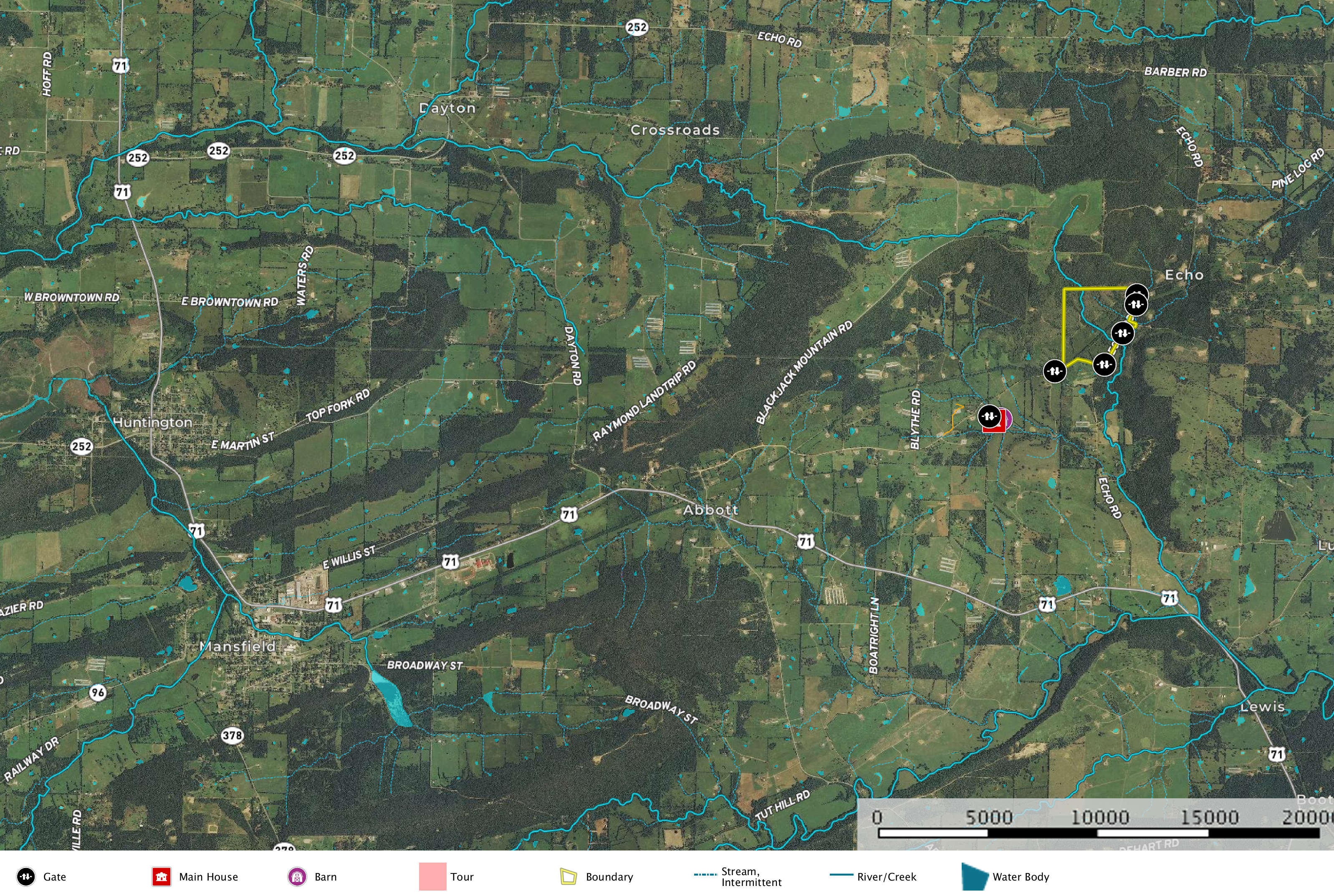 Big Game, Waterfowl, Upland Game, Fish, Small Game, Livestock Facilities, Trail Network, Internal Road System, Gated Entrance