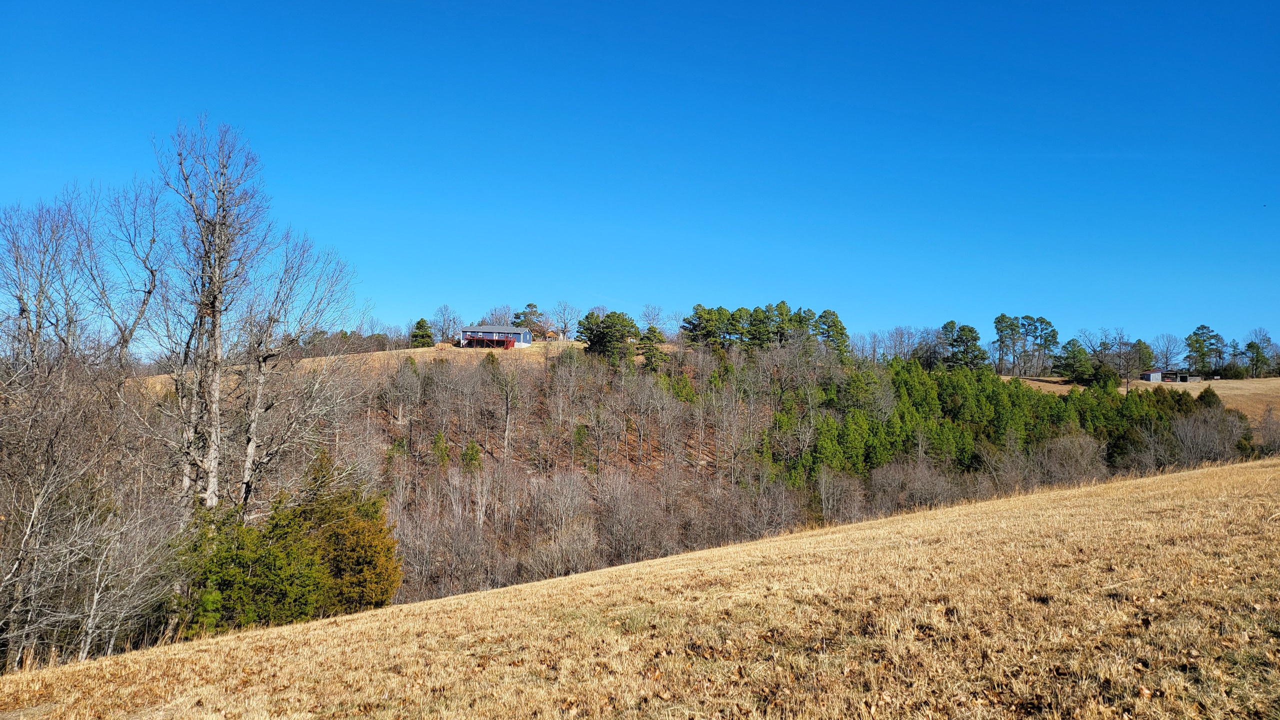 This beautifully constructed spacious home sets atop a hill overlooking some amazing scenery just minutes from Marshall, AR. The property is fully fenced and has phenomenal access off the county road. Located less than ½ mile off a paved county highway, this rolling acreage embraces all the essence of the Ozarks with stunning views, wonderful topography, with potential to farm and even hunt on your own land! Pulling into the drive you can’t miss the quaint and charming home with a large covered front porch. This home is a split floor plan with a large living room, amazing cherry hardwood floors, spacious dining room, and custom kitchen. The fresh and modern colors are bright and possess a welcome feeling as you navigate the custom touches of the kitchen; double ovens and microwaves set amongst the beautiful butcher block counters, massive farm sink, and custom island. The space is both roomy and very efficient. Full laundry and pantry add comfort and functionality. The master suite is open and private with a huge master bathroom and a 36’ sq ft tile shower with 2 separate shower heads and a rain shower. The other end of the home has plenty of room for the kids or guests with a full bath and 3 more bedrooms with large closets. The star of the show is the massive 20’X40’ back deck with a view for the ages. This large deck is overlooking the gorgeous acreage of mixed pasture, rolling hills, wooded valleys, and vista views of the Ozark Mountains. The home is complete with a large custom crawl space with a concrete floor, lighting, extra storage, and 2 hot water tanks. The home is being sold as mostly furnished as well. As you meander over the beautiful farm you pass by the old oak barn with a large parking bay and 2 separate storage areas for tractors, hay, hunting equipment, lawnmowers, or any other storage needs. One pond sets close to the barn as well. The large ridge tops are stunning with established pasture and views. Hay is currently being cut off a portion of the pasture and the property is fully fenced and would be ideal for livestock. Numerous draws and pinch points, along with a food plot in a lush 2-acre bottom, all create some amazing hunting opportunities. The recreational options around you are endless with the Buffalo National River, Loafers Glory Wildlife Management Area, and Ozark National Forest all just a few short miles away. Numerous public access points on the famous Buffalo National River are at your fingertips and offer camping, hiking, canoeing, and kayaking. This property is a rare combination of comfortable living, great access, nearby amenities, hunting and farming opportunities, and excellent recreational fun just minutes away. What a find, call today for your private showing!