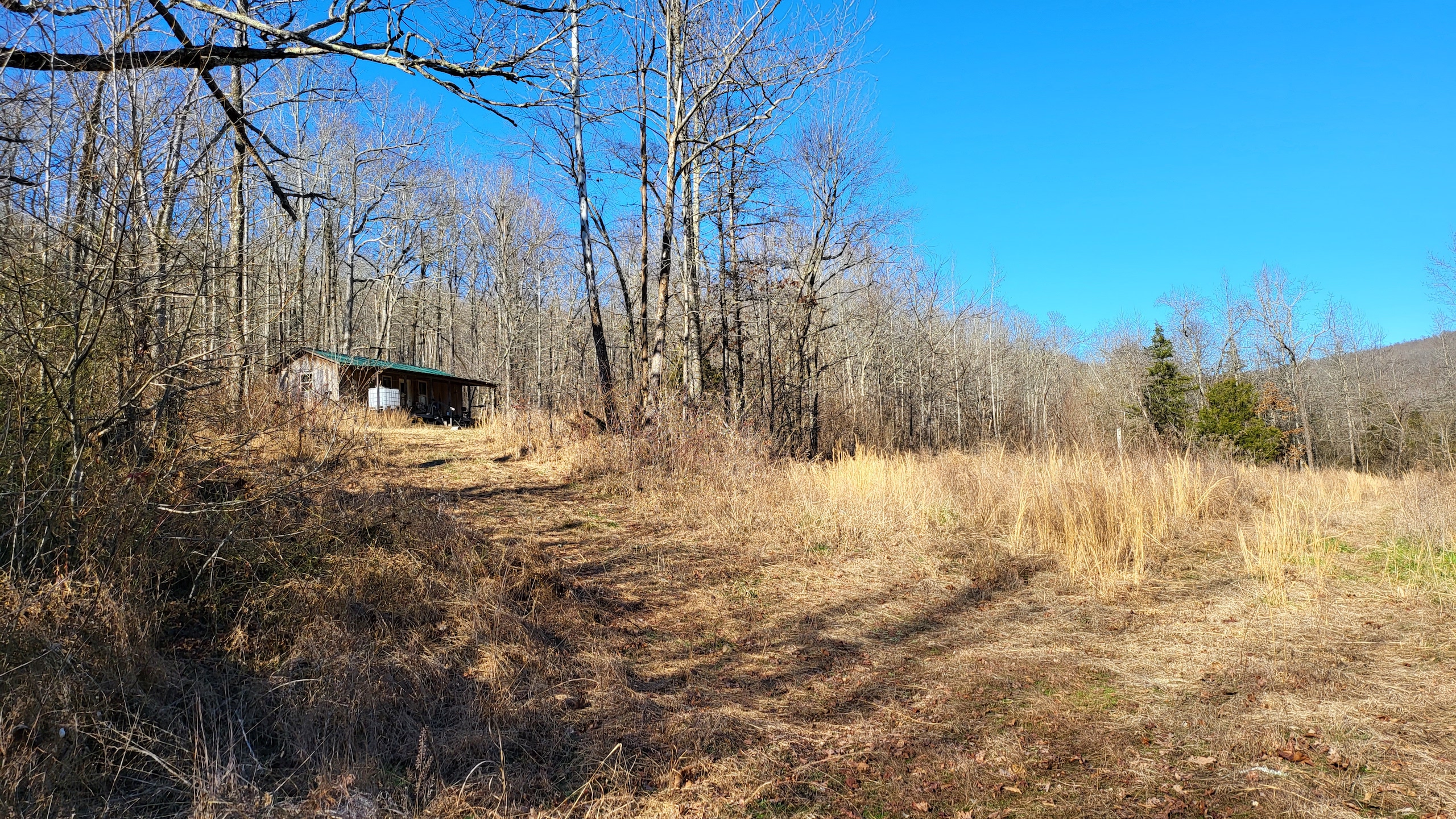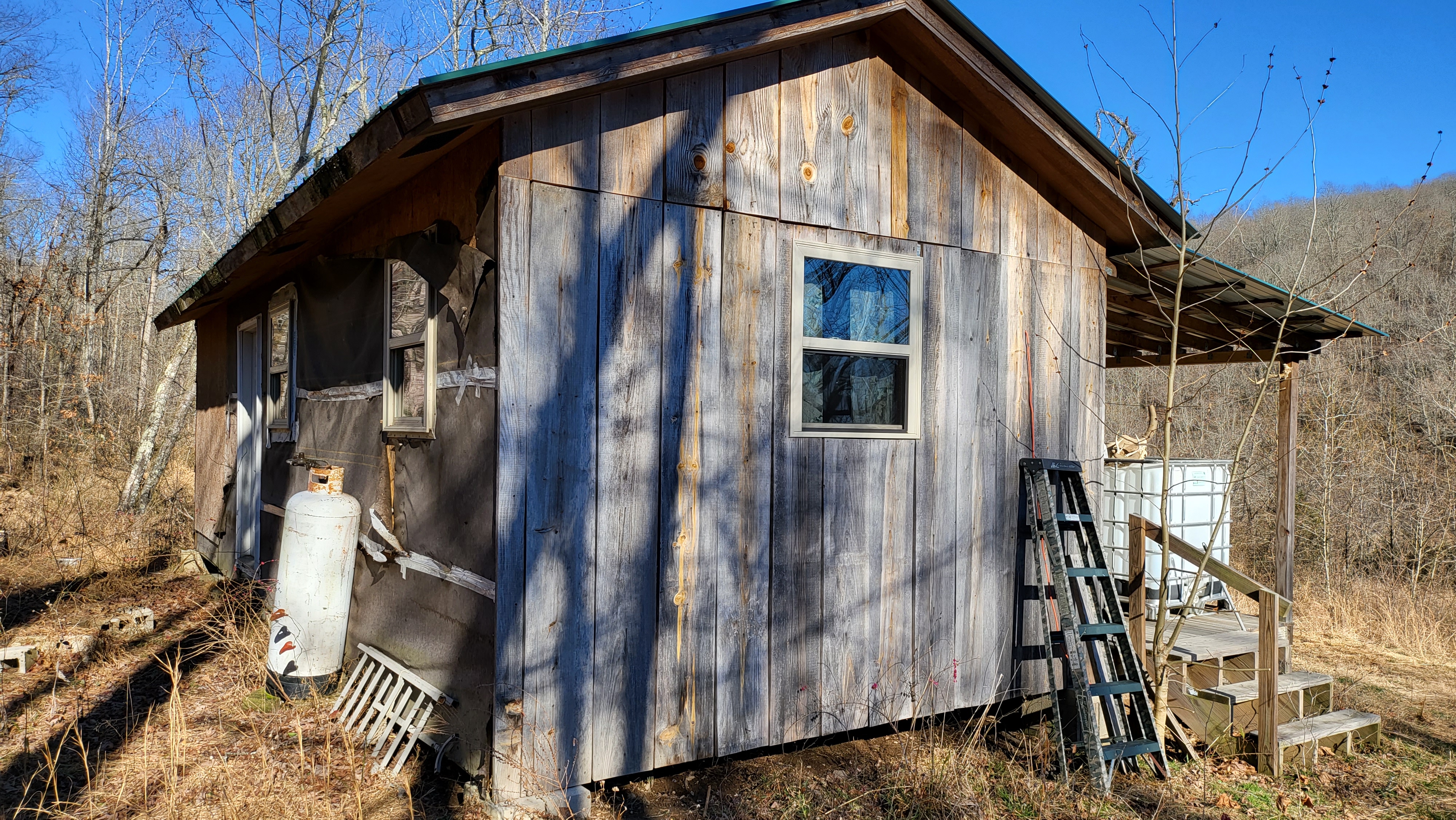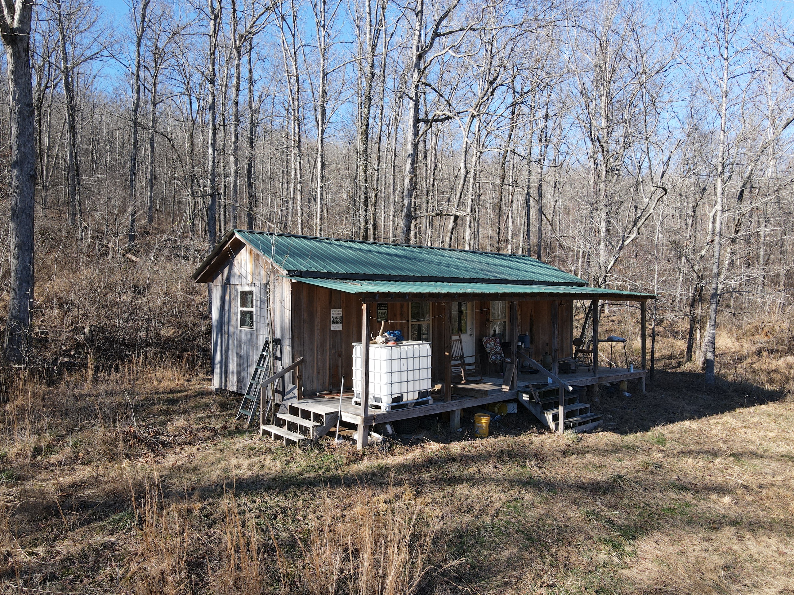 - 12’X32’ off-grid cabin with metal roof and wired for generator