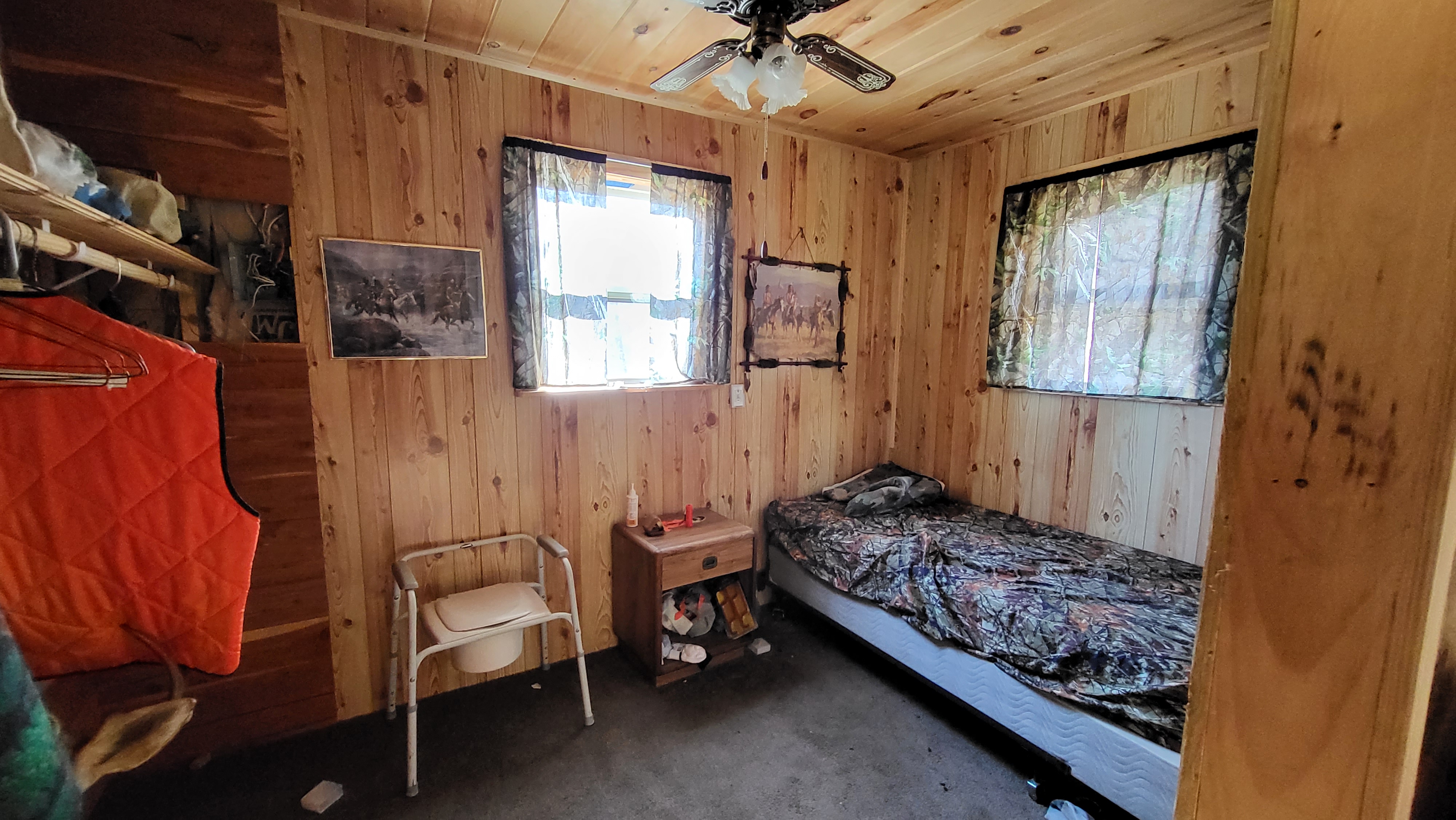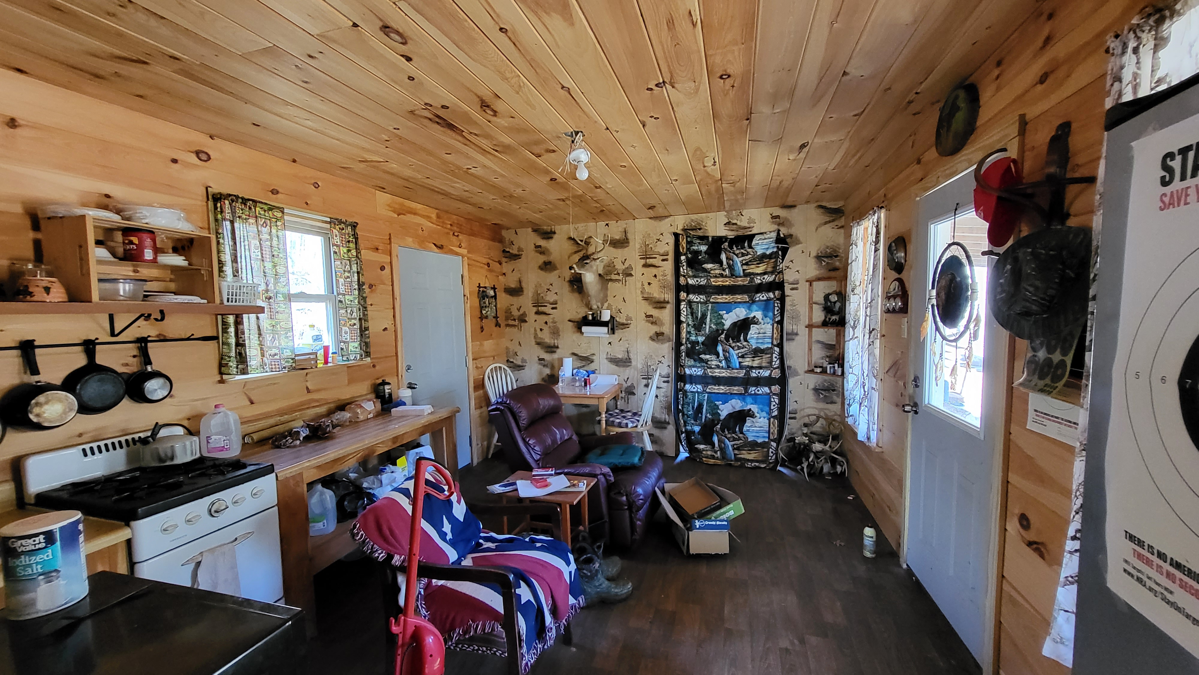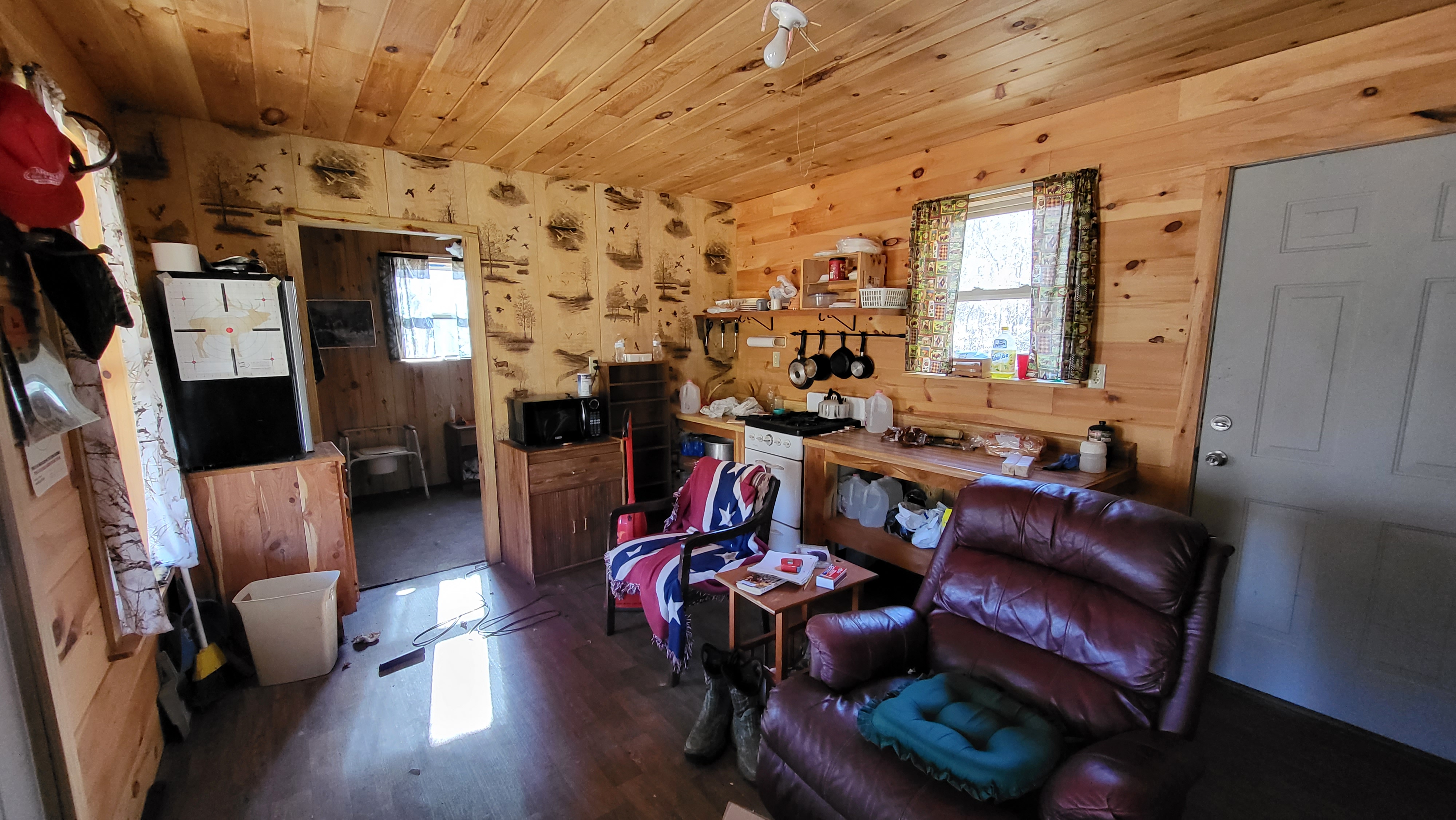 - 12’X32’ off-grid cabin with metal roof and wired for generator