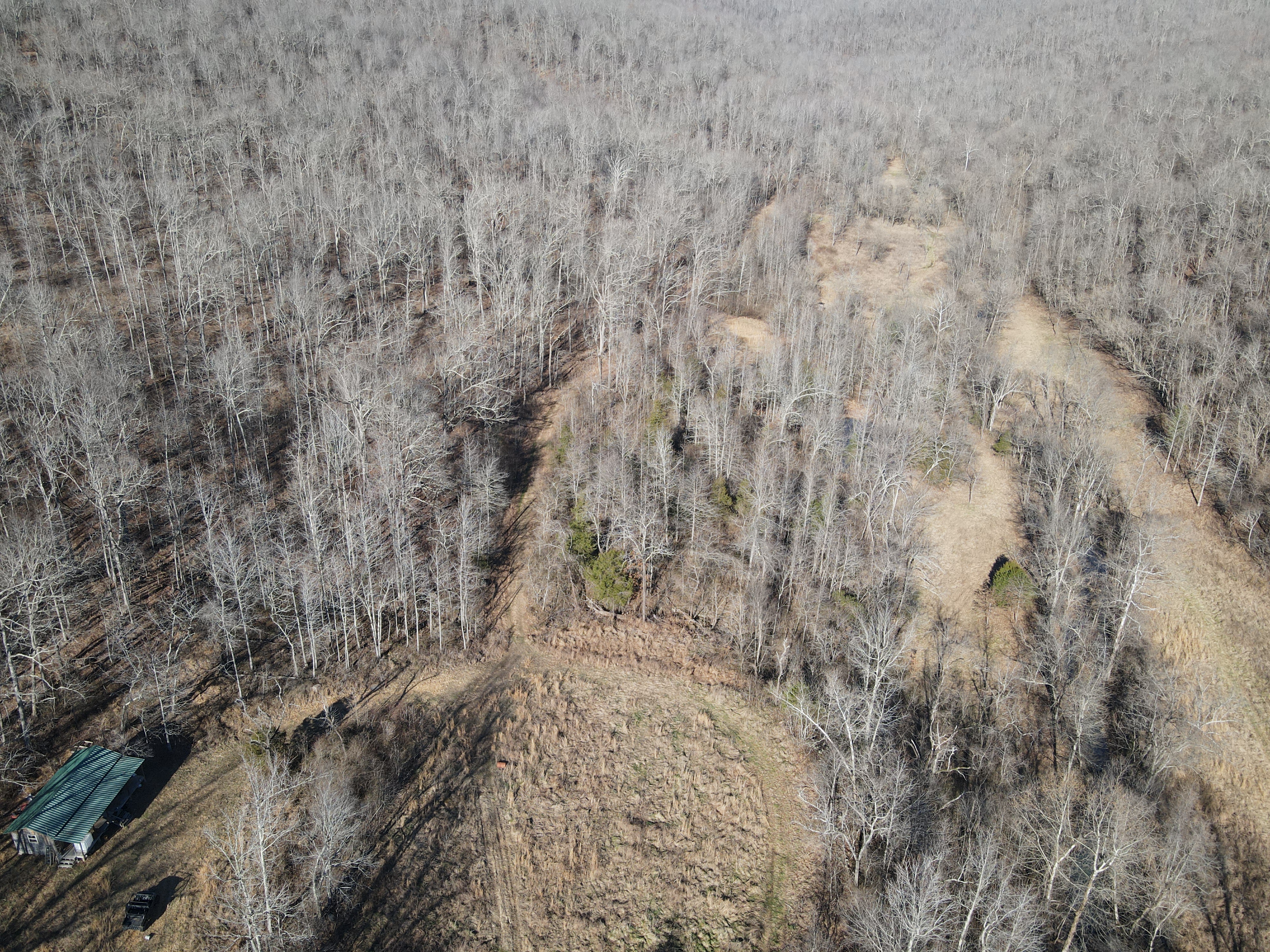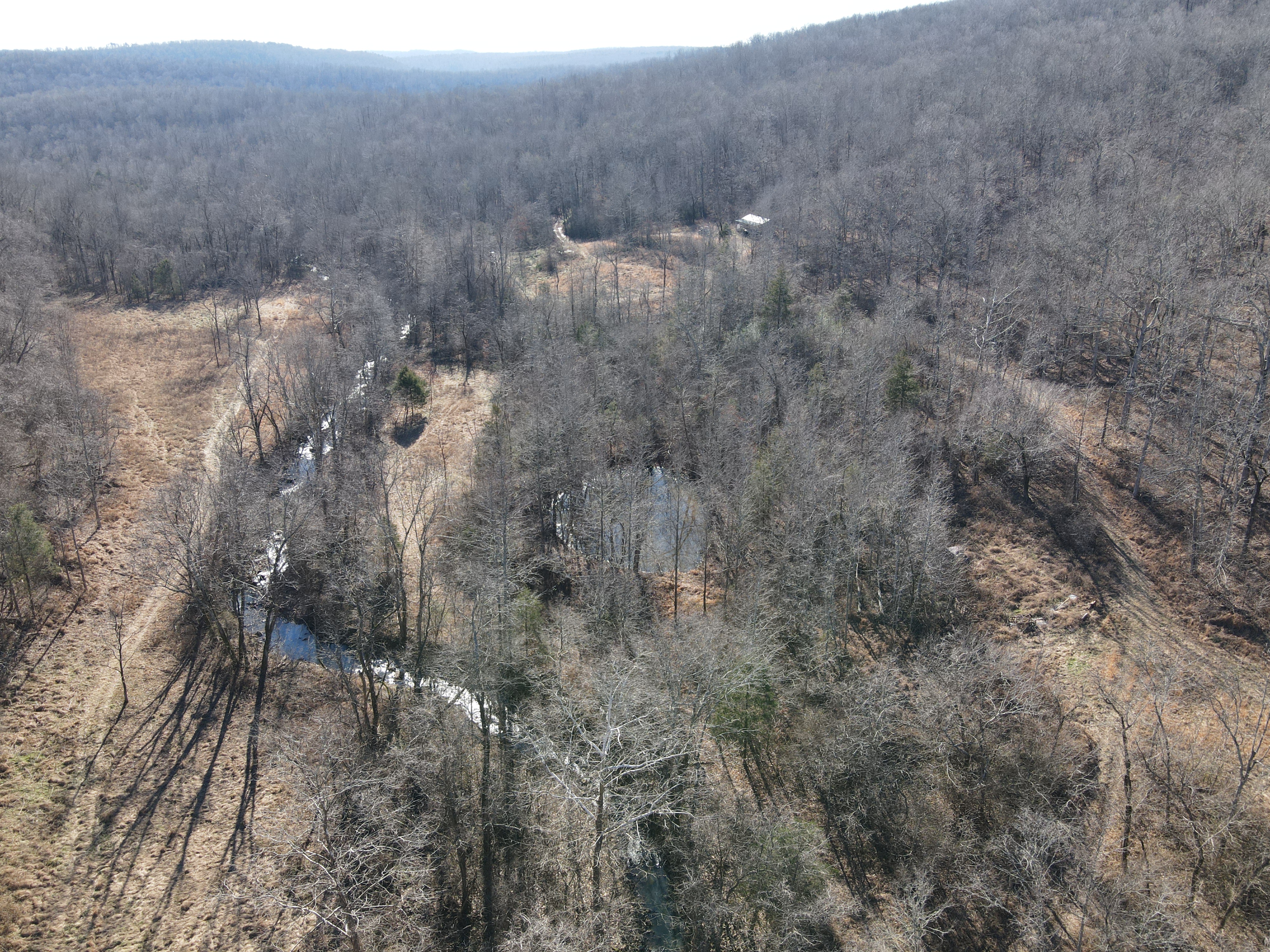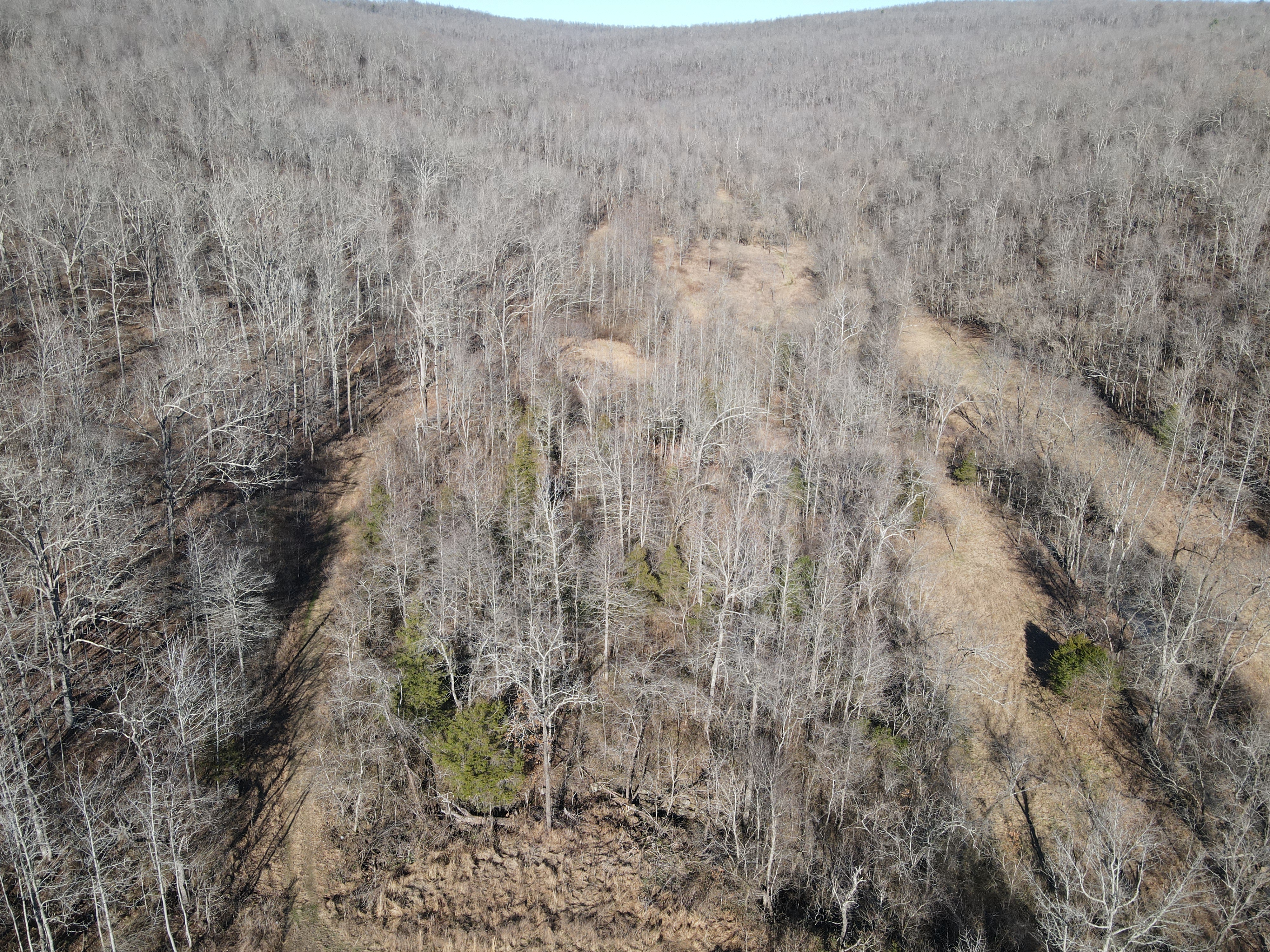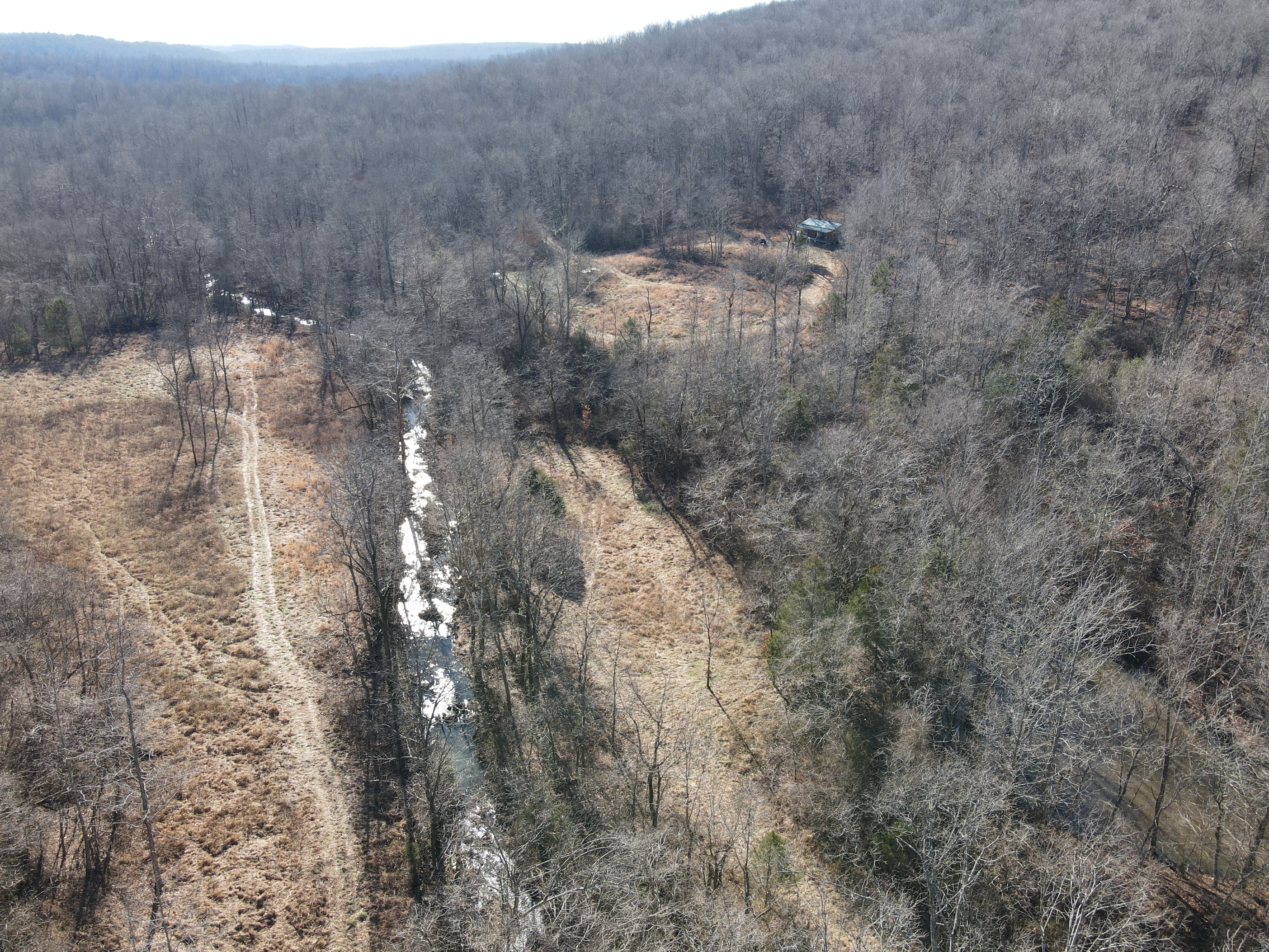 This rare find is full of the essence of the Ozarks with ample opportunities for the survivalist, hunter, or nature lover. This property has been managed as a hunting tract for almost a decade and is loaded with whitetail deer, black bear, wild hog, turkey, and all sorts of small game. With rolling hills and lush bottoms, this combination has set up the ideal hunting tract with a mix of large timbered benches, funnels, pinch points, saddles, and creek bottoms with food plots. The trail system was cut in several years ago and is navigable by ATV, UTV, or tractor. (A Mahindra 4110 tractor all the implements needed to maintain the place are available for separate purchase if desired.) The base for the trail system is excellent and aids in navigating all over the acreage gaining you access to high ridges above, the rolling slopes of massive white oak timber, and the fertile creek bottoms below. Approximately 7-8 acres of food plots have been established and just need a little TLC to get them back into shape. Pear, apple, and other fruit trees have been planted along several of the food plots, providing even additional food. Four custom-built 6’X6’ elevated box blinds are in place and ready for your next hunt overlooking several thickets and existing plots. Large oak-covered flats flow through the property creating dozens of usable hunting areas for guns or bows. A large spring-fed pond sets just above the plots and provides ample water for when the stunning wet weather creek does go dry in the summer months. Strategically located near the entrance gate of the land is the 12’X32’ site-built off-grid cabin with a large covered front porch. This gem is insulated, wired with lights, has a small kitchenette, 2 bedrooms, and overlooks the heart of the property. It is set up for a generator and is plumbed for propane. Setting on the porch overlooking the private oasis gives you a sense of stepping back in time and getting away from the world. This is truly a hunter dream or the perfect get-away. The one thing in real estate you can’t duplicate is location, and this place is ideal with an immense amount of privacy with timber tracts, mountains, bluffs, and hills all surrounding the land. Don’t wait to see this one, call today.
