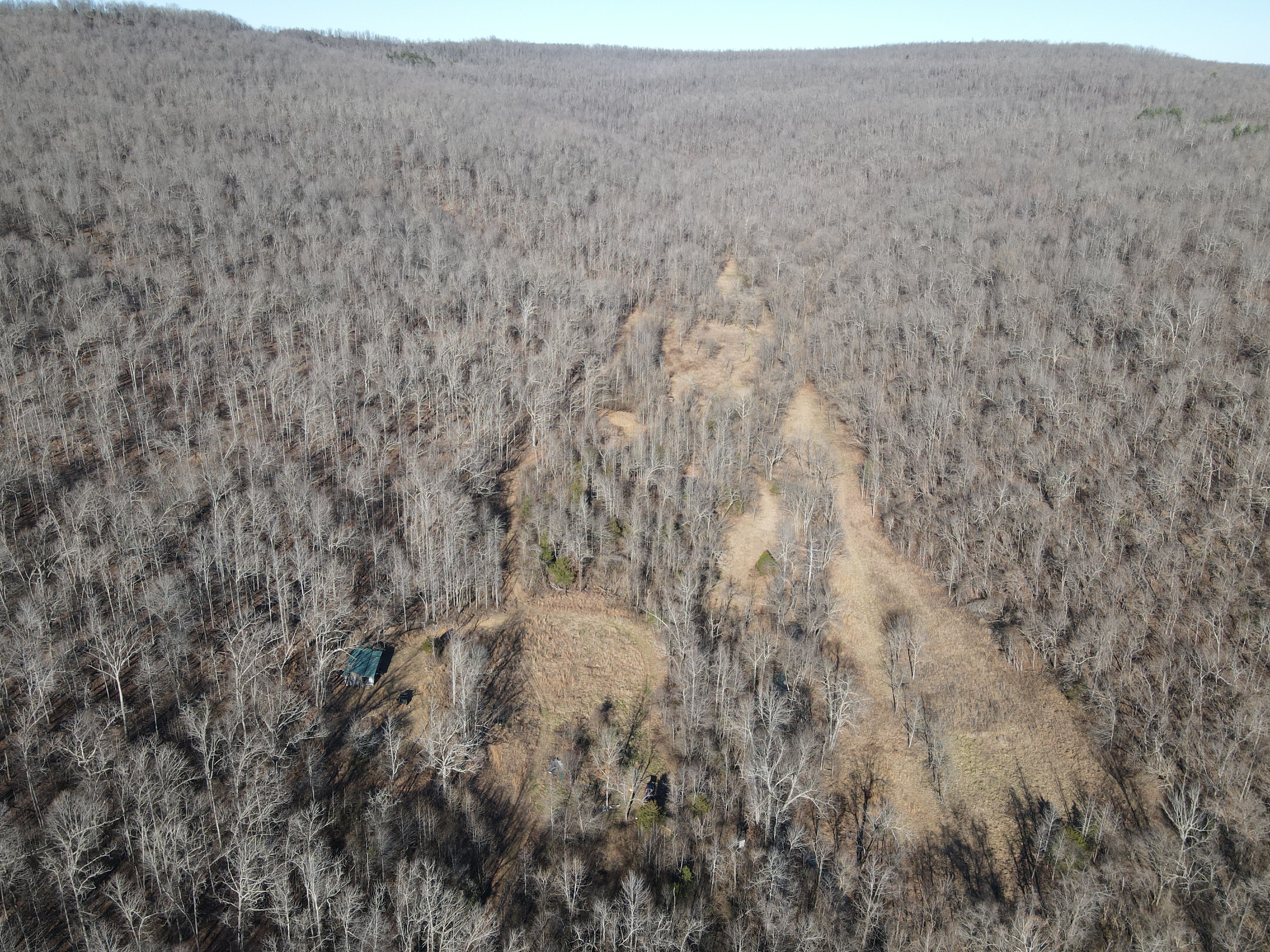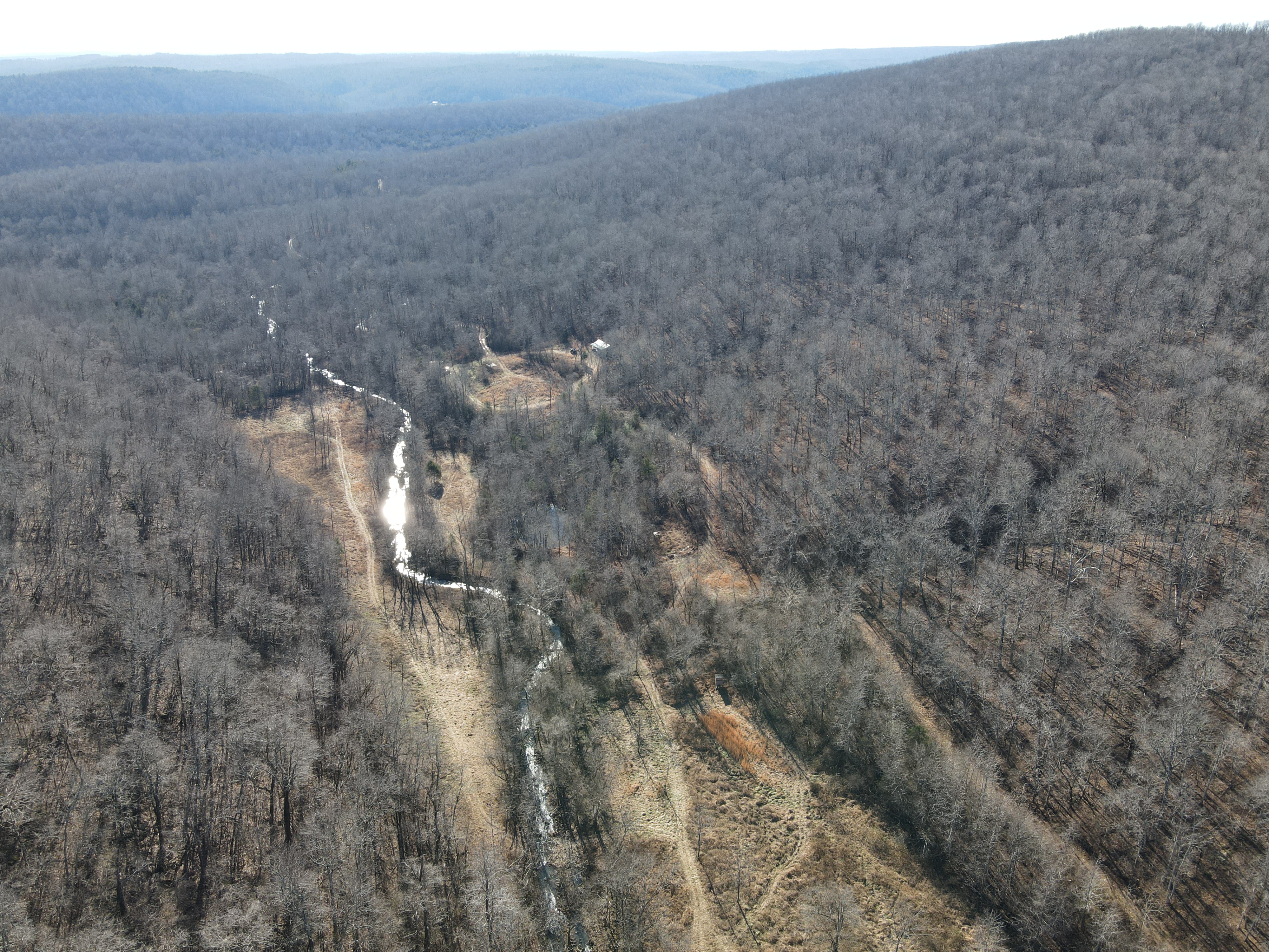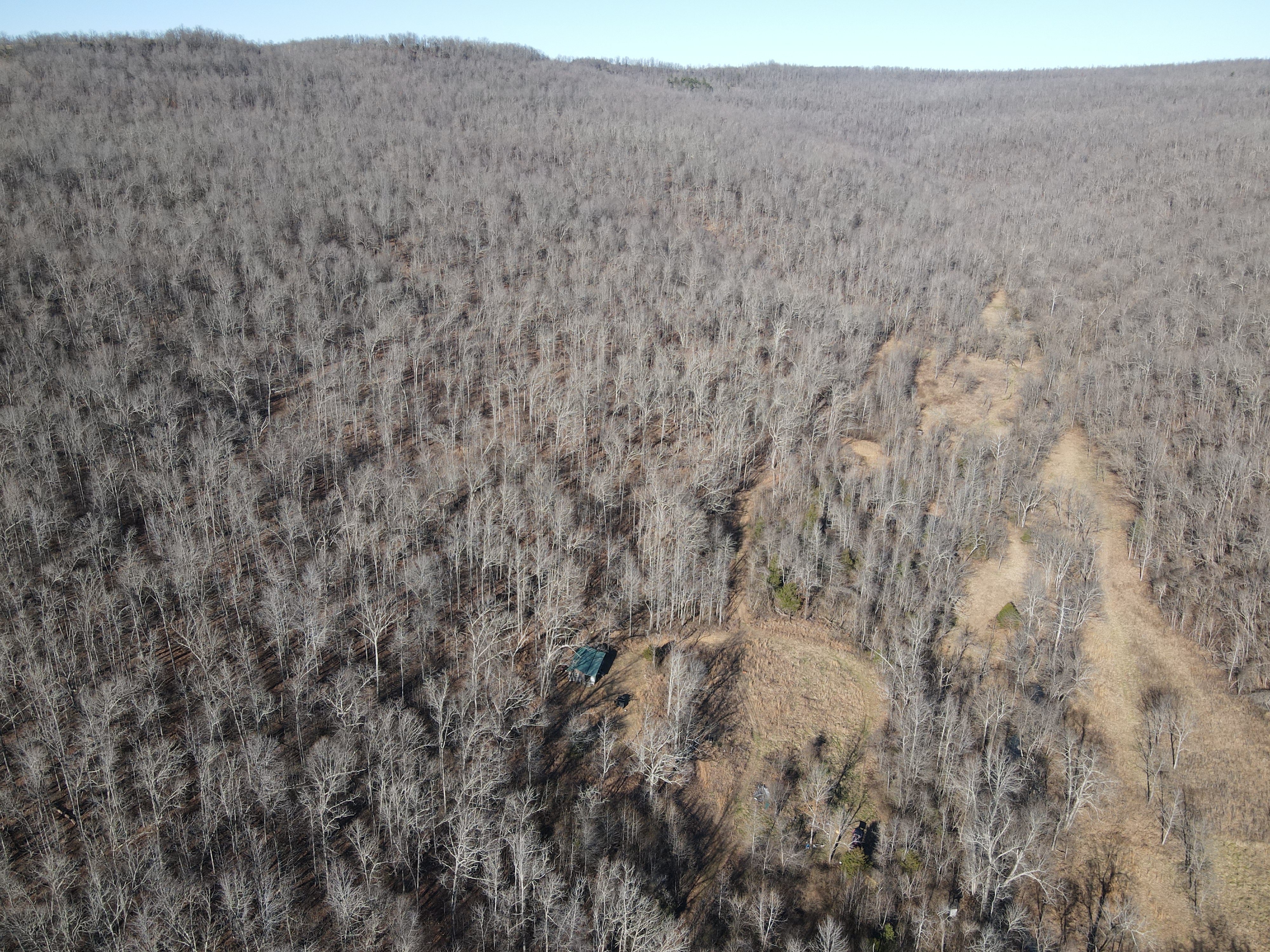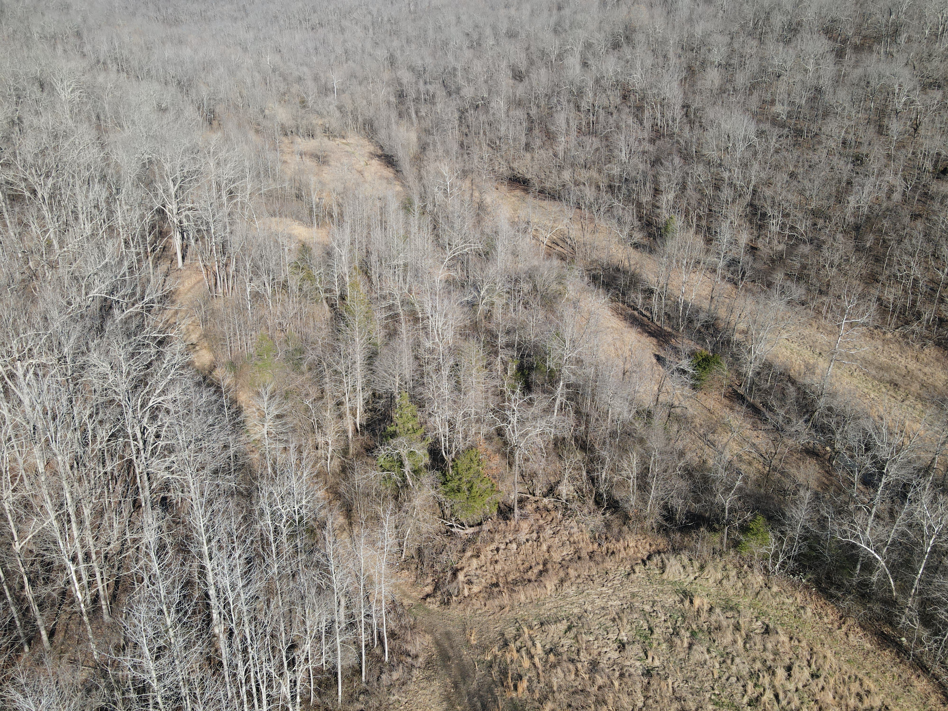 This rare find is full of the essence of the Ozarks with ample opportunities for the survivalist, hunter, or nature lover. This property has been managed as a hunting tract for almost a decade and is loaded with whitetail deer, black bear, wild hog, turkey, and all sorts of small game. With rolling hills and lush bottoms, this combination has set up the ideal hunting tract with a mix of large timbered benches, funnels, pinch points, saddles, and creek bottoms with food plots. The trail system was cut in several years ago and is navigable by ATV, UTV, or tractor. (A Mahindra 4110 tractor all the implements needed to maintain the place are available for separate purchase if desired.) The base for the trail system is excellent and aids in navigating all over the acreage gaining you access to high ridges above, the rolling slopes of massive white oak timber, and the fertile creek bottoms below. Approximately 7-8 acres of food plots have been established and just need a little TLC to get them back into shape. Pear, apple, and other fruit trees have been planted along several of the food plots, providing even additional food. Four custom-built 6’X6’ elevated box blinds are in place and ready for your next hunt overlooking several thickets and existing plots. Large oak-covered flats flow through the property creating dozens of usable hunting areas for guns or bows. A large spring-fed pond sets just above the plots and provides ample water for when the stunning wet weather creek does go dry in the summer months. Strategically located near the entrance gate of the land is the 12’X32’ site-built off-grid cabin with a large covered front porch. This gem is insulated, wired with lights, has a small kitchenette, 2 bedrooms, and overlooks the heart of the property. It is set up for a generator and is plumbed for propane. Setting on the porch overlooking the private oasis gives you a sense of stepping back in time and getting away from the world. This is truly a hunter dream or the perfect get-away. The one thing in real estate you can’t duplicate is location, and this place is ideal with an immense amount of privacy with timber tracts, mountains, bluffs, and hills all surrounding the land. Don’t wait to see this one, call today.
