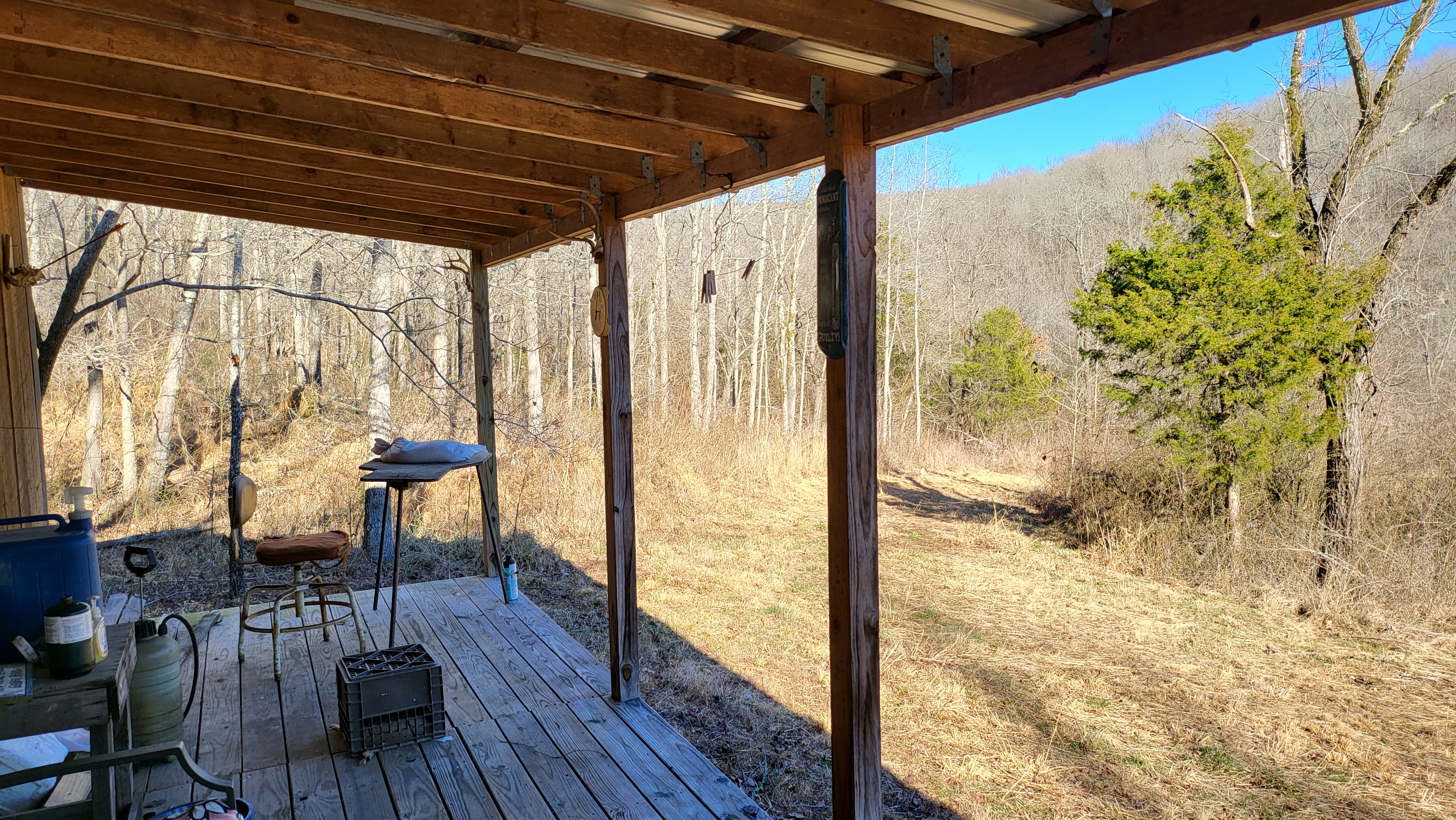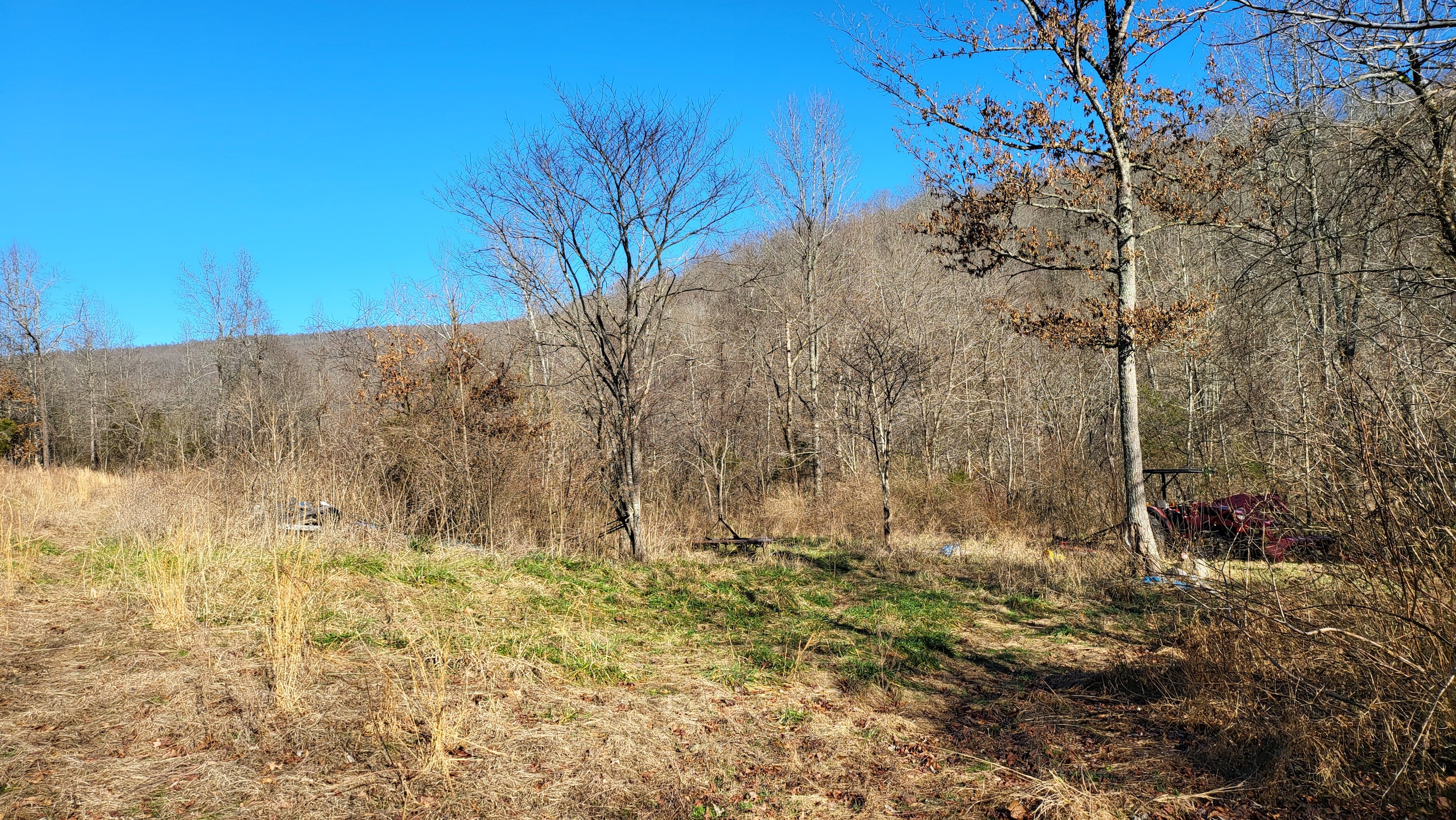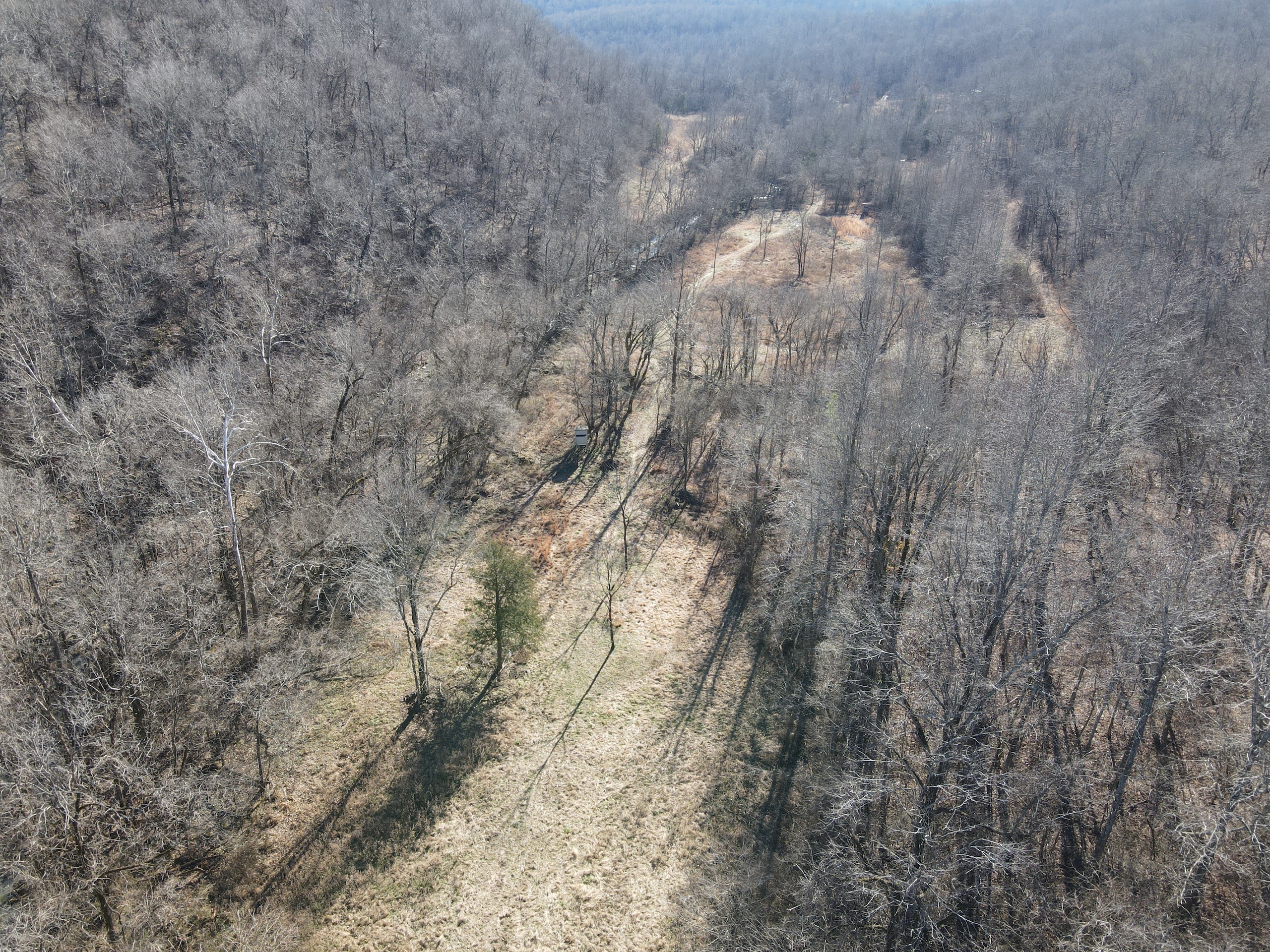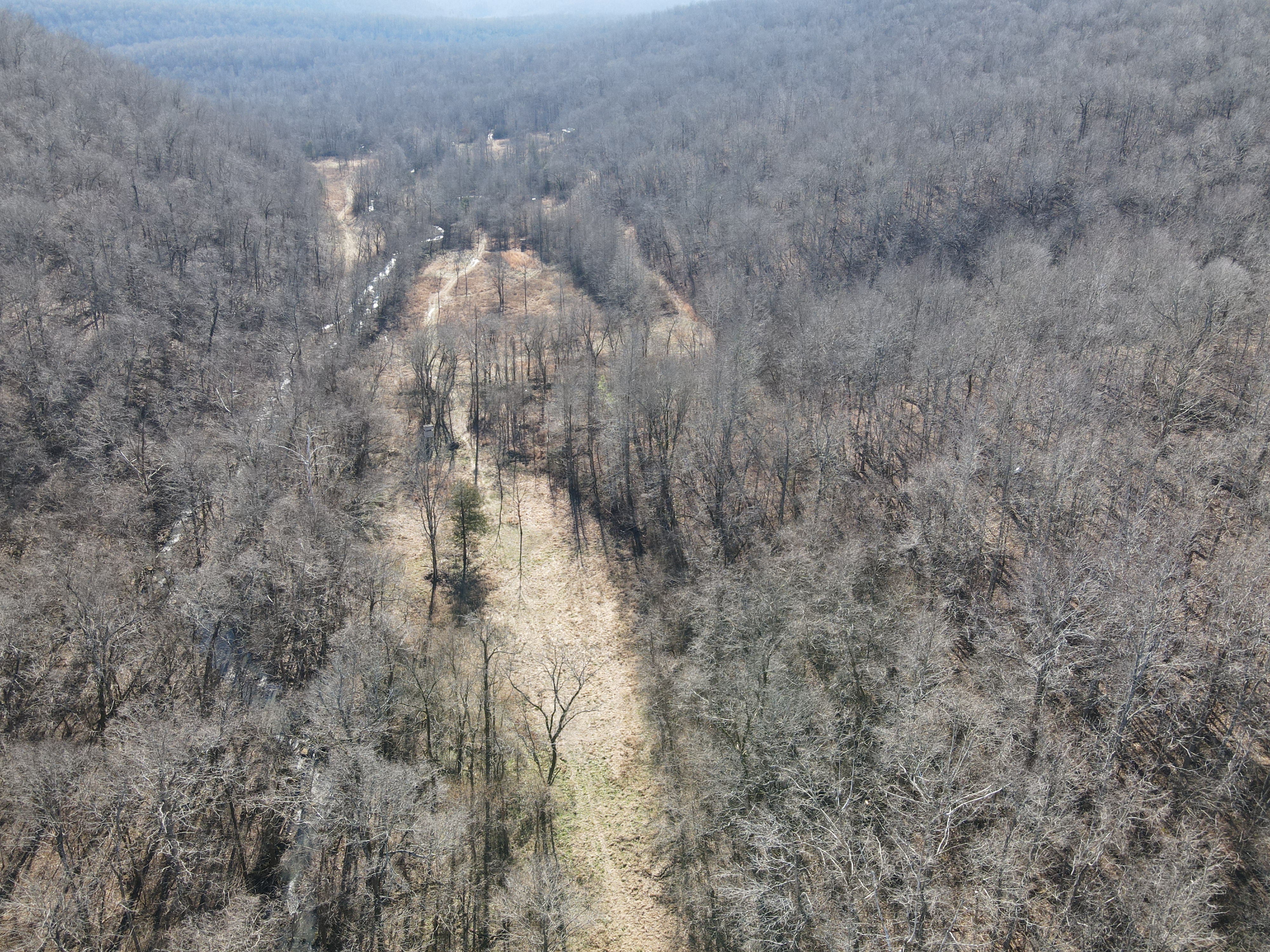 This rare find is full of the essence of the Ozarks with ample opportunities for the survivalist, hunter, or nature lover. This property has been managed as a hunting tract for almost a decade and is loaded with whitetail deer, black bear, wild hog, turkey, and all sorts of small game. With rolling hills and lush bottoms, this combination has set up the ideal hunting tract with a mix of large timbered benches, funnels, pinch points, saddles, and creek bottoms with food plots. The trail system was cut in several years ago and is navigable by ATV, UTV, or tractor. (A Mahindra 4110 tractor all the implements needed to maintain the place are available for separate purchase if desired.) The base for the trail system is excellent and aids in navigating all over the acreage gaining you access to high ridges above, the rolling slopes of massive white oak timber, and the fertile creek bottoms below. Approximately 7-8 acres of food plots have been established and just need a little TLC to get them back into shape. Pear, apple, and other fruit trees have been planted along several of the food plots, providing even additional food. Four custom-built 6’X6’ elevated box blinds are in place and ready for your next hunt overlooking several thickets and existing plots. Large oak-covered flats flow through the property creating dozens of usable hunting areas for guns or bows. A large spring-fed pond sets just above the plots and provides ample water for when the stunning wet weather creek does go dry in the summer months. Strategically located near the entrance gate of the land is the 12’X32’ site-built off-grid cabin with a large covered front porch. This gem is insulated, wired with lights, has a small kitchenette, 2 bedrooms, and overlooks the heart of the property. It is set up for a generator and is plumbed for propane. Setting on the porch overlooking the private oasis gives you a sense of stepping back in time and getting away from the world. This is truly a hunter dream or the perfect get-away. The one thing in real estate you can’t duplicate is location, and this place is ideal with an immense amount of privacy with timber tracts, mountains, bluffs, and hills all surrounding the land. Don’t wait to see this one, call today.