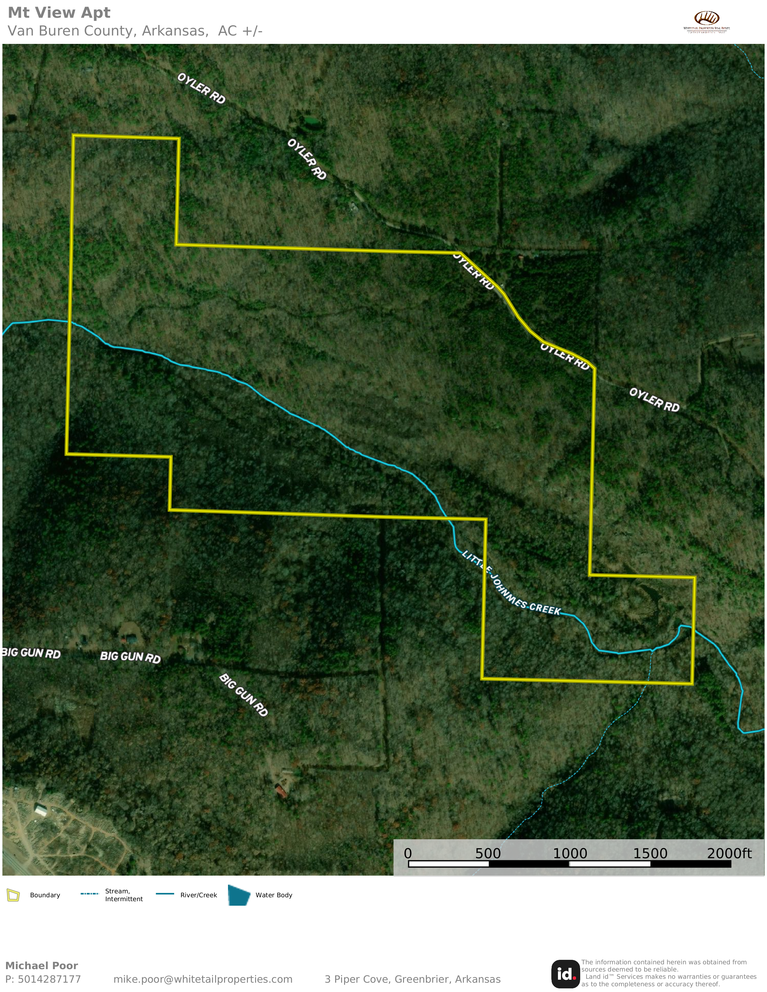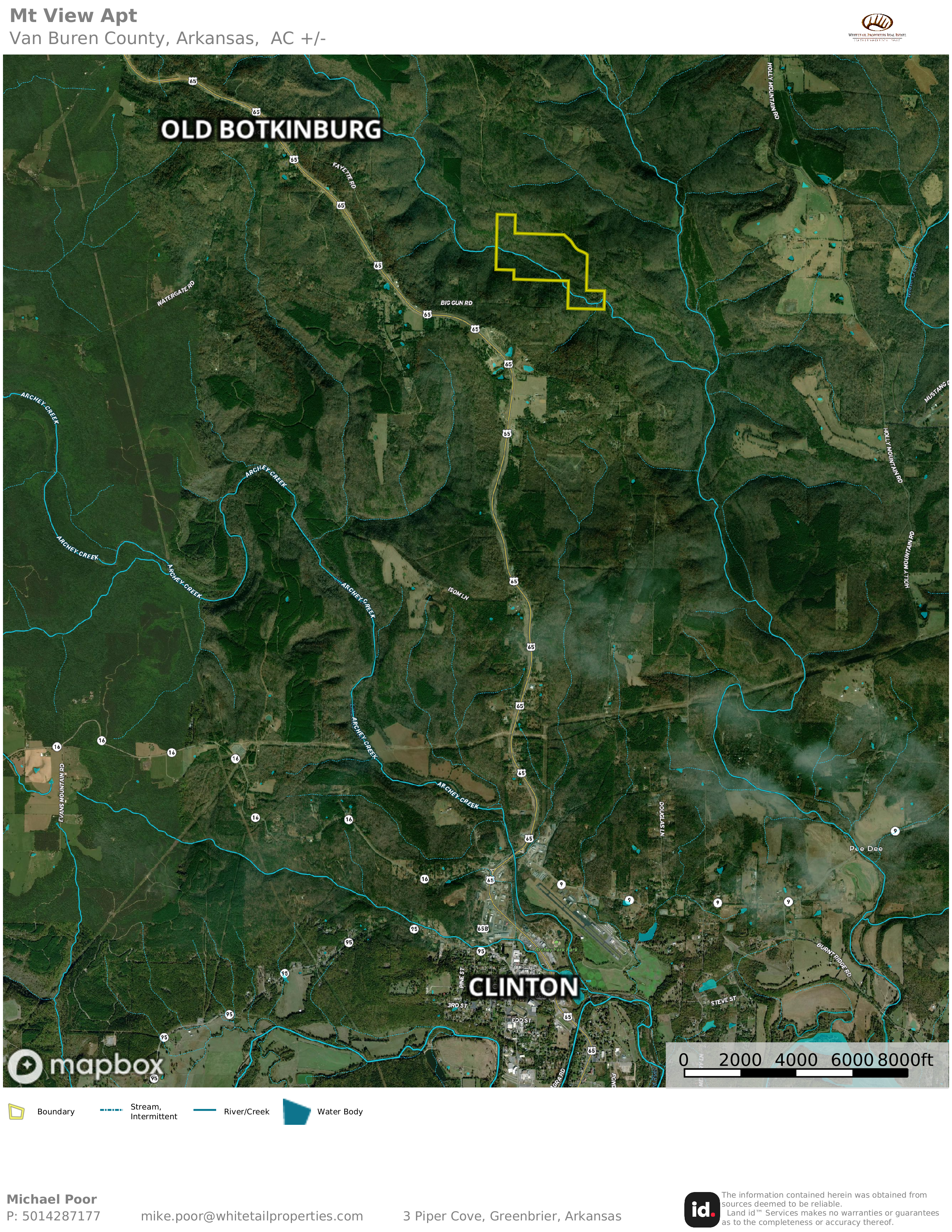 If you have been waiting for the perfect family recreational property with a beautiful year-round creek then this may be what you have been waiting for. Located at the end of a county road your choices of building sites are endless. If you like a soaring view you can build at the top of the mountain that looks over the valley or build along the Little Johnnies Creek where you can enjoy the flowing water. There is a newly reworked road that winds down the mountain, past beautiful rock formations to a park-like location at the creek. This beautiful property features a beaver pond, rock formations with ledges and overhangs, beautiful pools of clear water and abundant wildlife. The property has not been hunted in years and has an excellent mix of mature timber, young timber and thickets to attract and hold abundant deer, turkey and bear. The Natural Bridge of Arkansas borders this property on the south and is located only 16 mi. North of Clinton and 10 miles South of Dennard, electricity on site, rural water and high-speed internet are available.