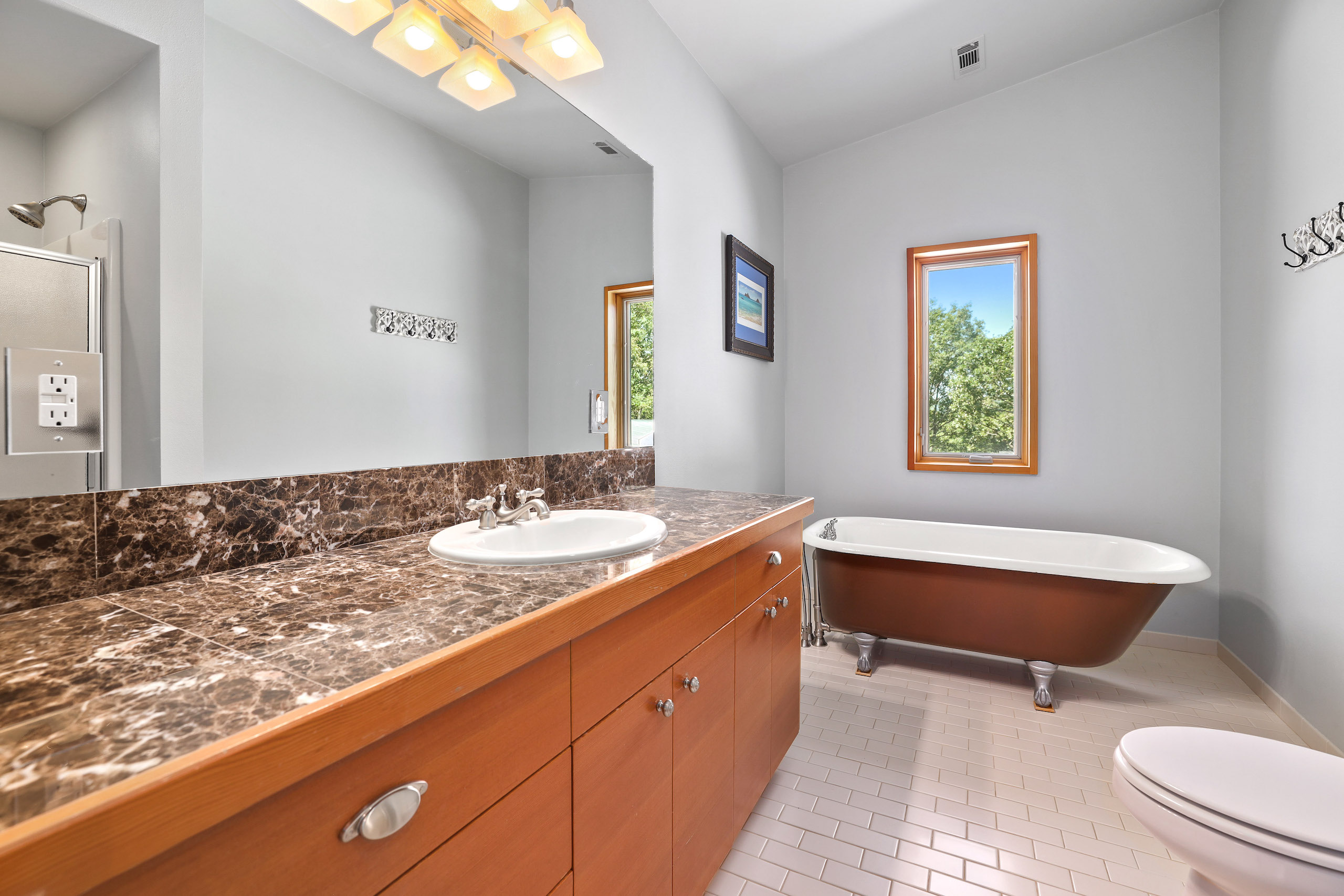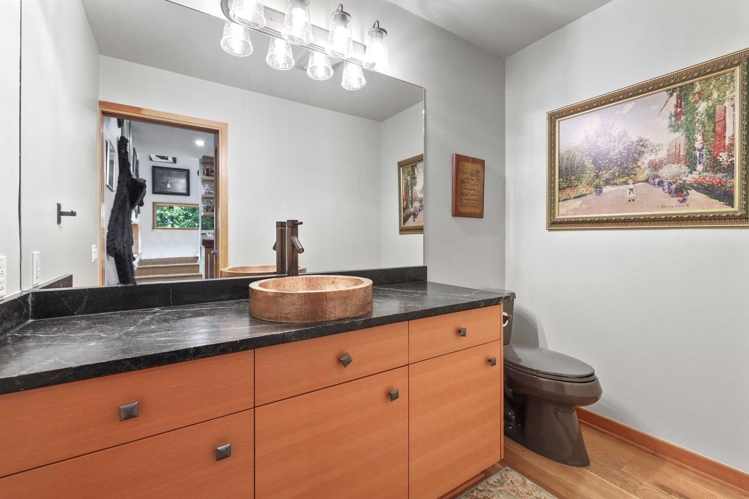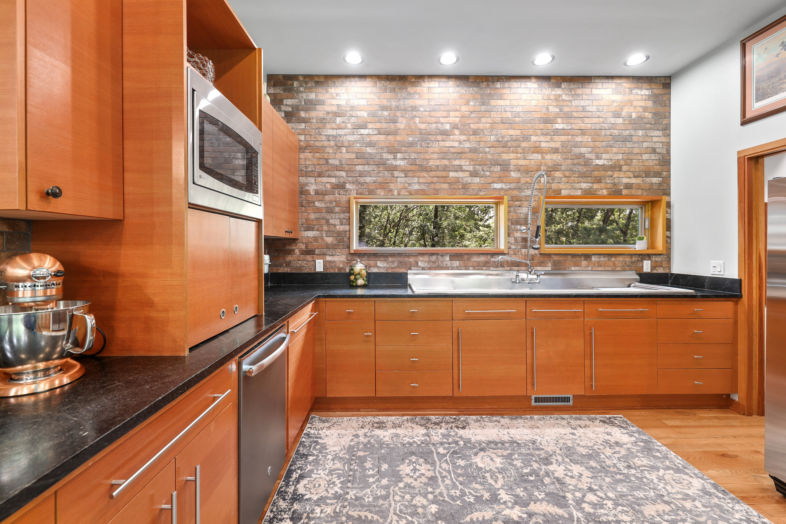 - Spacious living area with soapstone countertops and hardwood flooring