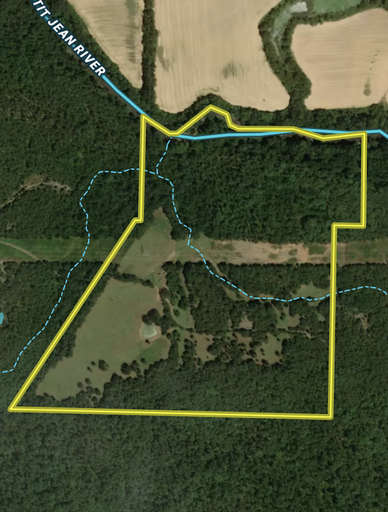 This one-of-a-kind hunter's paradise is a rare find—an old farm tucked away at the end of the road, surrounded by pristine wilderness. With 2,300 feet of US National Forest boundary to the south, timber company land to the east, and over 1/4 mile of Petit Jean River frontage to the north, this secluded retreat offers unmatched privacy and incredible recreational opportunities.