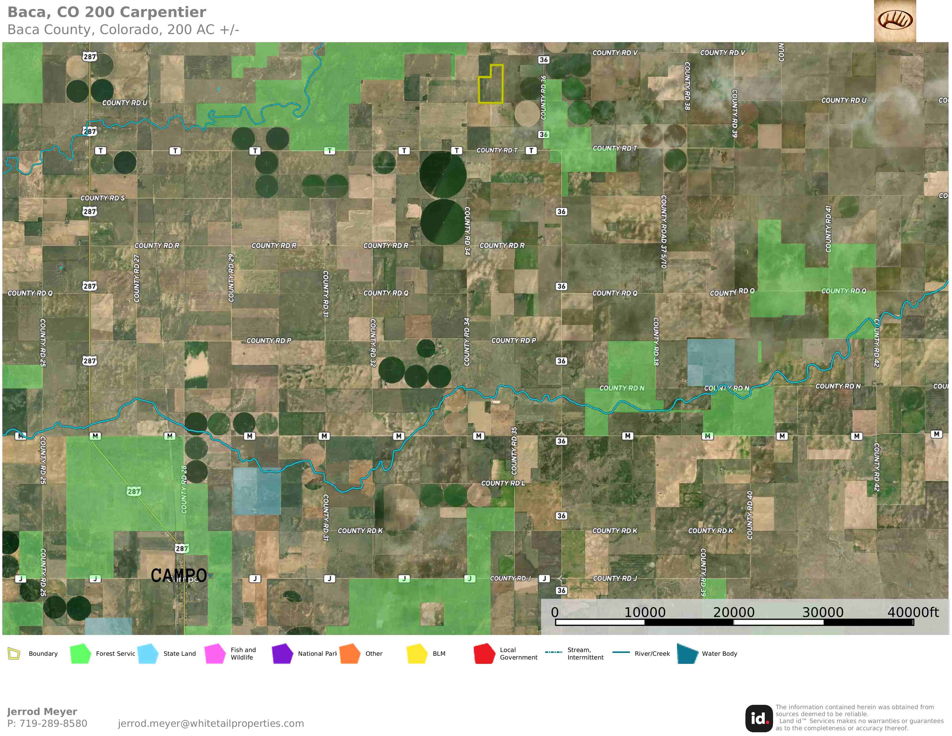 Great opportunity to invest in a secluded CRP tract paying $6,859/year through 2027! Solid grass coverage with low slopes and moderate soils. Surrounded by irrigated and dryland tillable farms which attract deer, antelope, and upland game in GMU #139. Minutes from Springfield and thousands of acres of public Comanche National Grasslands. No owner financing options; boundary lines approximate. Contact your local Whitetail Properties Land Specialists Dan Hunning or Jerrod Meyer for more information!