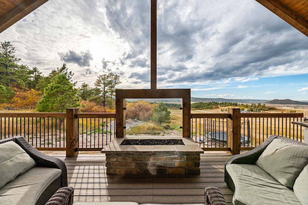 - Covered deck with natural-gas outdoor fireplace
