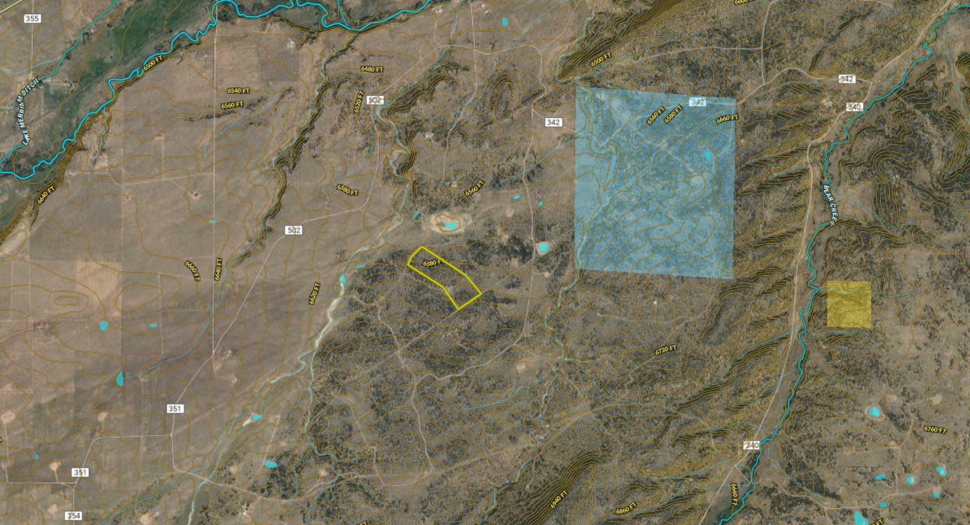 - Gentle rolling terrain with scattered meadows and moderate to heavy pinion coverage
