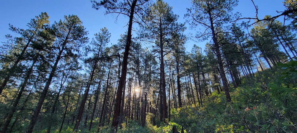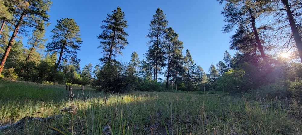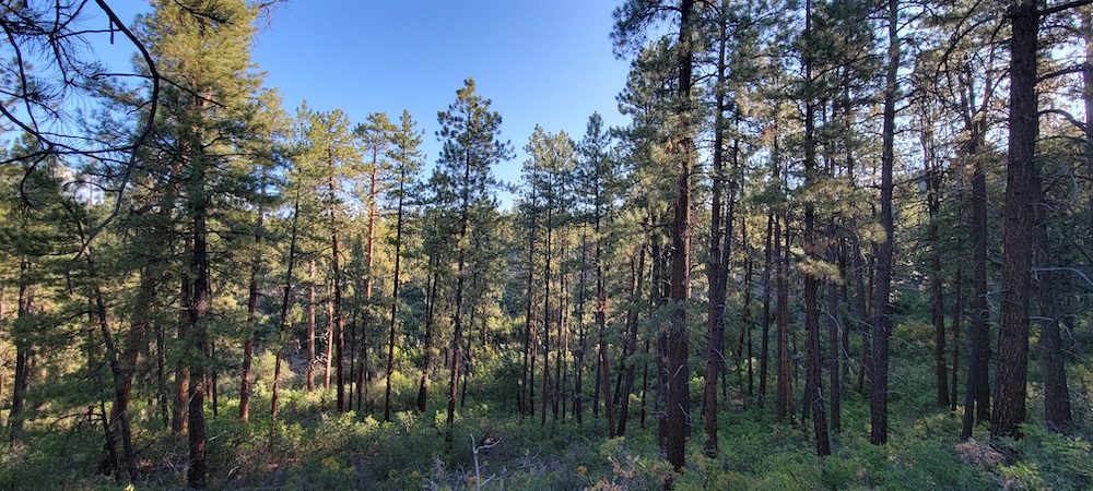 - Mature pine trees with a mix of flat and rolling terrain, offering several potential building sites